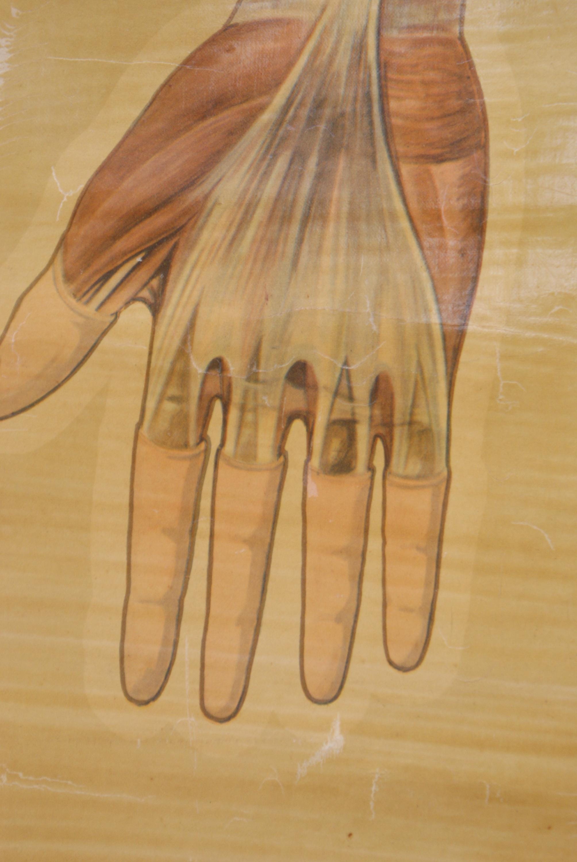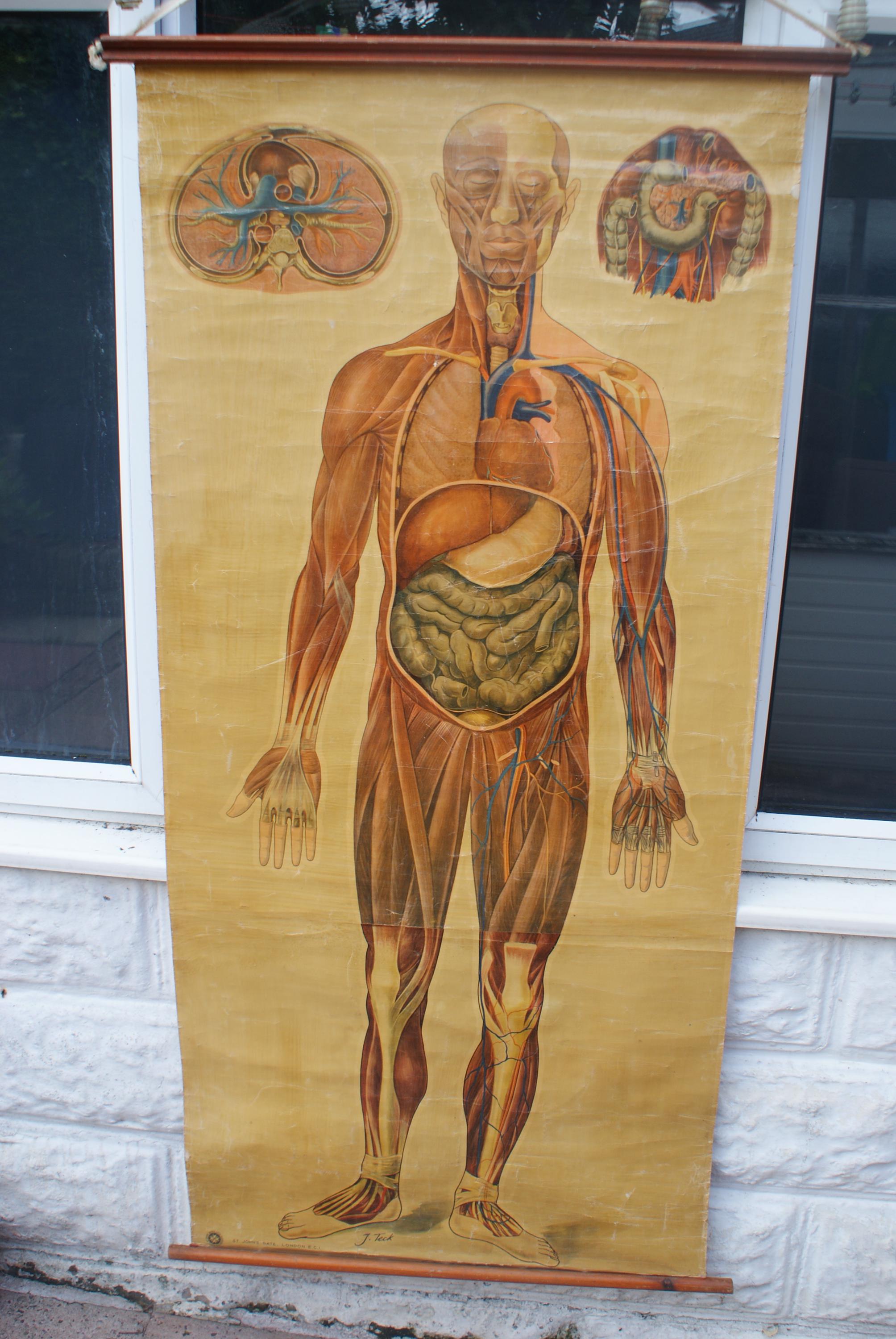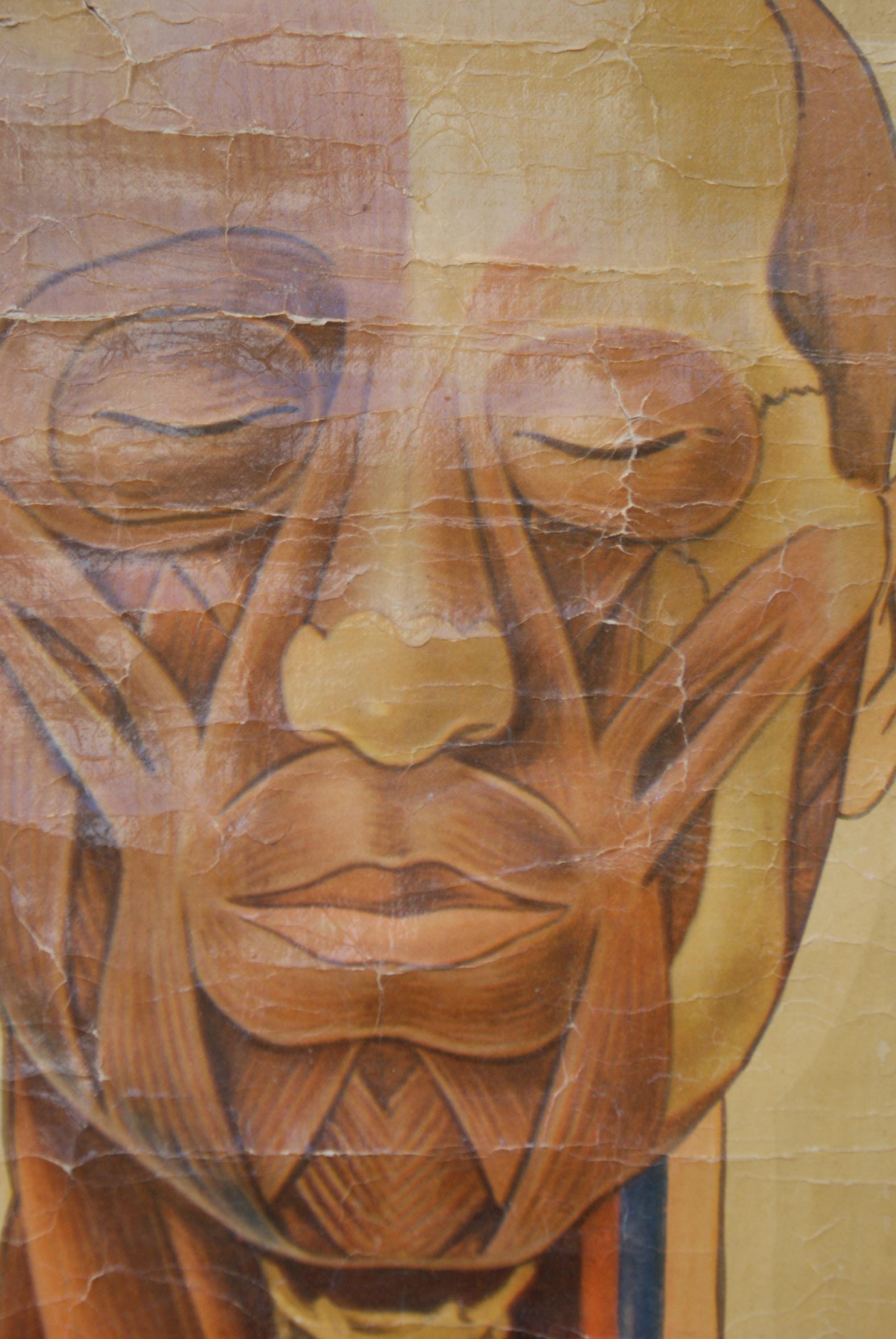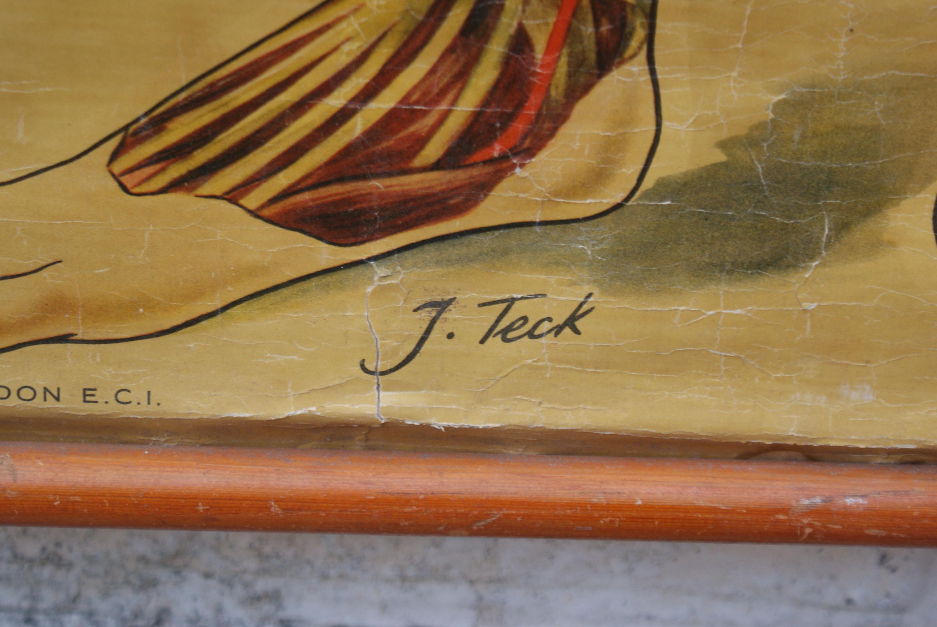Fantastic anatomical training aid from the 1940's, signed J Teck and in a good condition with the original batons at the top and bottom. Stunning patina to the front are really unusual piece of wall art.