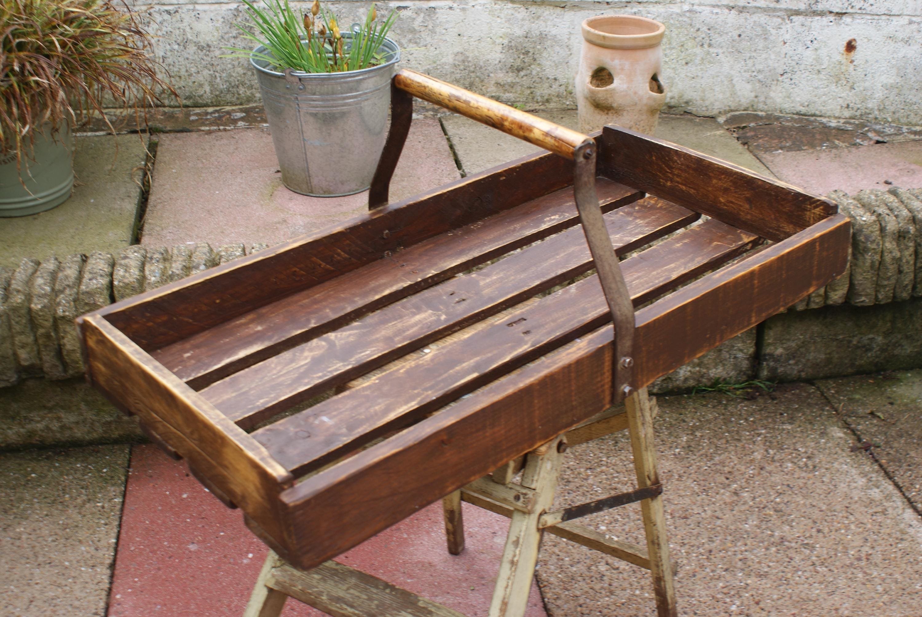 Lovely large vintage trug, fantastic patina to the crate and handle. Perfect for crating unique displays.