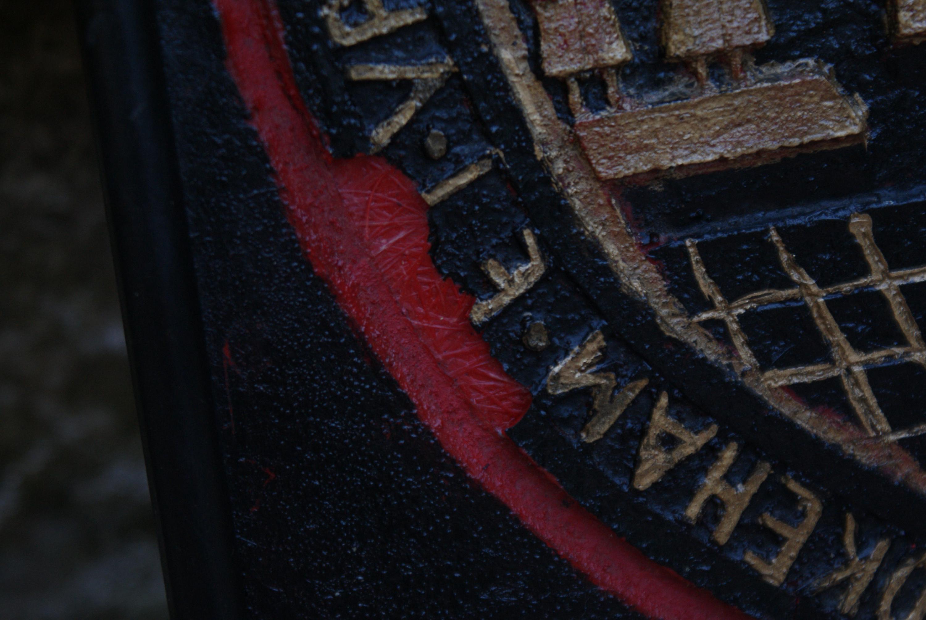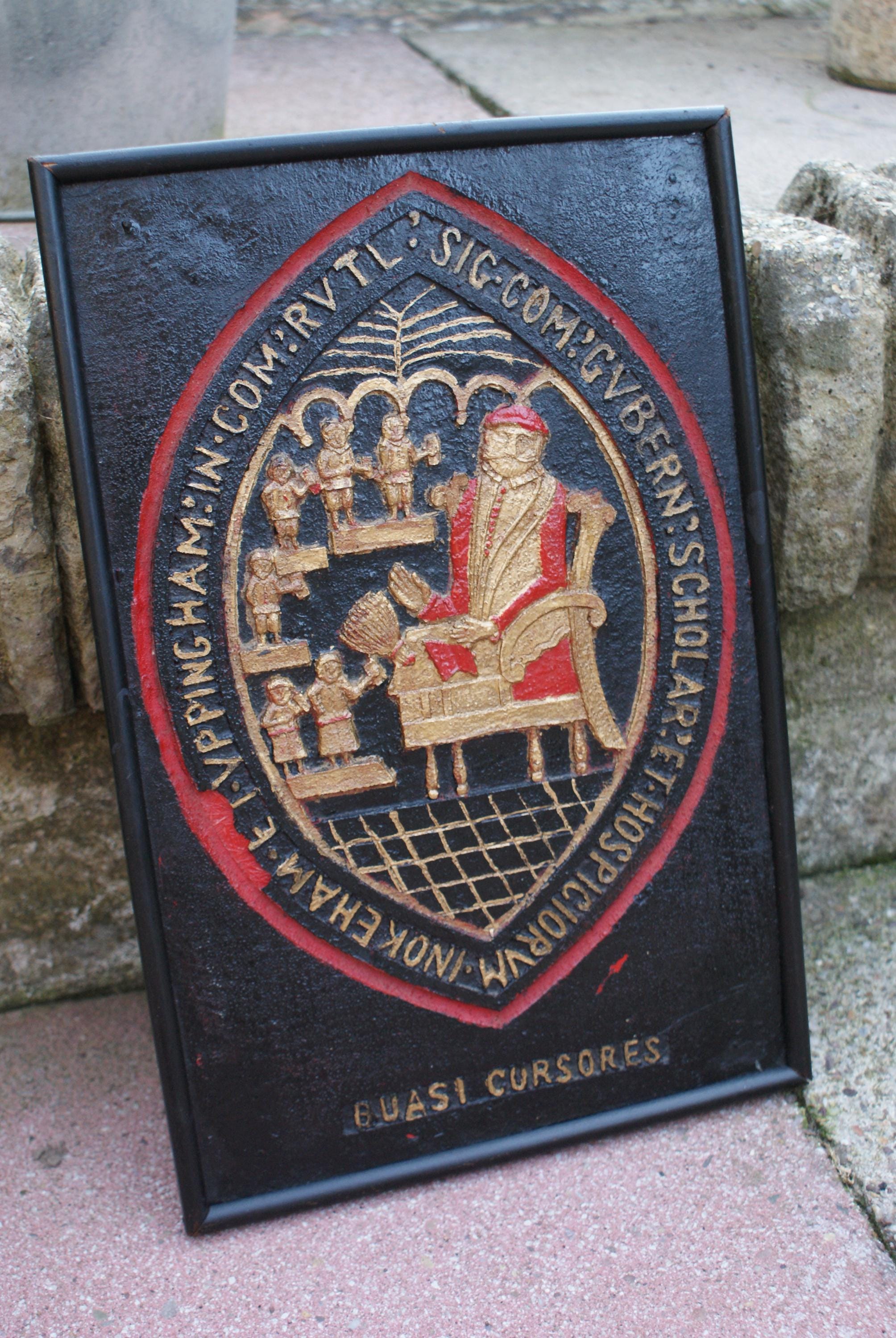 Fantastic vintage school emblem form British public school Oakham, looks to be made out of fibre glass and circa 1970's possibly.