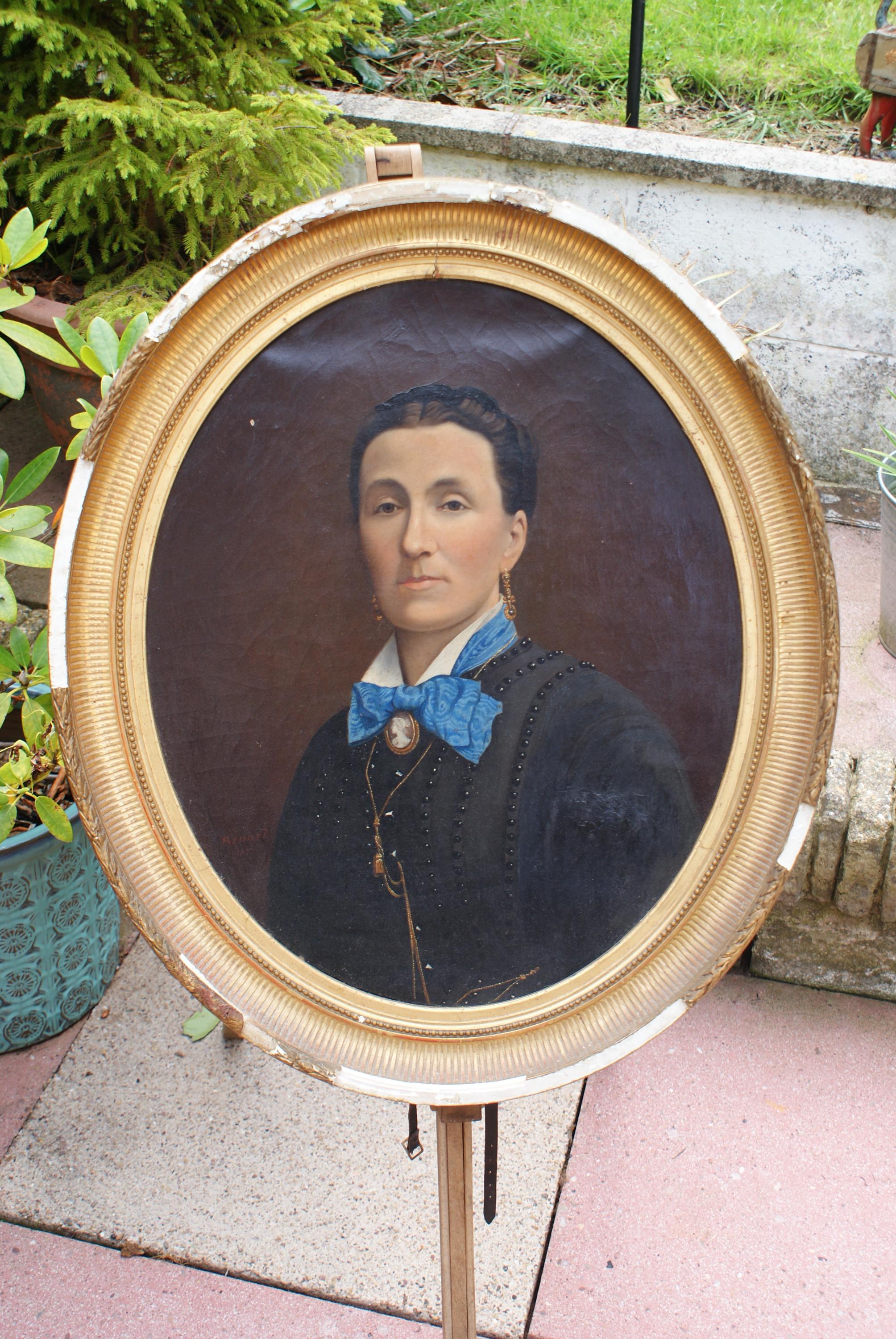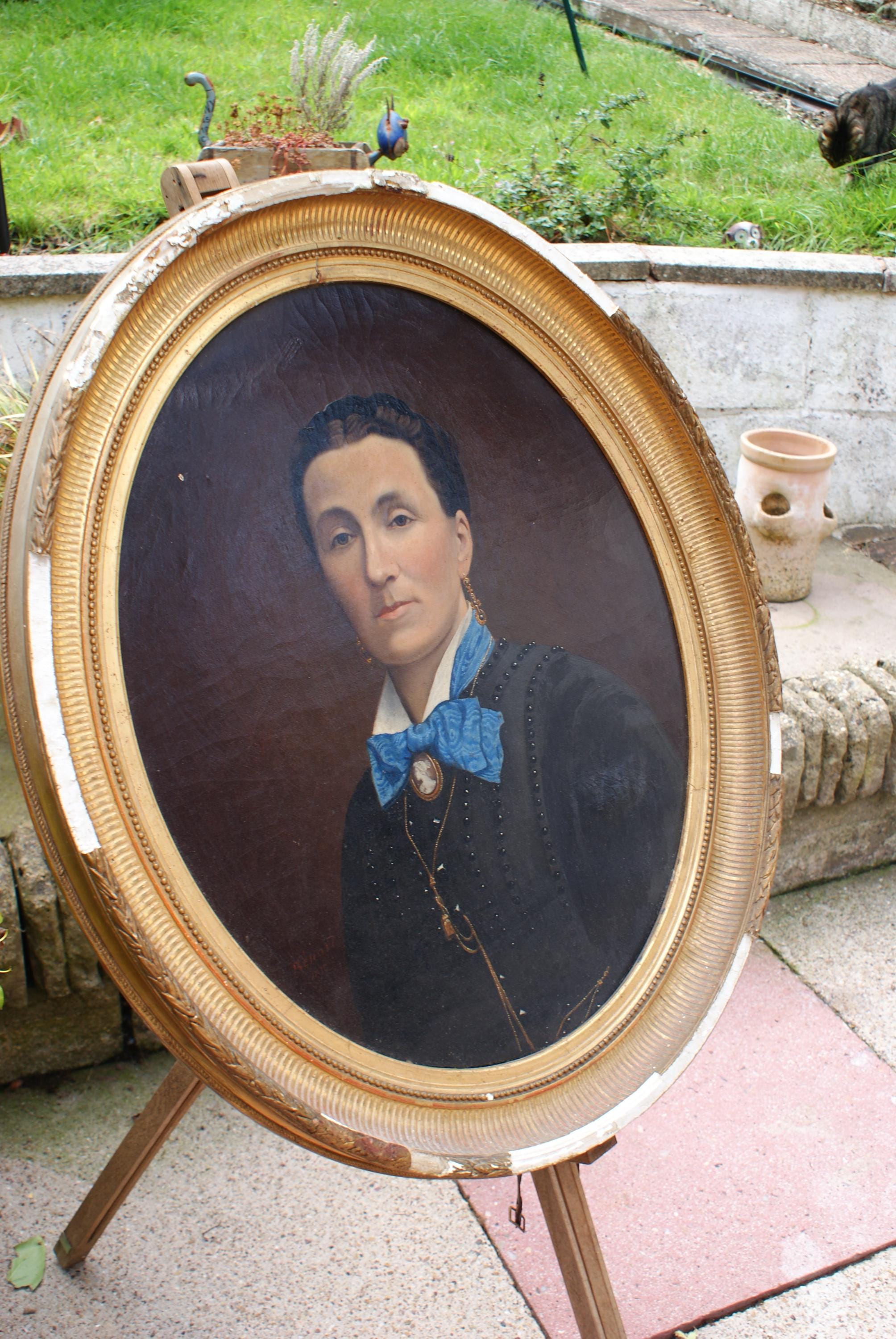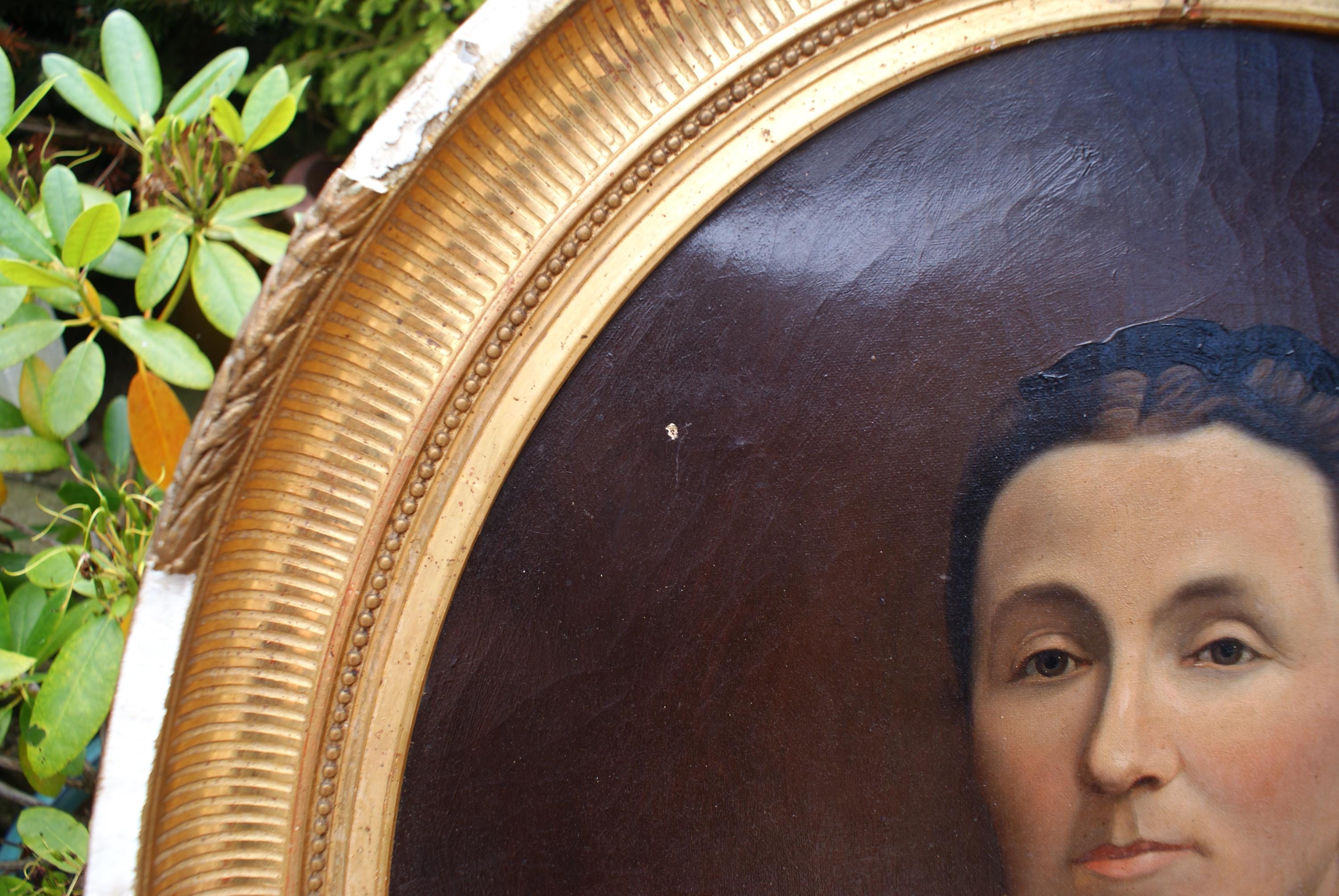 Stunning 19th century portrait of an unknown French female, original plaster frame and lovely detail to the portrait. the frame could best be described as shabby chic and is priced appropriately. There is historical restoration to the canvas and a small hole at the top left (see Pictures) historical signs of wood worm in the rear of the frame but has been treated as a precaution. There is a visible signature the artist however is unknown as it was most likely done by a itinerant or studio portraitist.