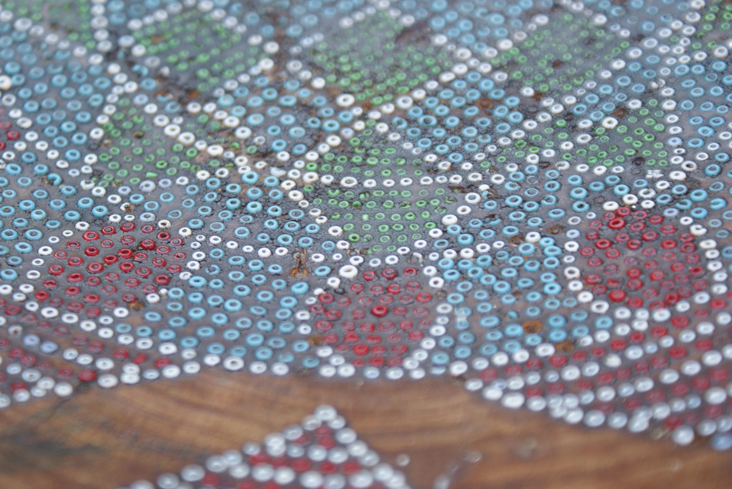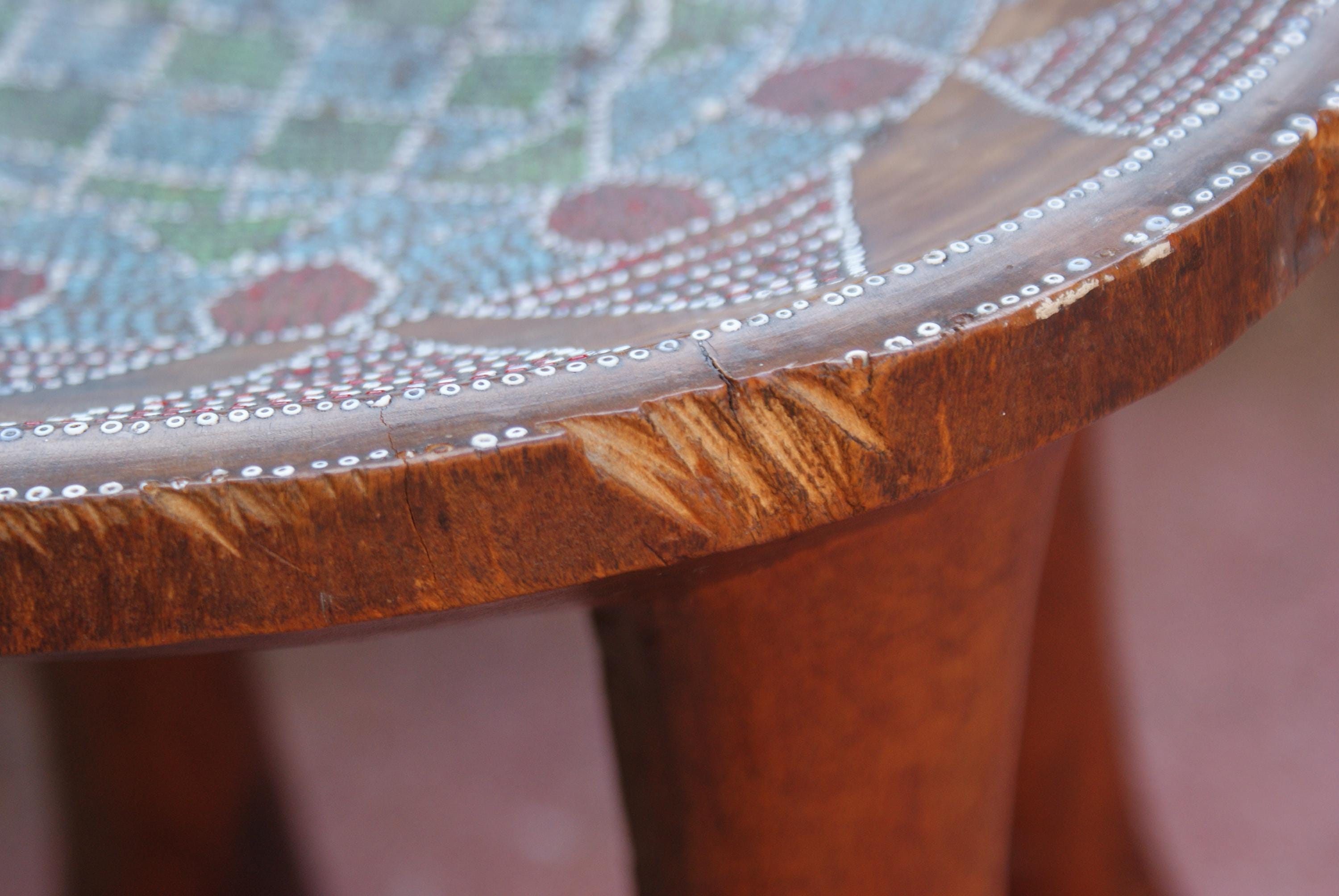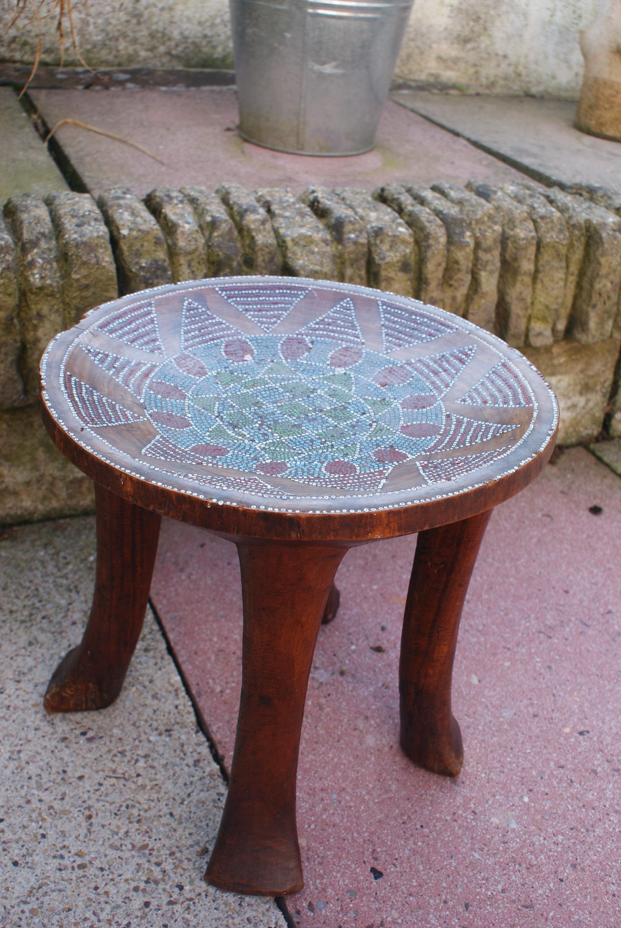 Stunning Kenyan Kamba stool. Kamba stools originate from the Kamba people of Kenya, utilitarian stools hand carved and often decorated with elephants, giraffes or as the one we have here glass beads. This would have been used for the elder of the family. A fantastic decorative piece for any home. some missing beads and a chip to one side but all in line with age and usage.