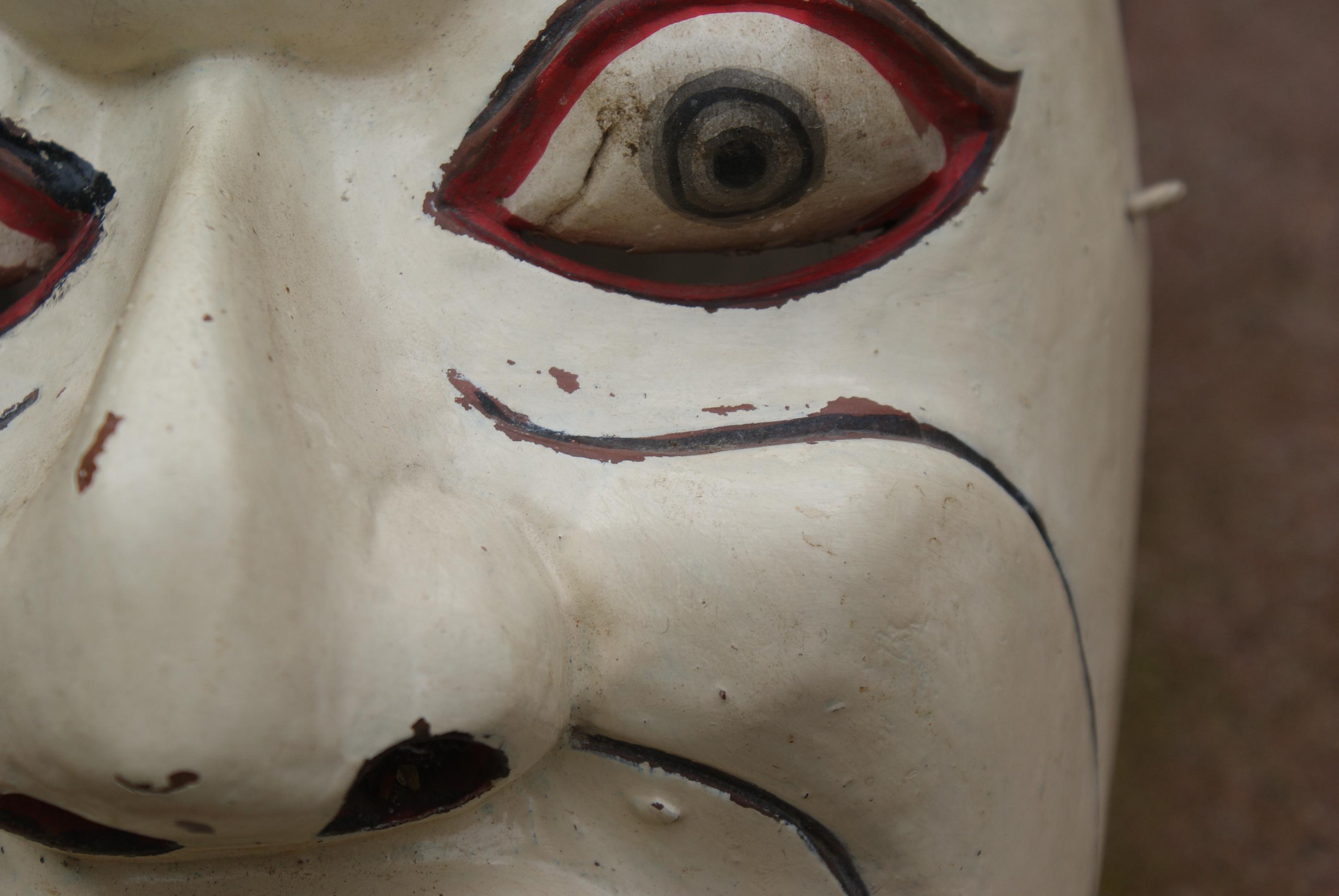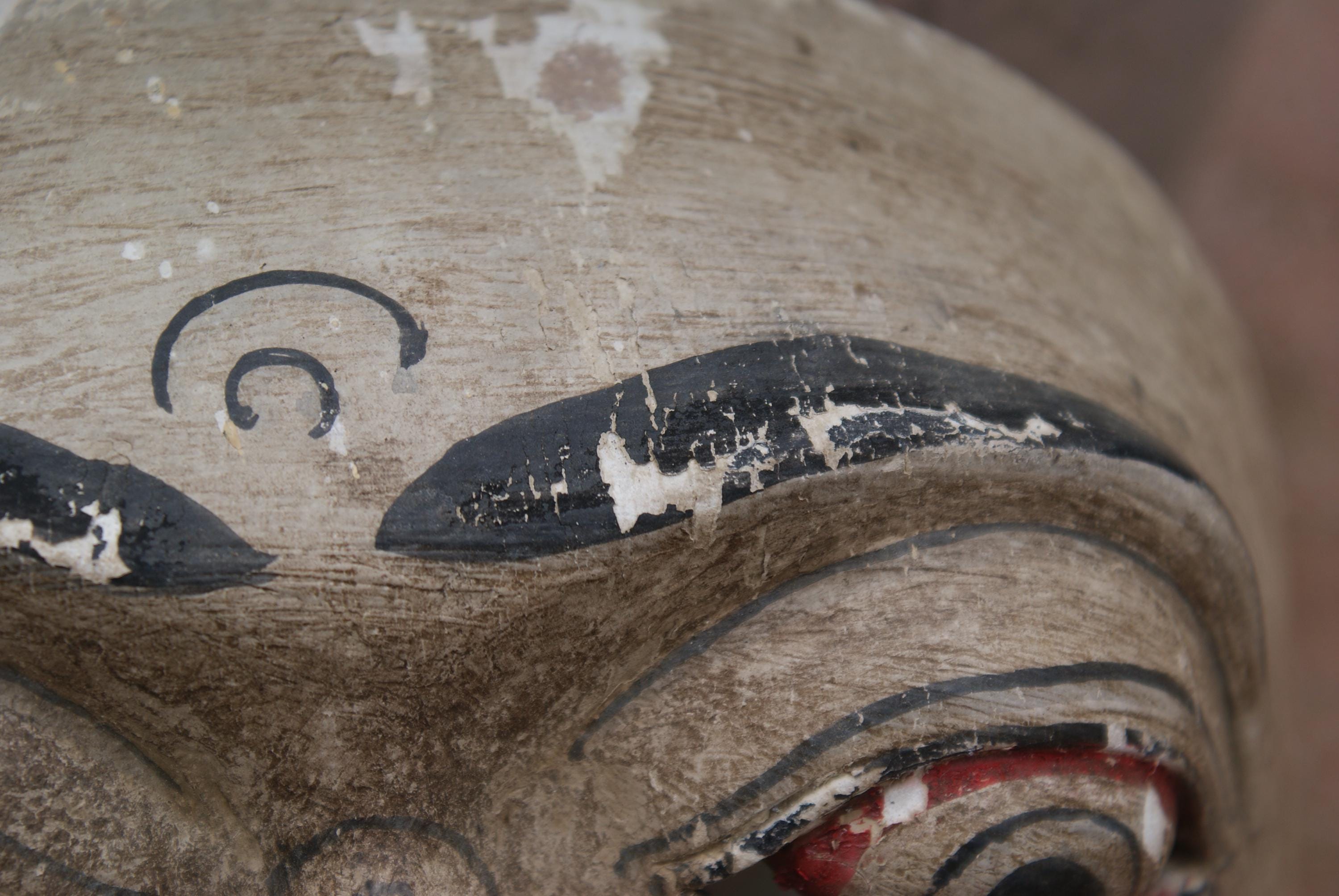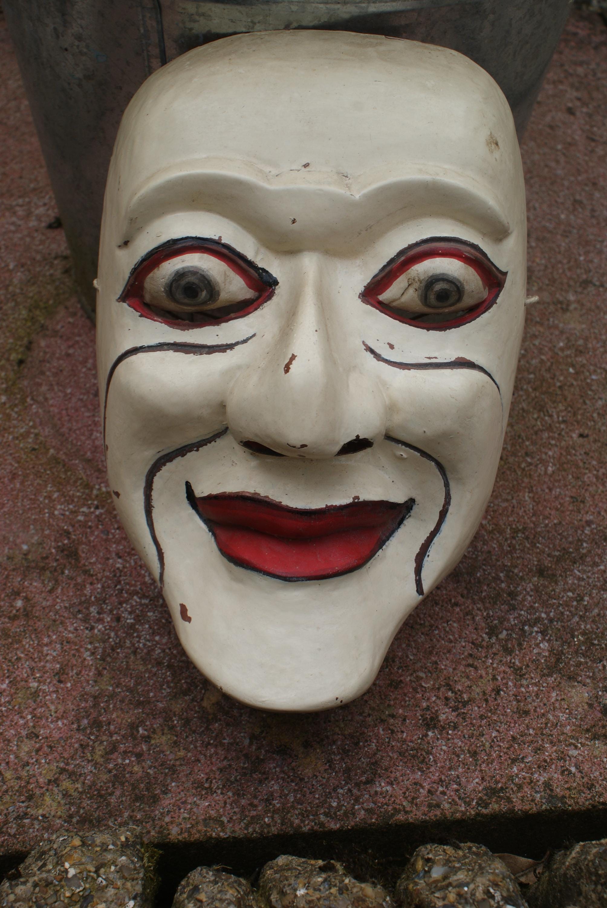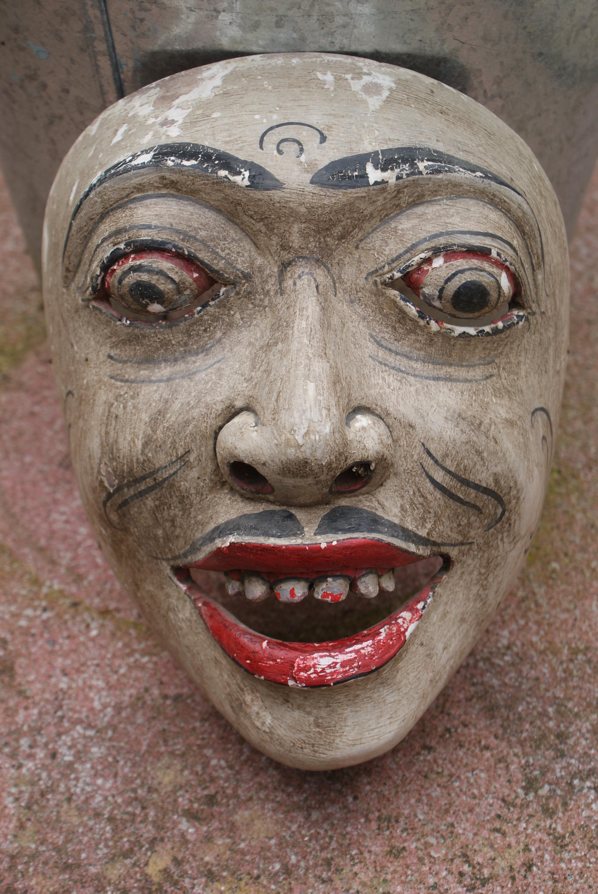 Fantastic looking Topeng mask originating from Indonesia possibly Bali. Topeng is a dramatic form of Indonesian dance in which one or more mask-wearing ornately costumed performers interpret traditional narratives concerning fabled kings, heroes, and myths, accompanied by gamelan or other traditional music instruments. Early 20th century these would make for some really unusual wall displays, Both have the original straps so would be able to be hung from those. Price shown is per mask.