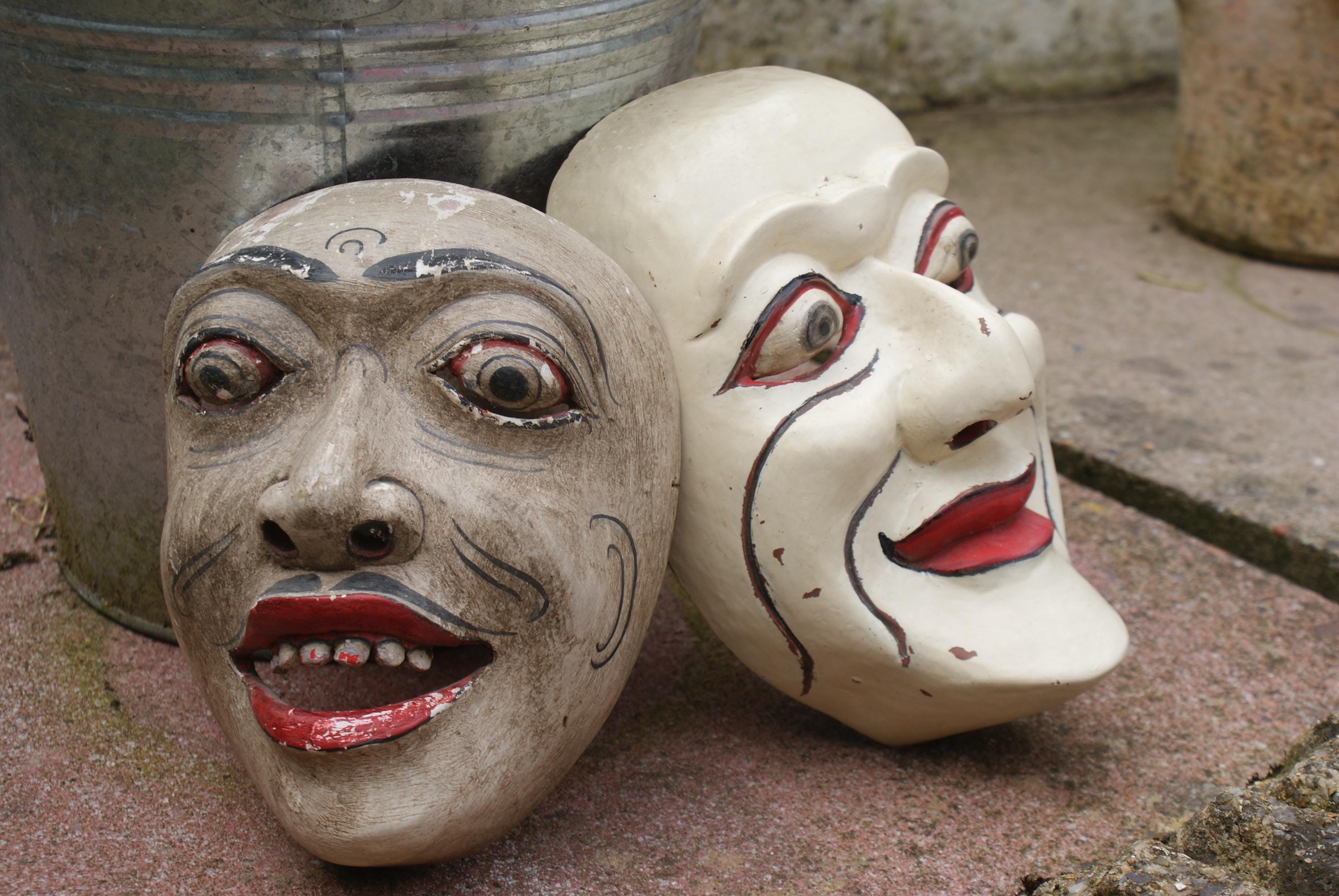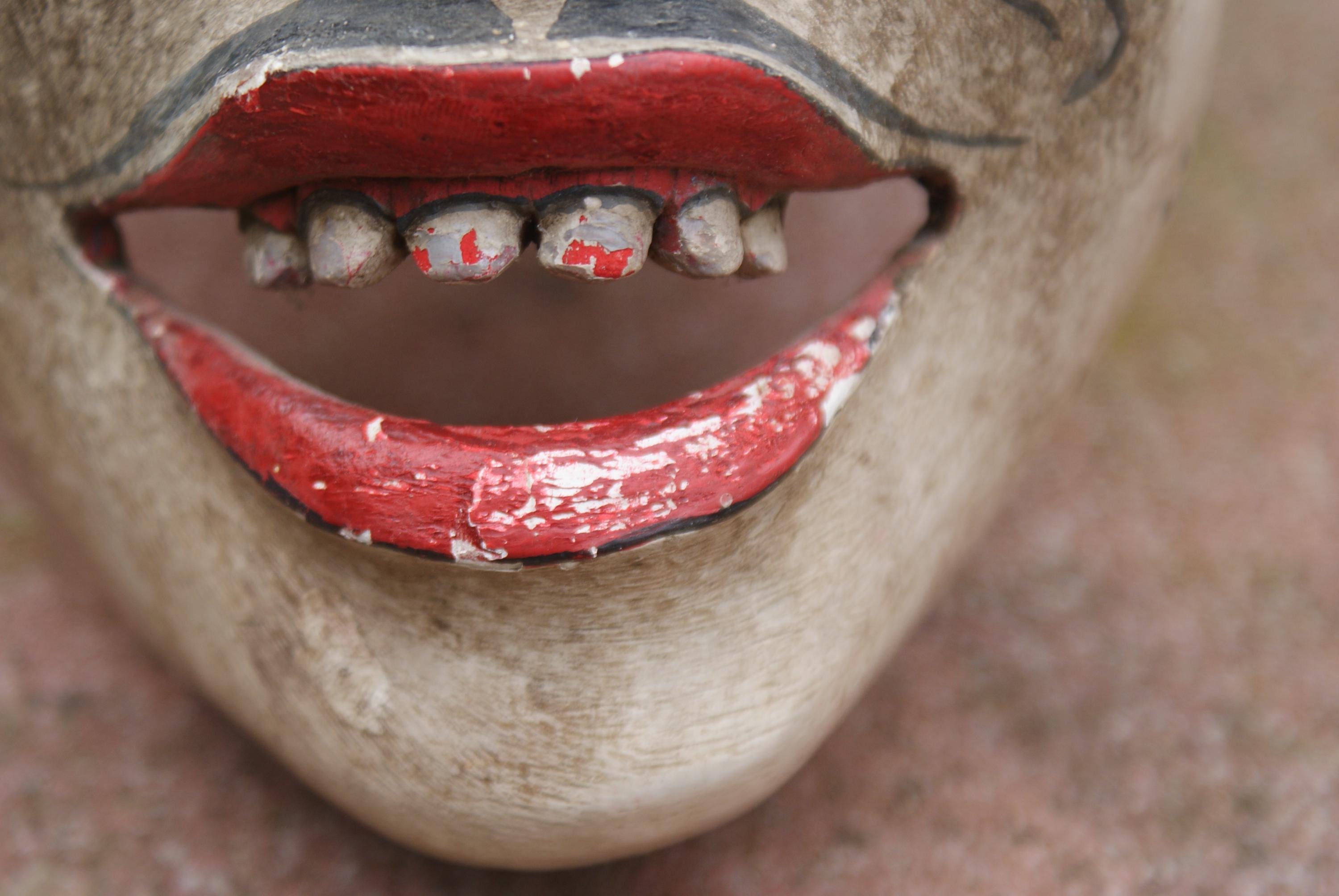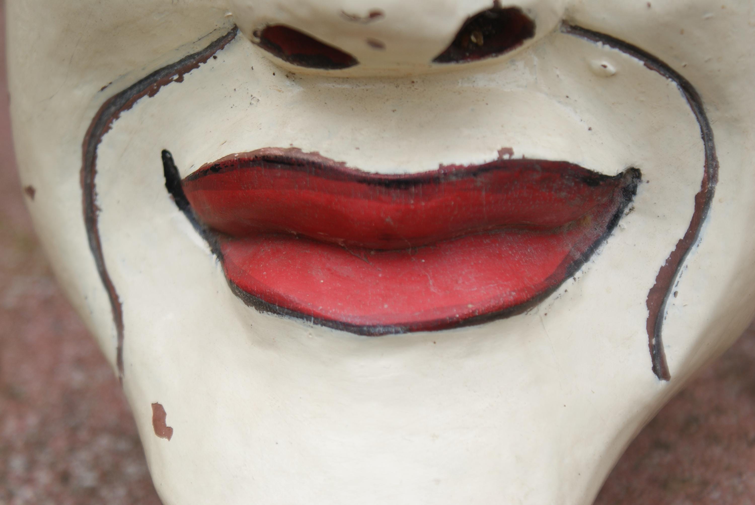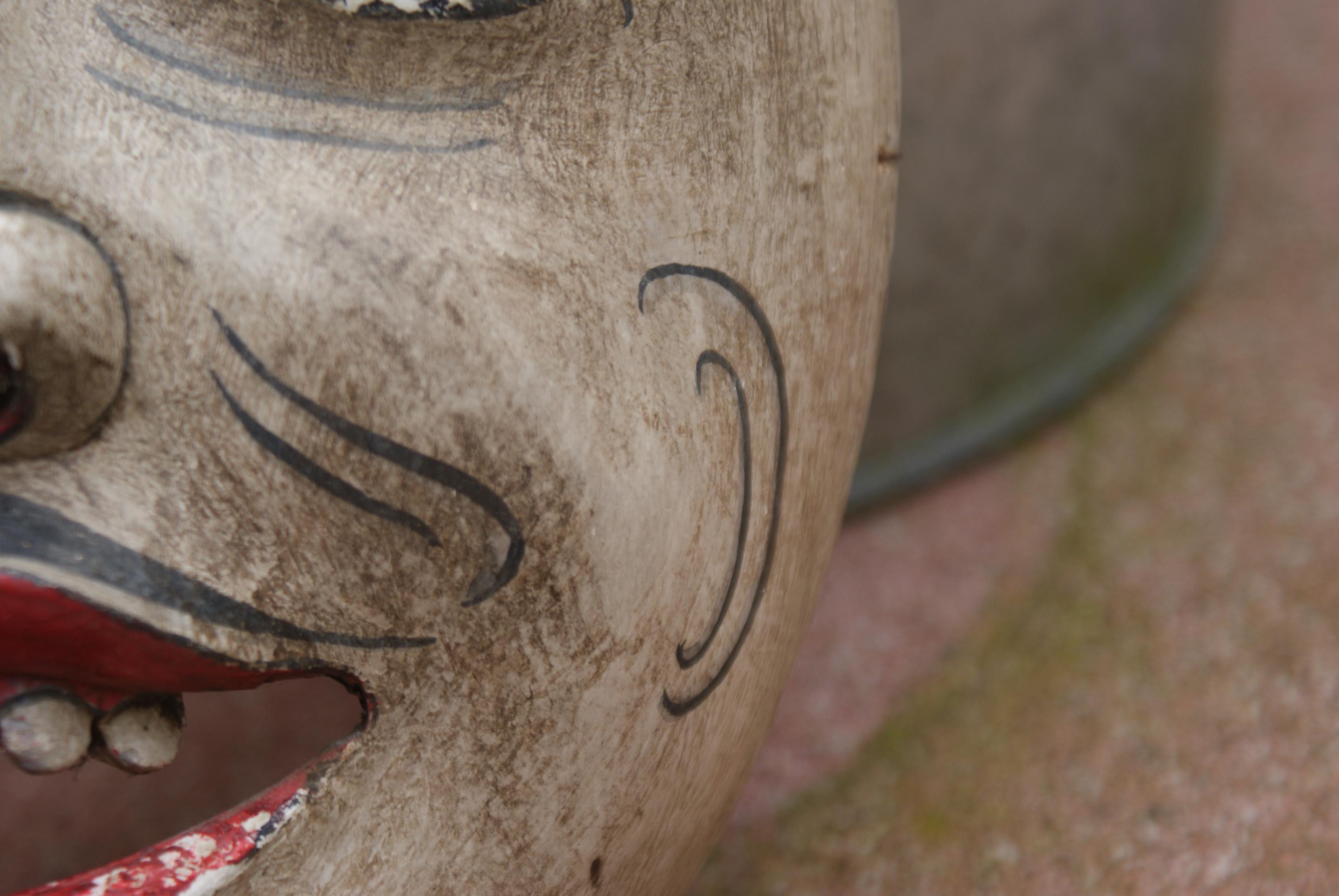 Fantastic looking Topeng mask originating from Indonesia possibly Bali. Topeng is a dramatic form of Indonesian dance in which one or more mask-wearing ornately costumed performers interpret traditional narratives concerning fabled kings, heroes, and myths, accompanied by gamelan or other traditional music instruments. Early 20th century these would make for some really unusual wall displays, Both have the original straps so would be able to be hung from those. Price shown is per mask.