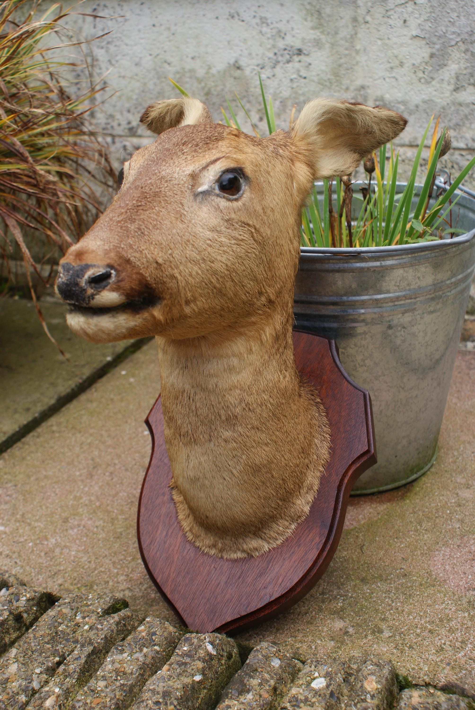 Lovely vintage taxidermy row deer, mounted on a wooden shield.