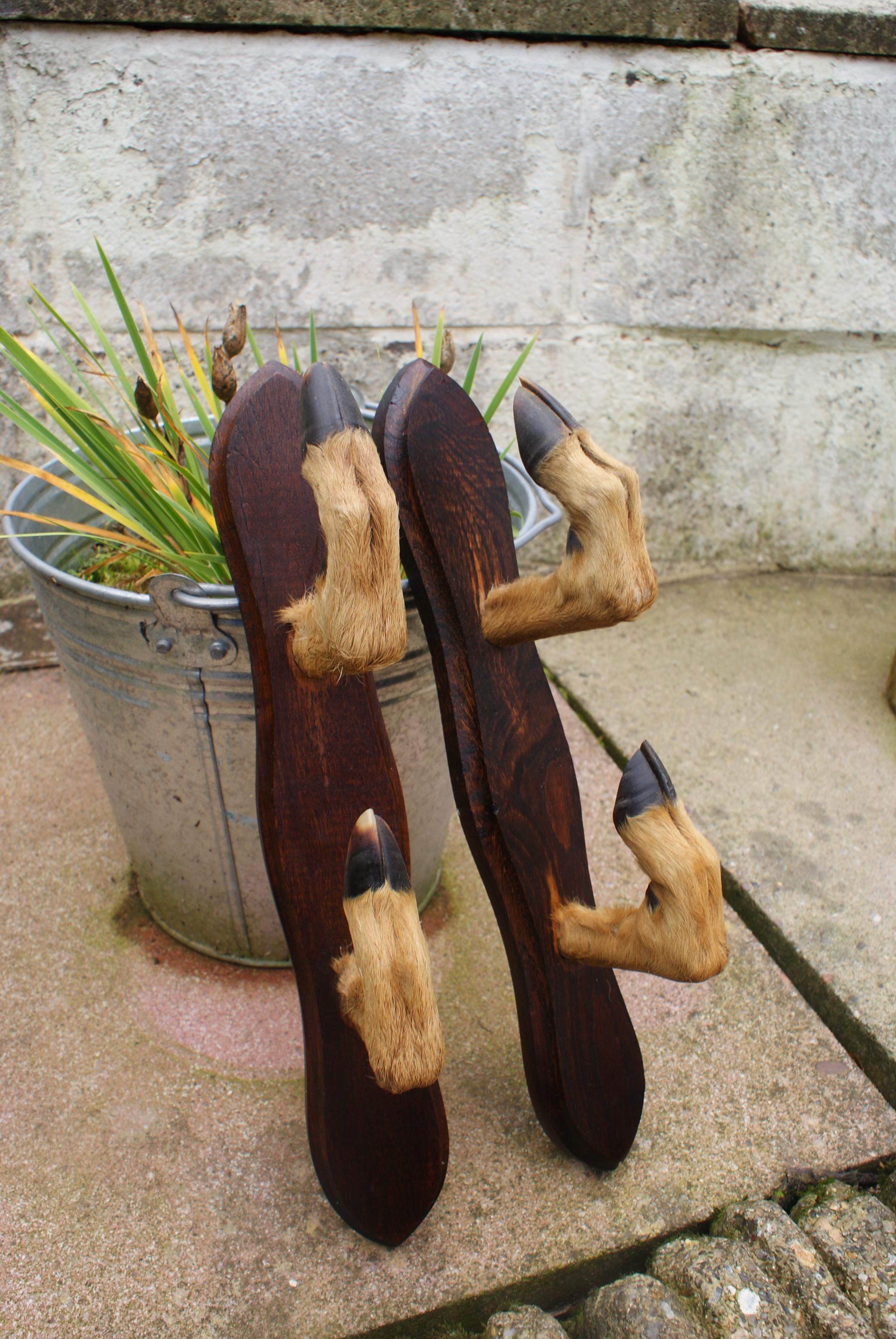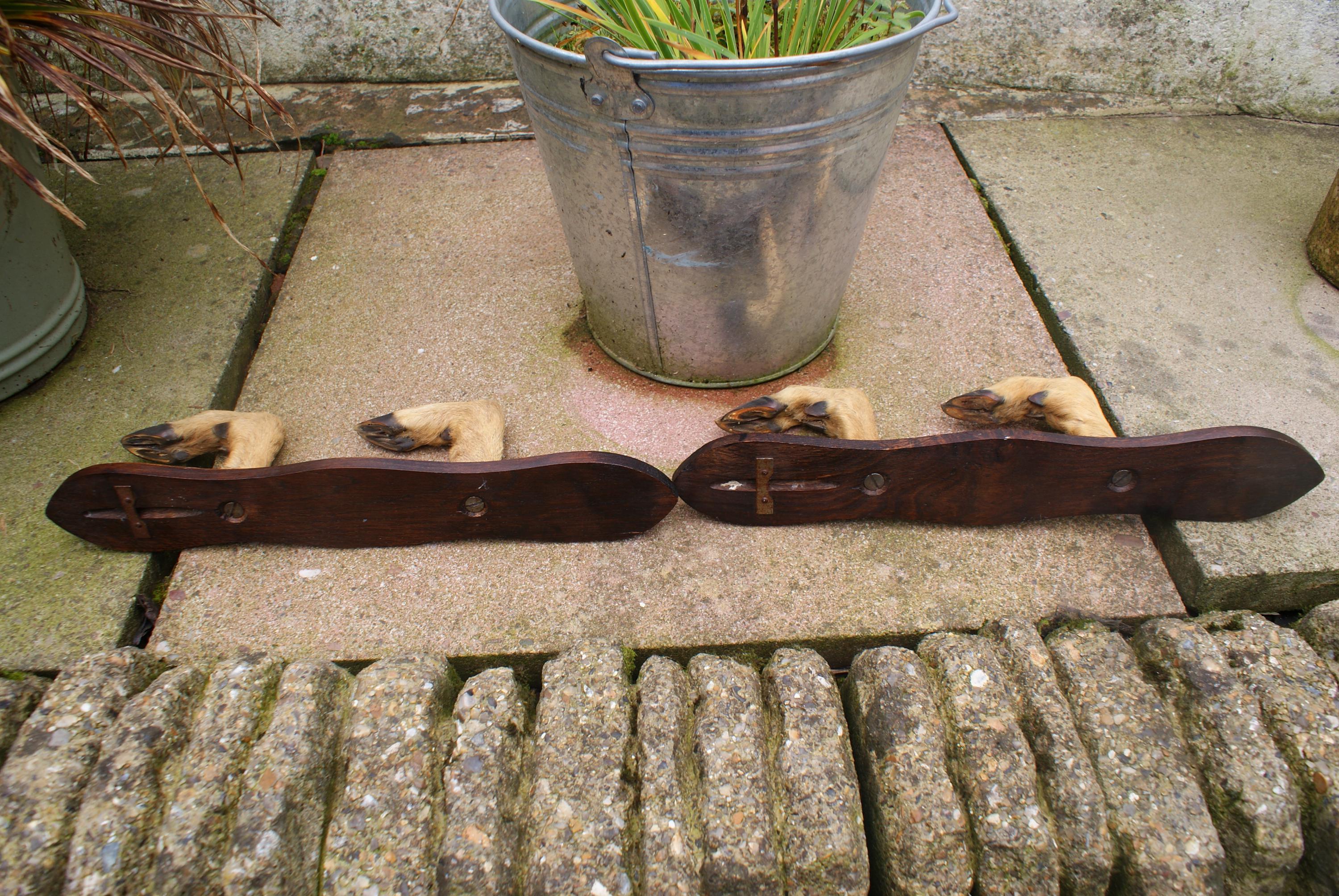 Lovely French deer hoof gun rack, ideal to display alongside head or shoulder mounts or as quirky coat racks.