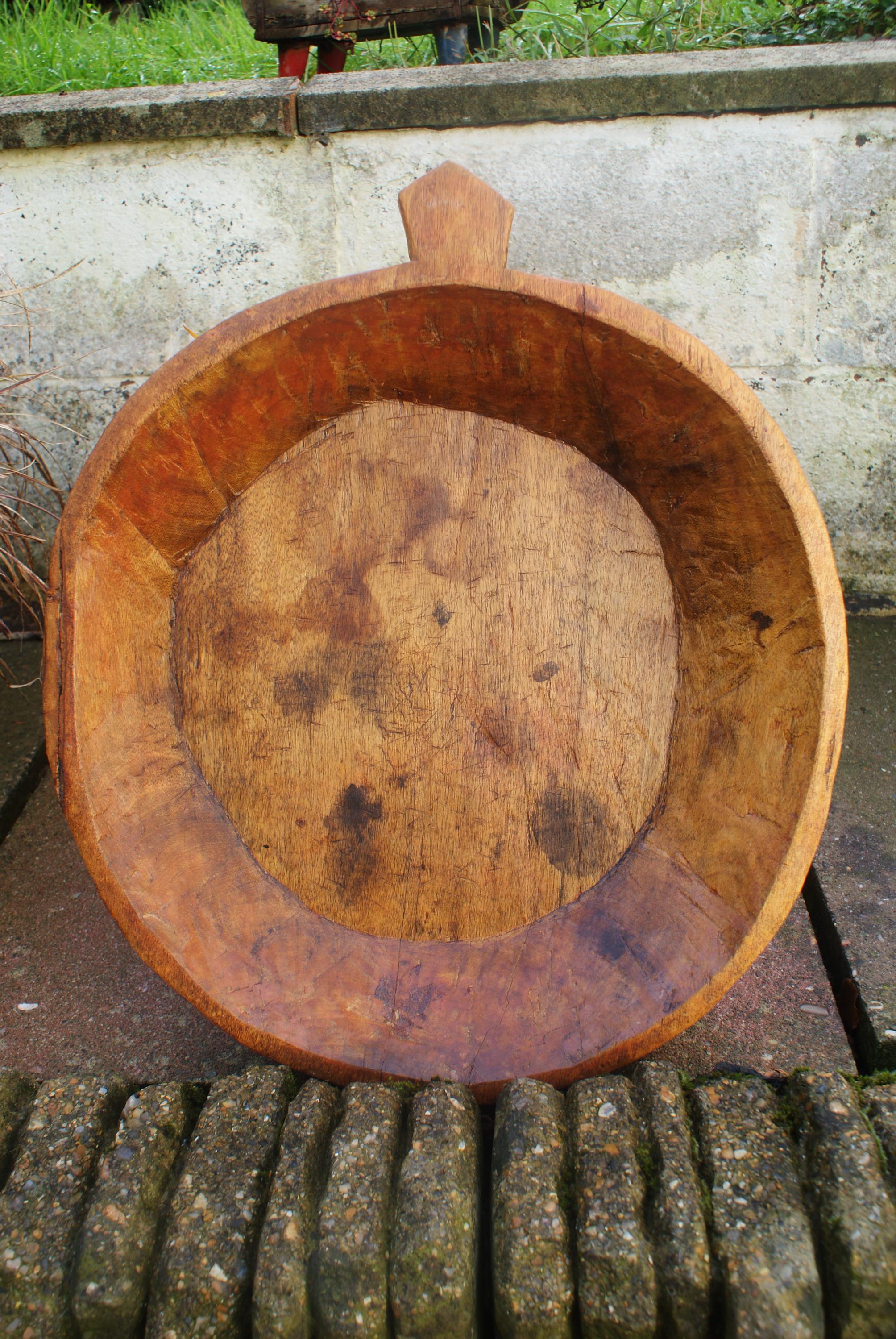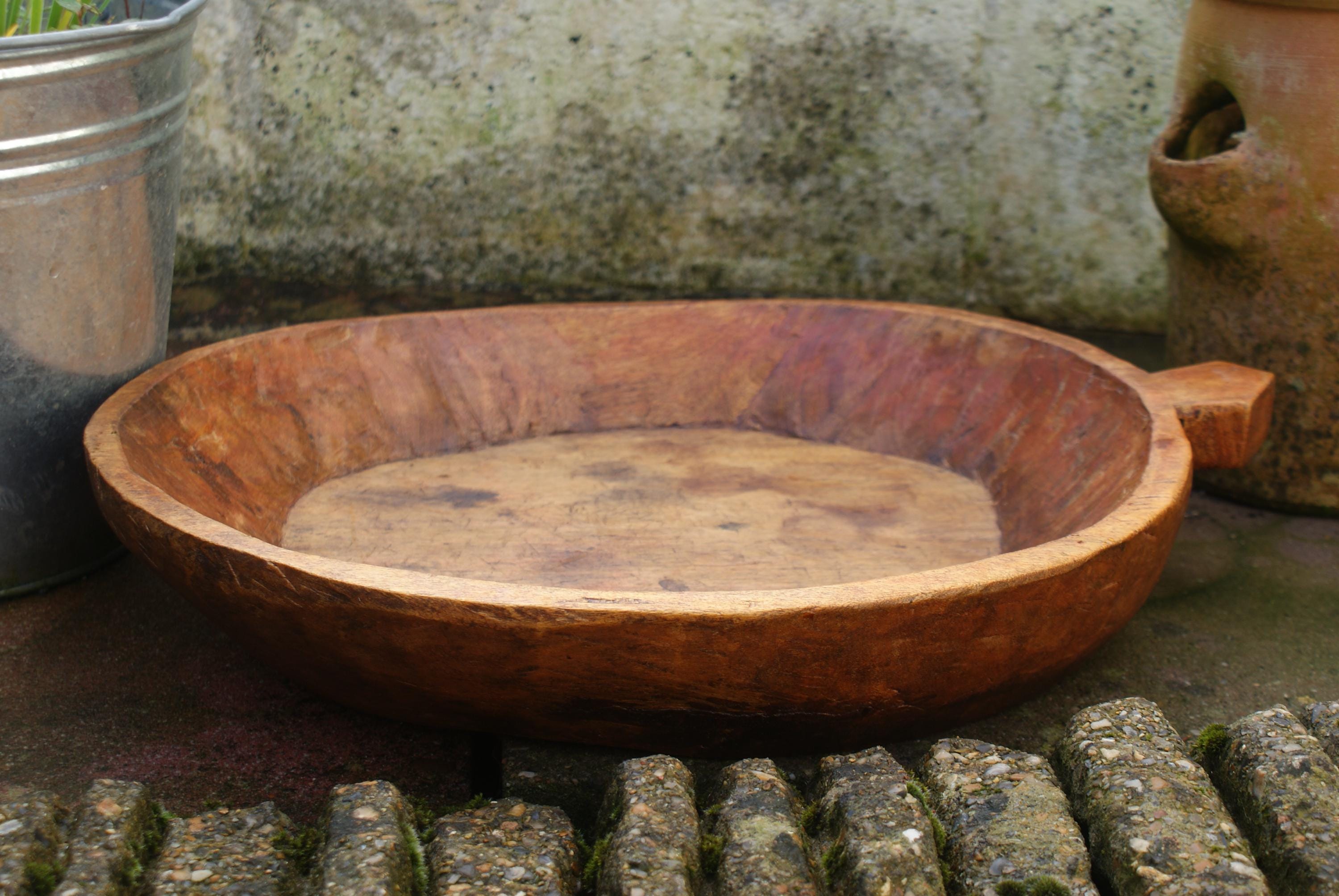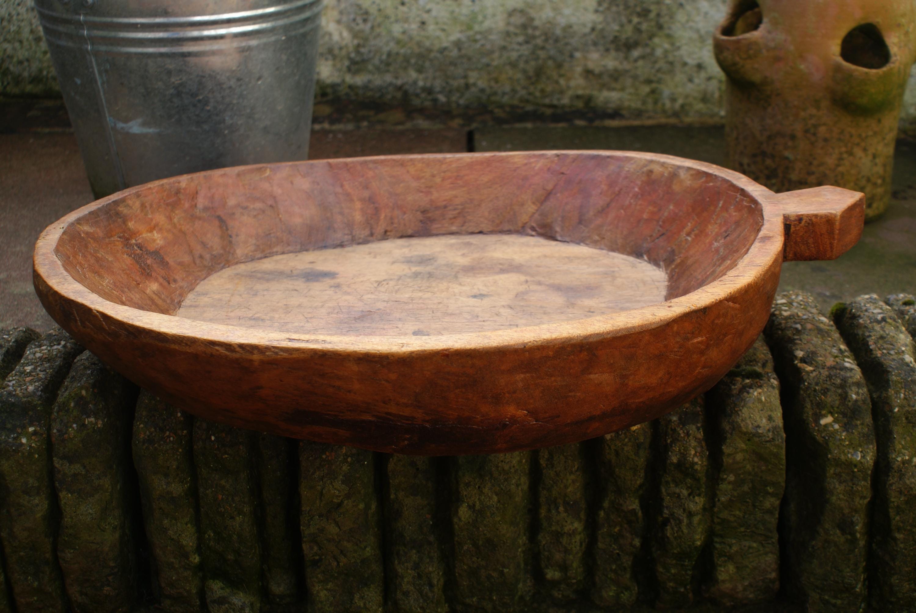 Absolutely stunning parat or dough bowl dating to the 19th century, the parat bowl is a common staple in the Indian home used to knead dough to make chapati and roti breads. Hand carved giving this a truly unique style and a fantastic patina and wear all over. An ideal centre piece for a large table or in the kitchen to hold fruit and veg.