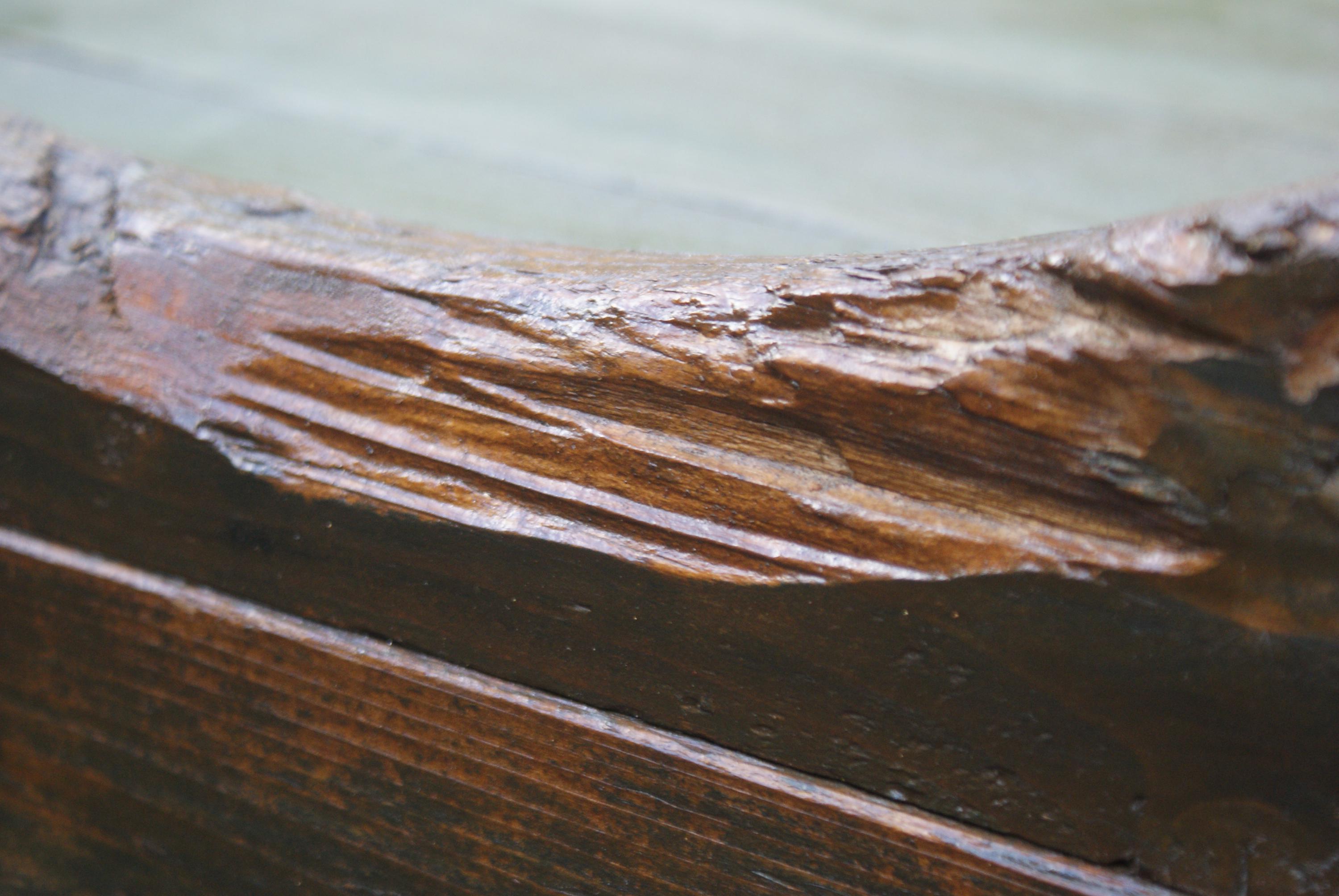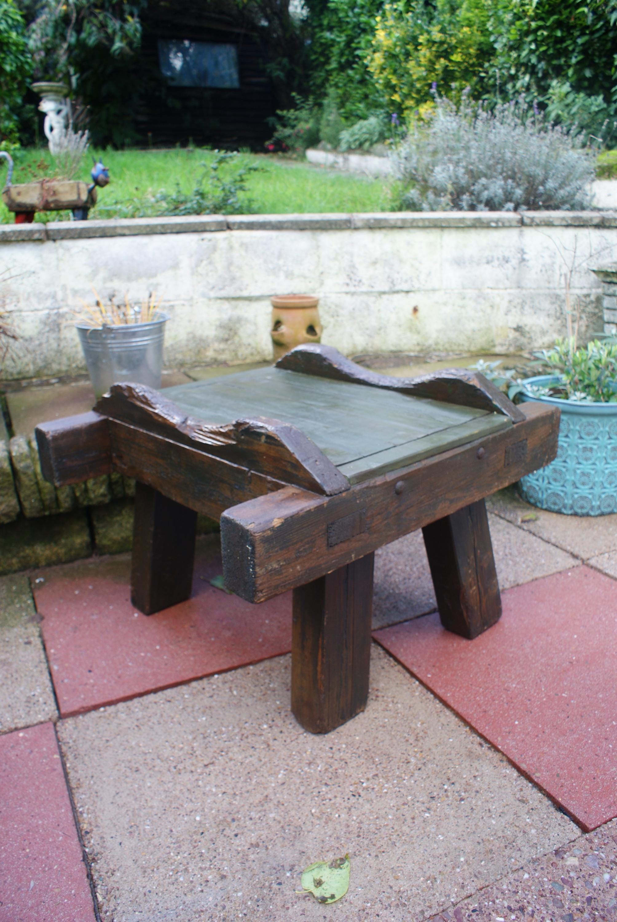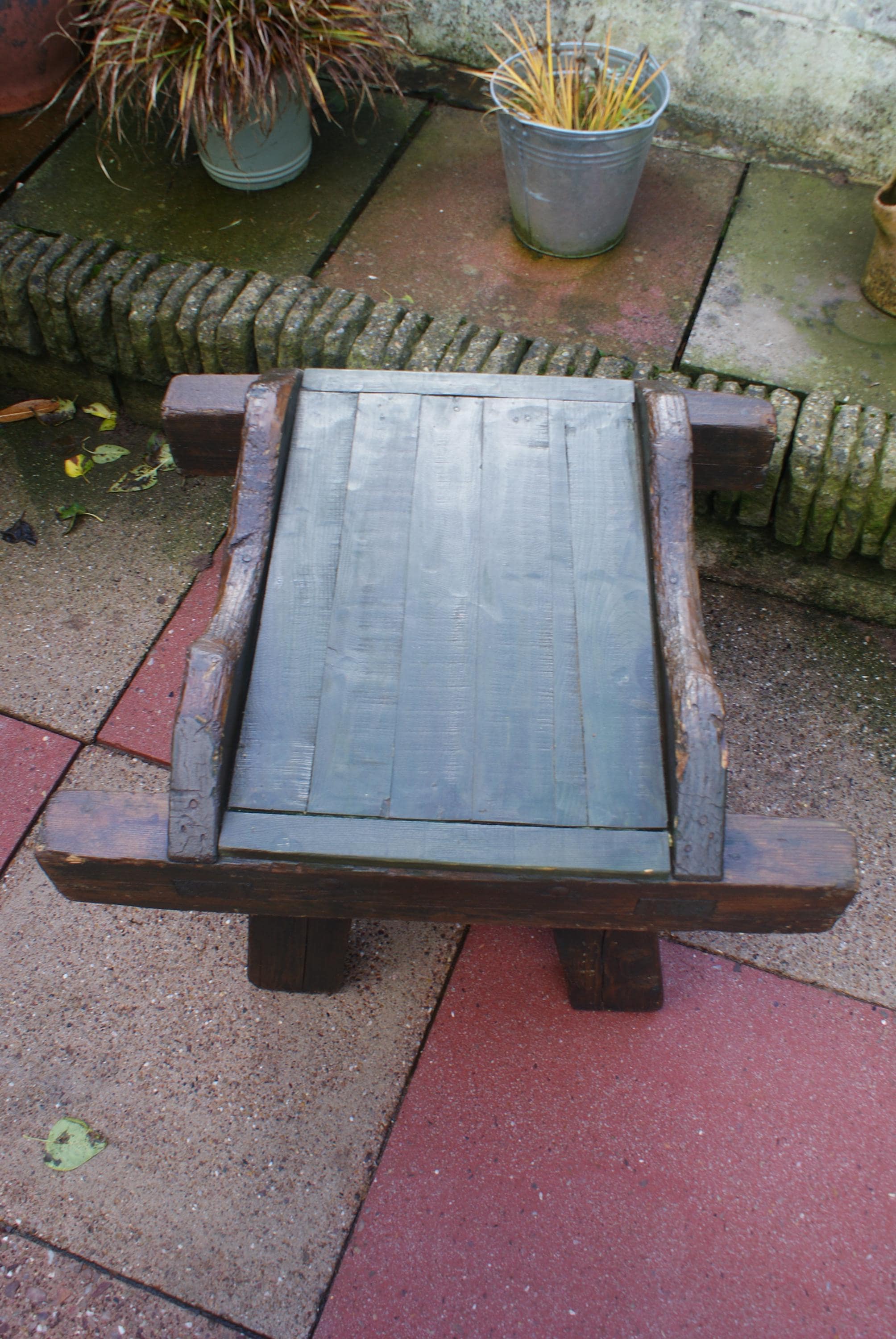 Stunning antique whiskey barrel holder coffee table, a fantastic patina to the barrel holder showing wear from decades of use. The perfect piece for industrial rustic decor.