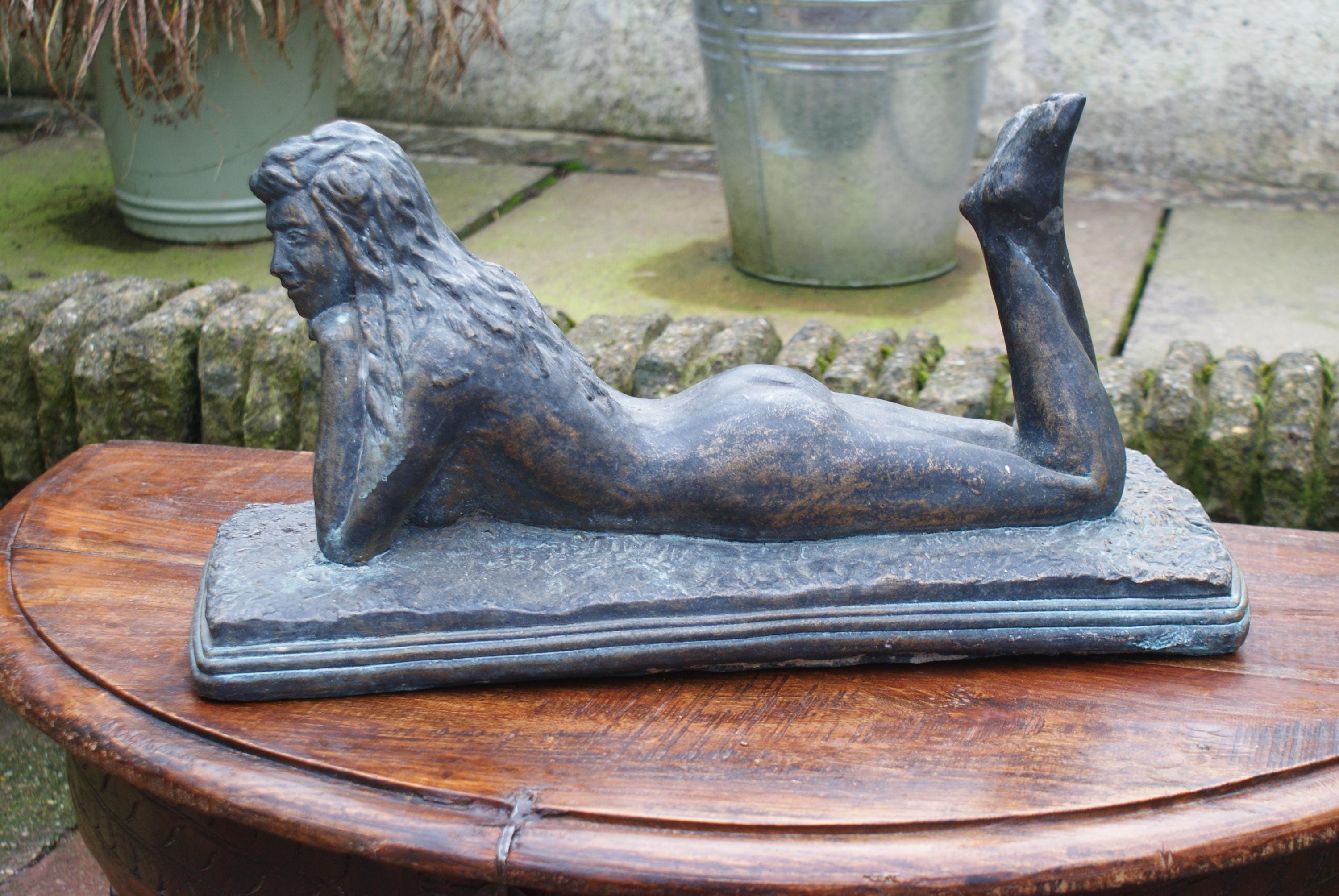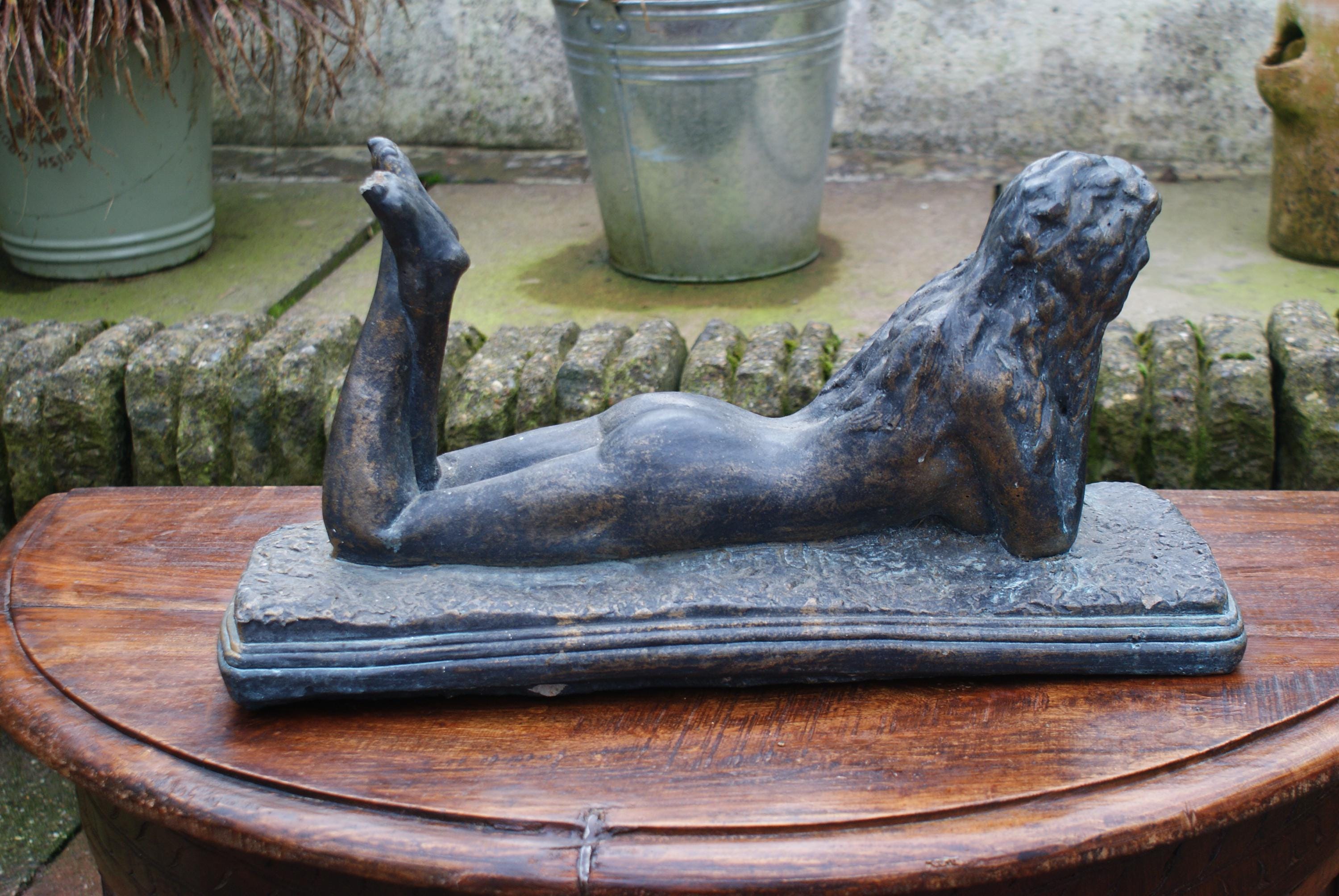 Stunning art deco figure of a nude woman, a very elegant and timeless piece. Made from a solid piece this weighs in at around 12kg some oxidization to the bronze gives this a stunning patina. slight damaged to one foot as pictured but I don't believe this detracts from the piece.