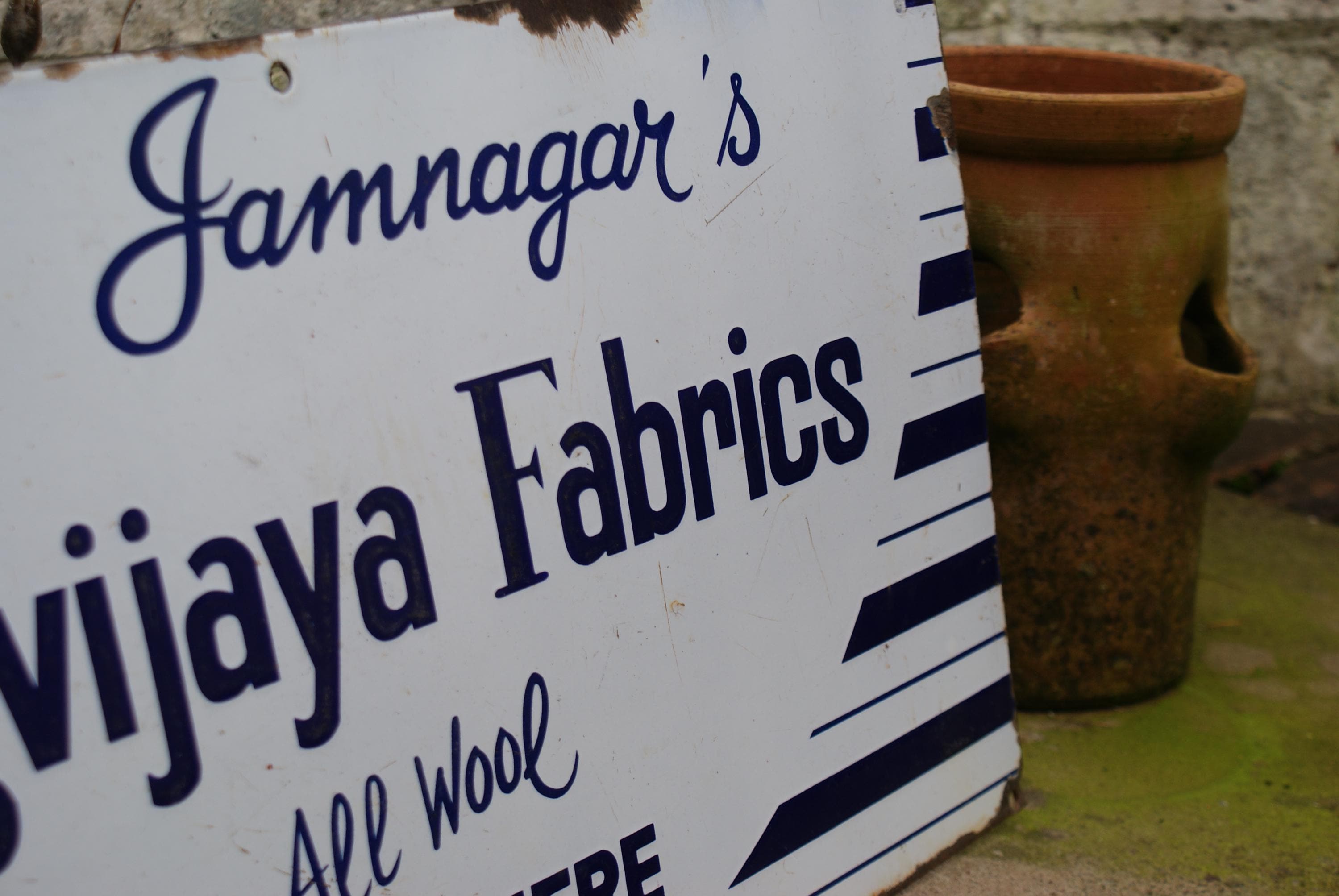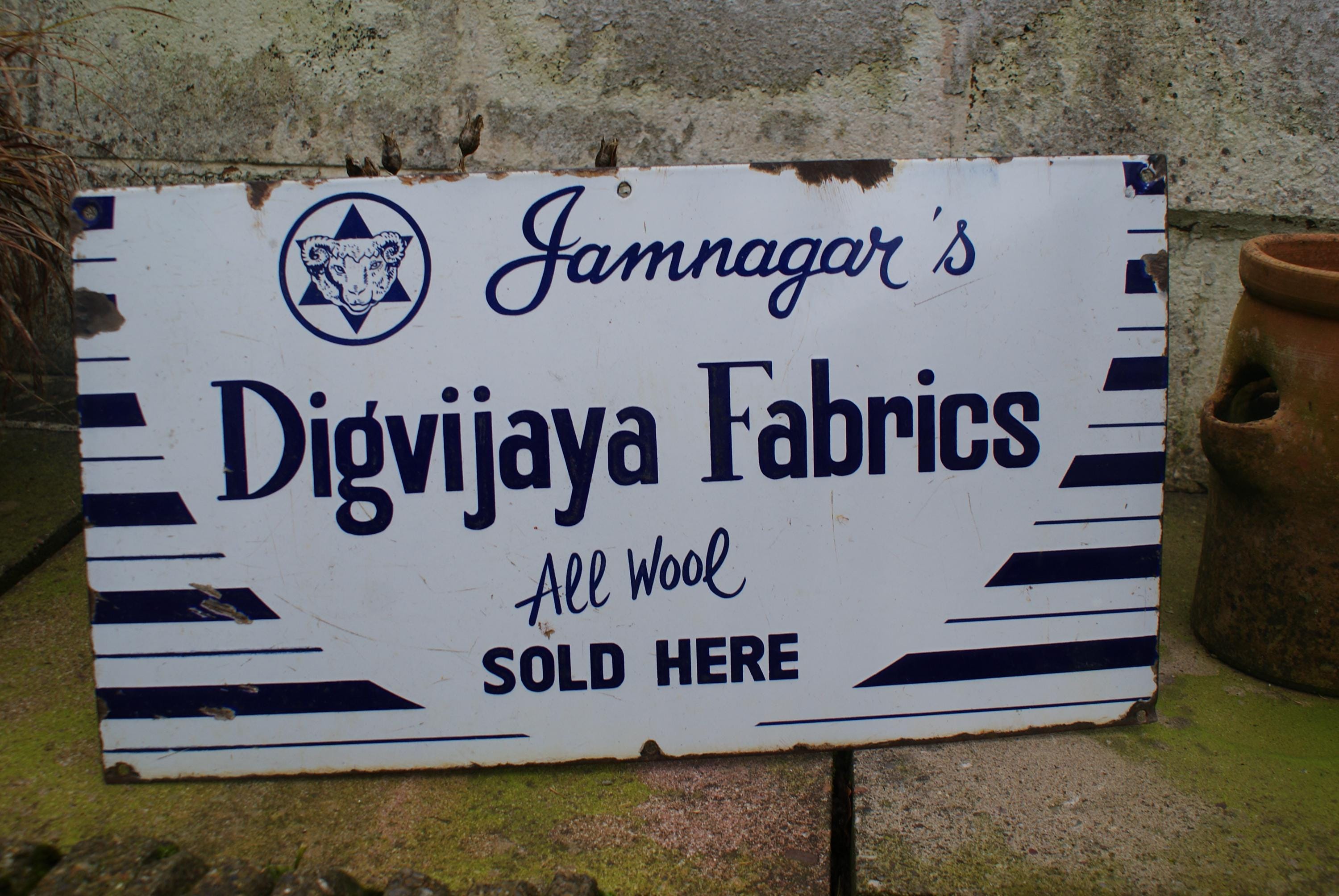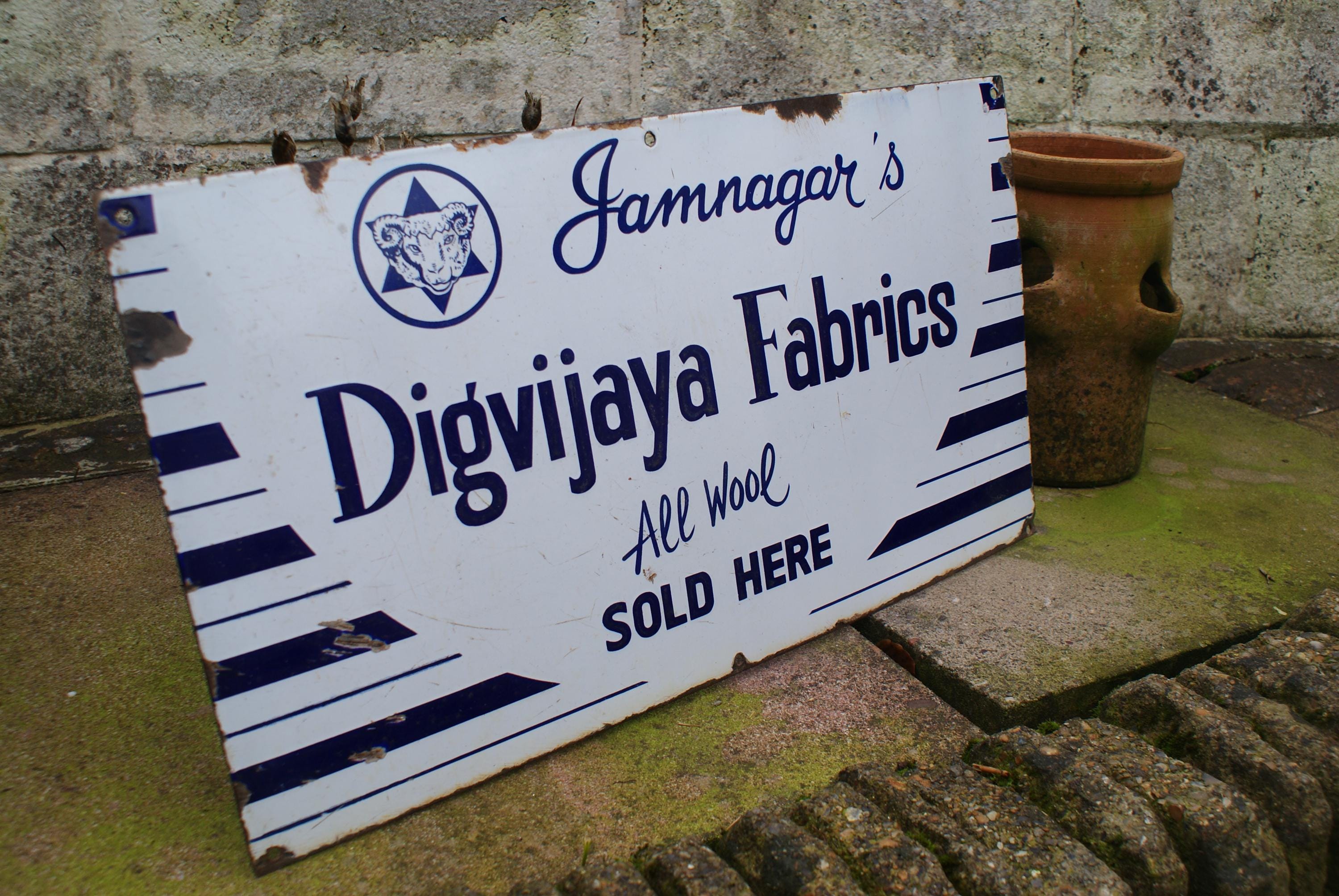 Vintage Jamnagar's Digvijaya Fabrics Woollen Mills Advertising Porcelain Enamel Sign