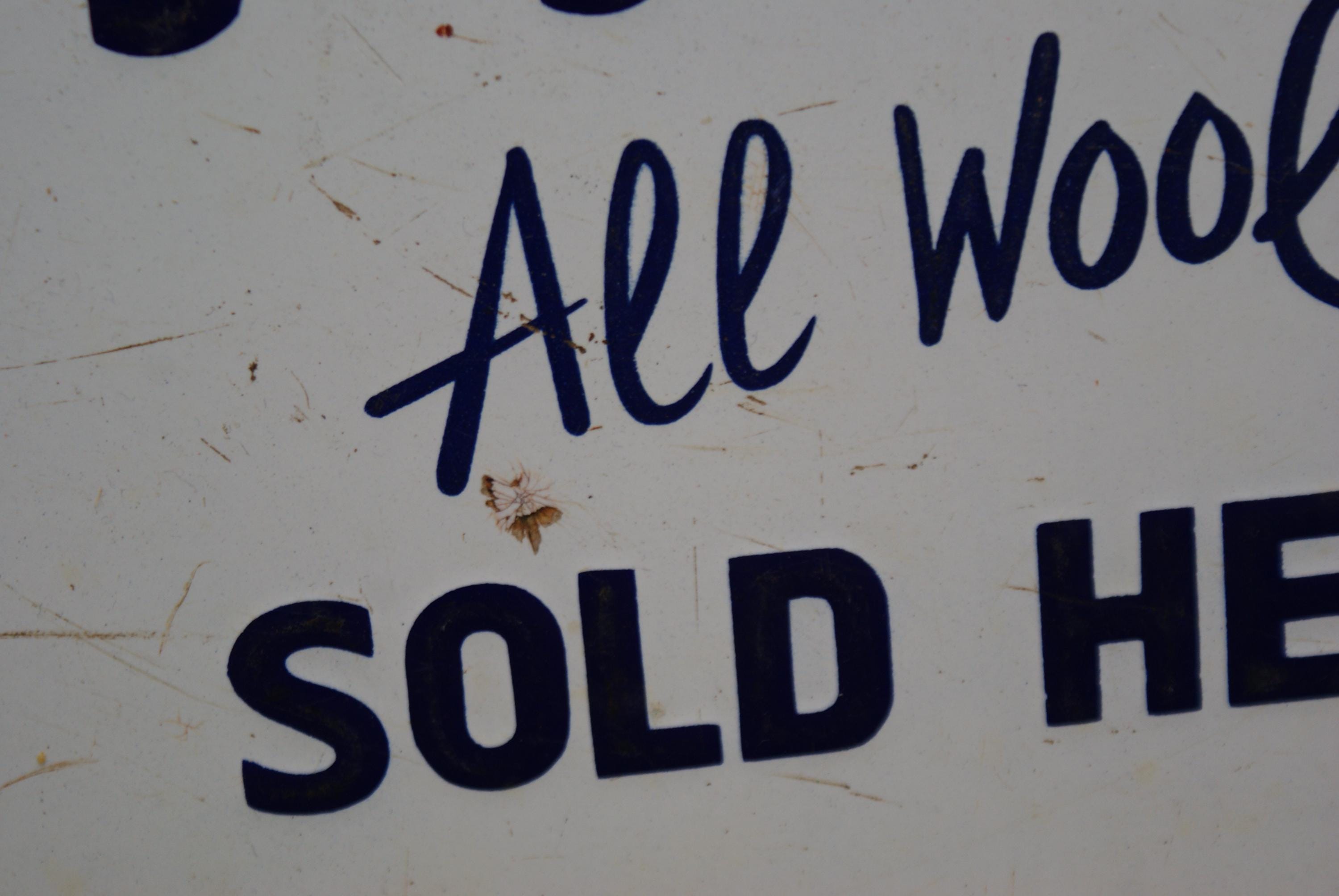 Fantastic original woollen mill advertising sign, in a lovely original condition and still very readable with some slight patina on the edges.