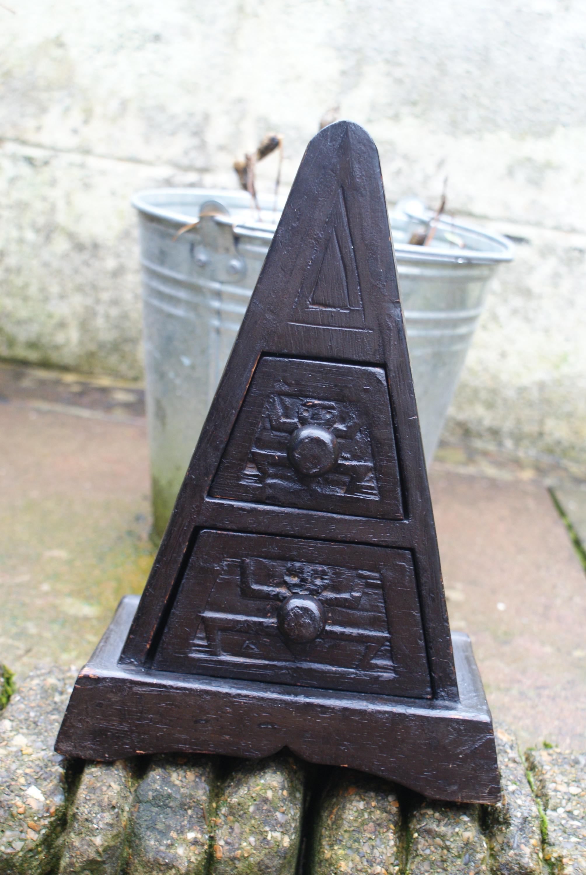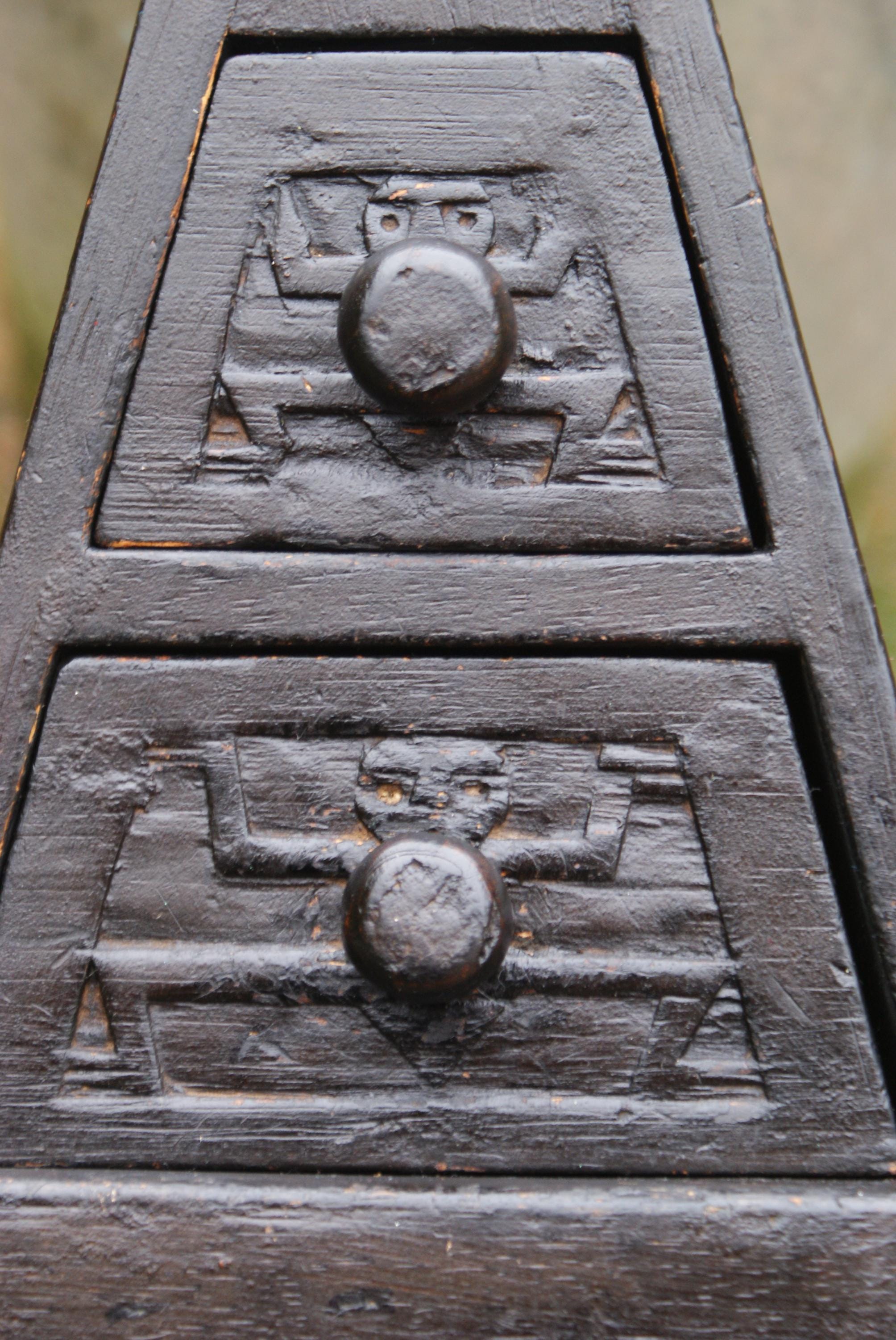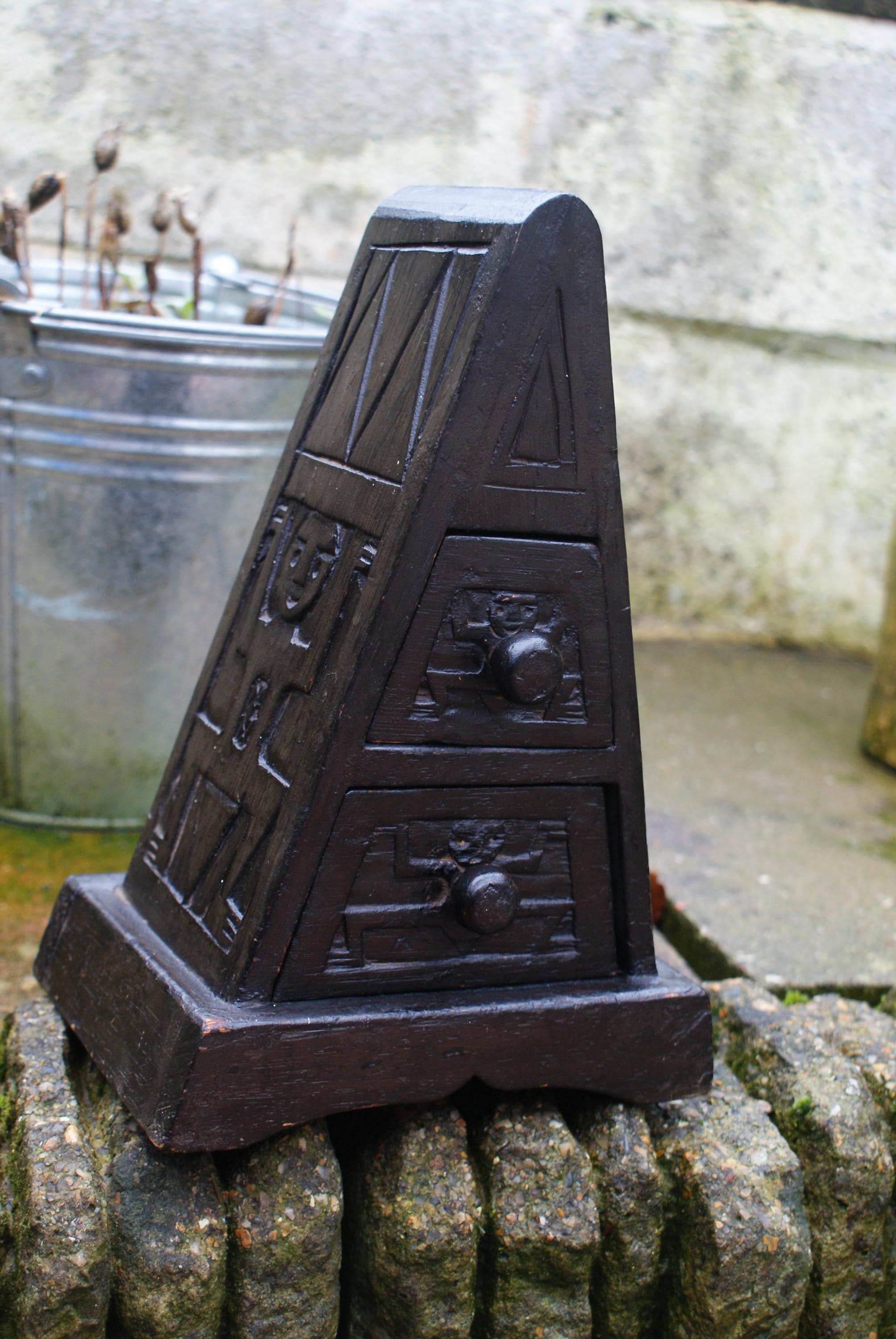 Lovely small carved African drawers, a nice eye catching display piece and a lovely patina. the bottom draw is of a useful size for small items like rings or charms.