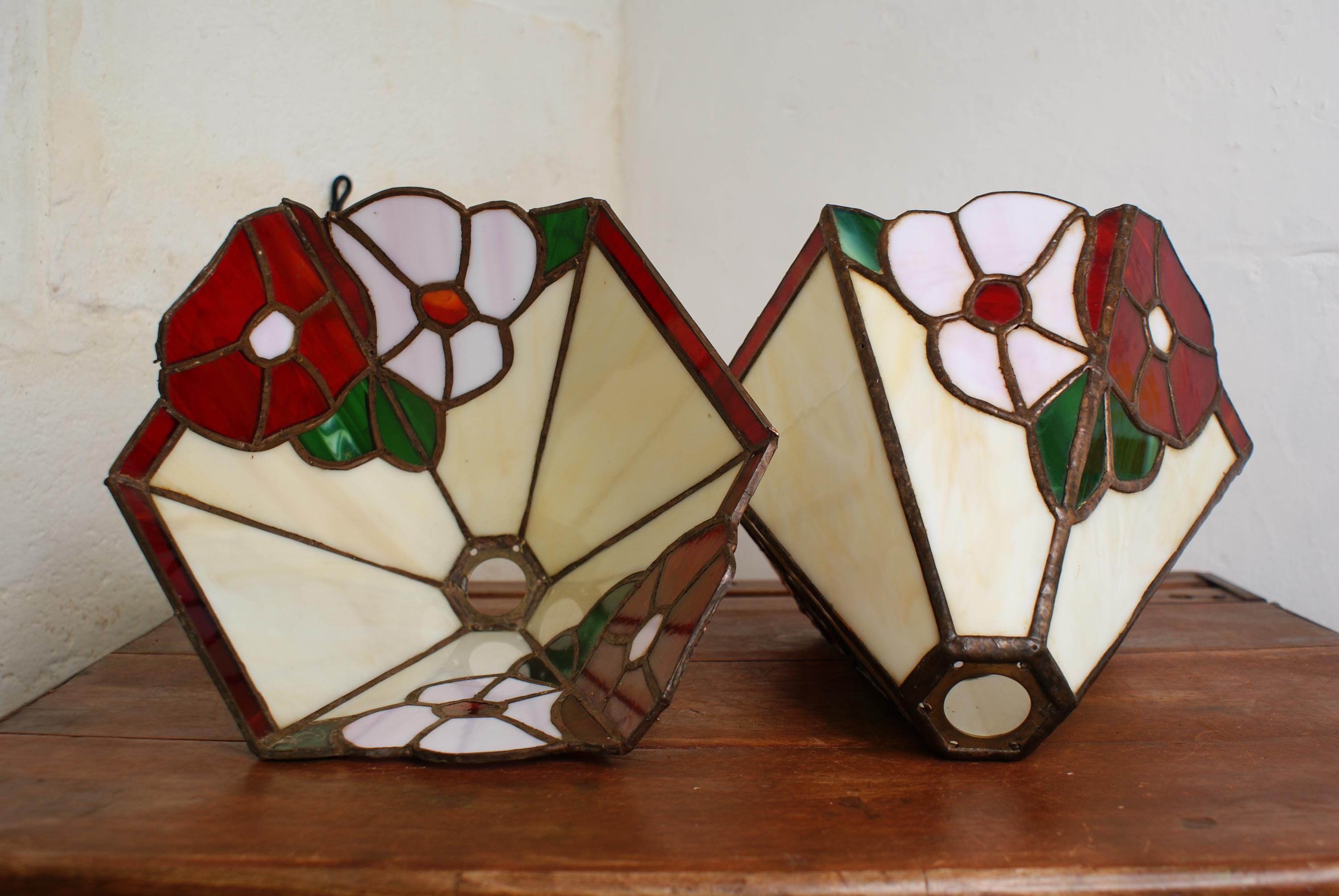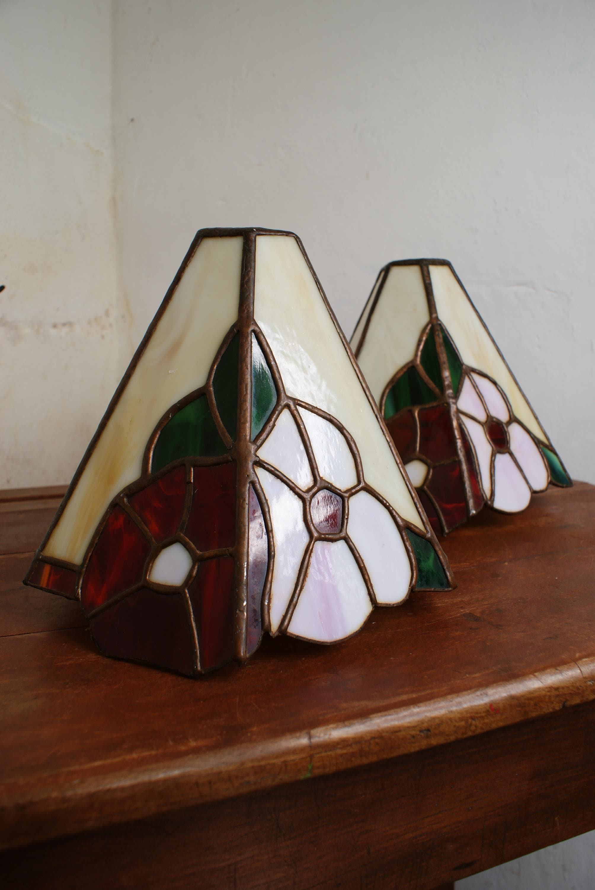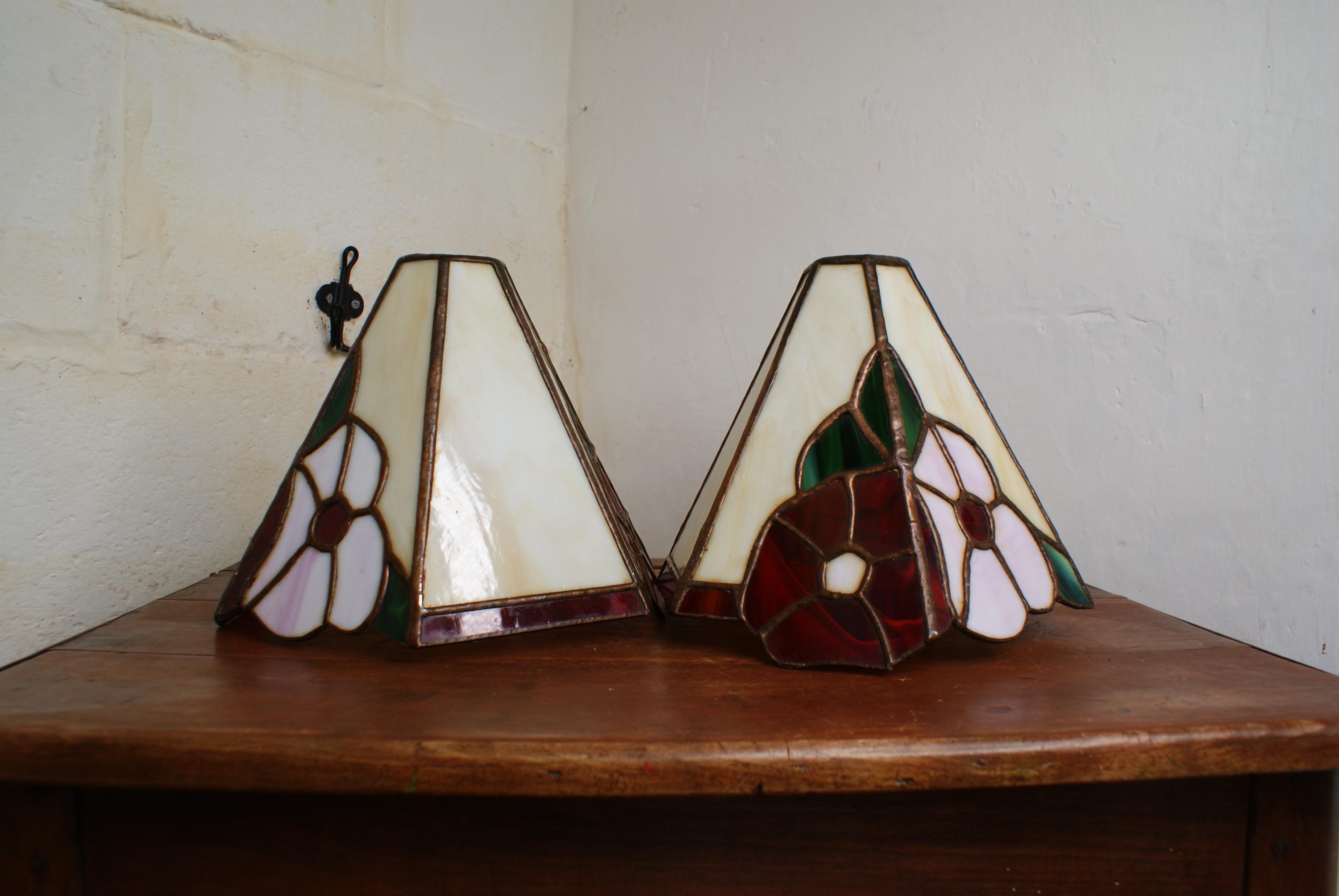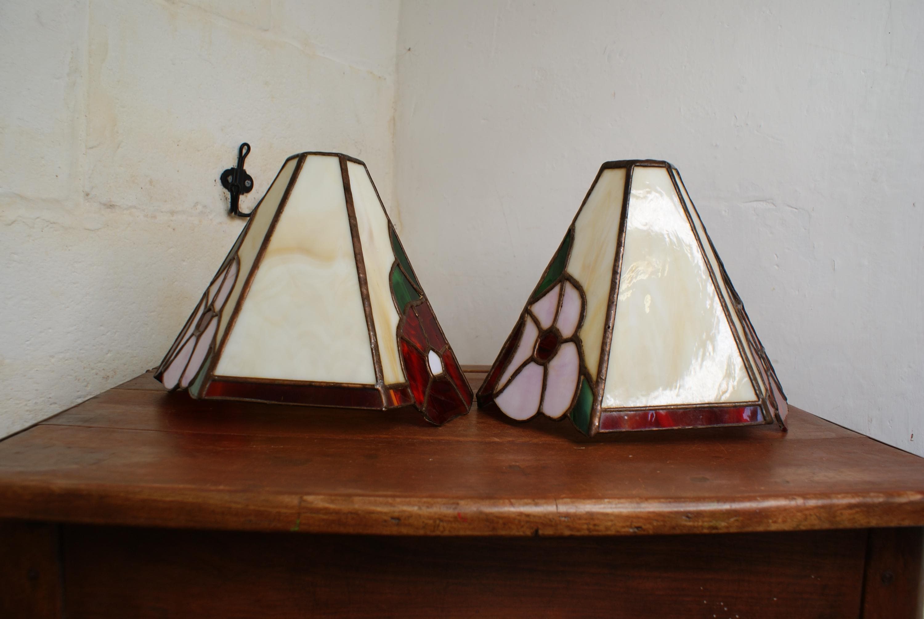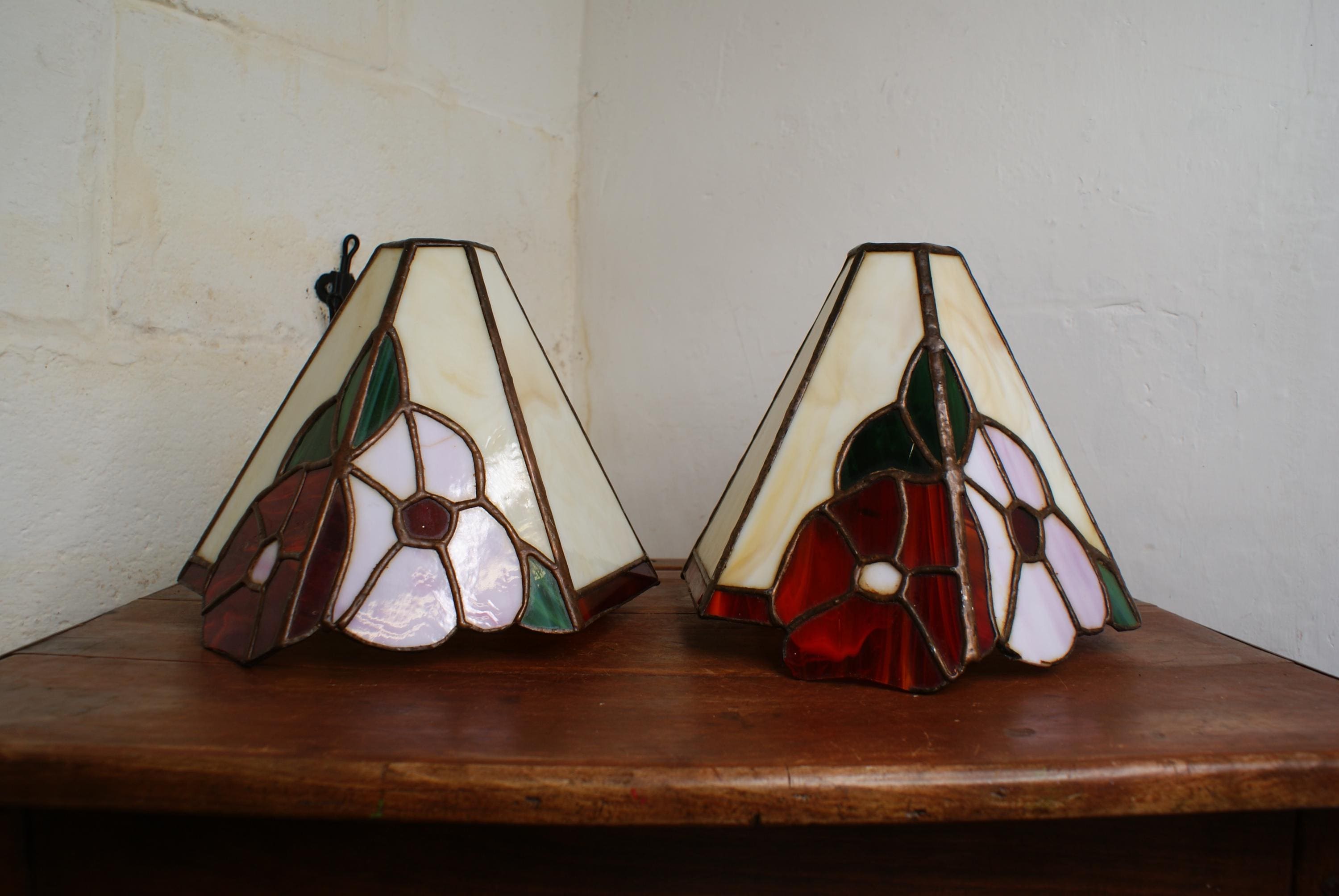 Lovely tiffany style lamp shades. A Lovely look to bring in some vintage feel to the home and soft coloured lighting. Price is for one pair of shades (2 pairs available) and will be randomly selected as they are all in the same condition.