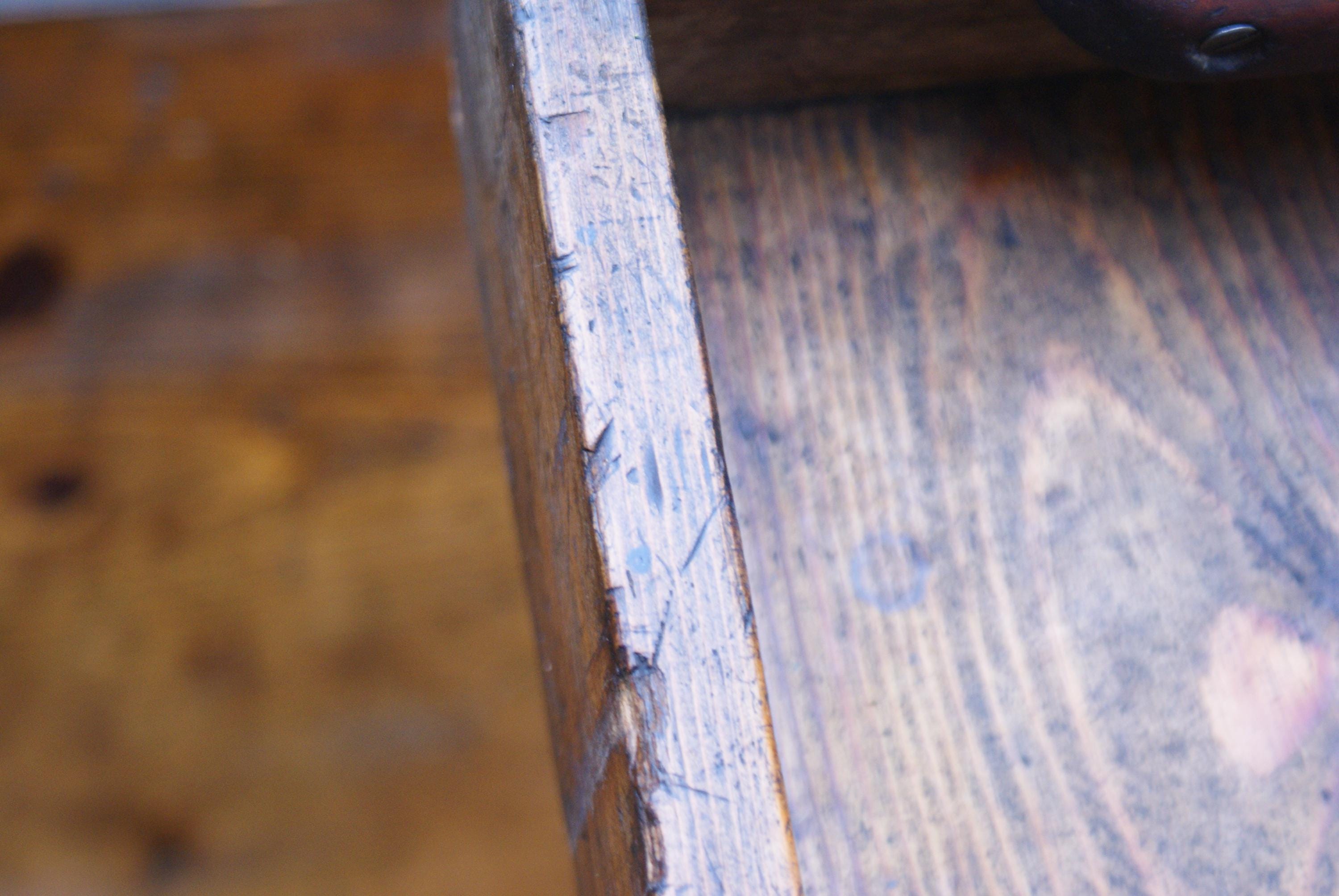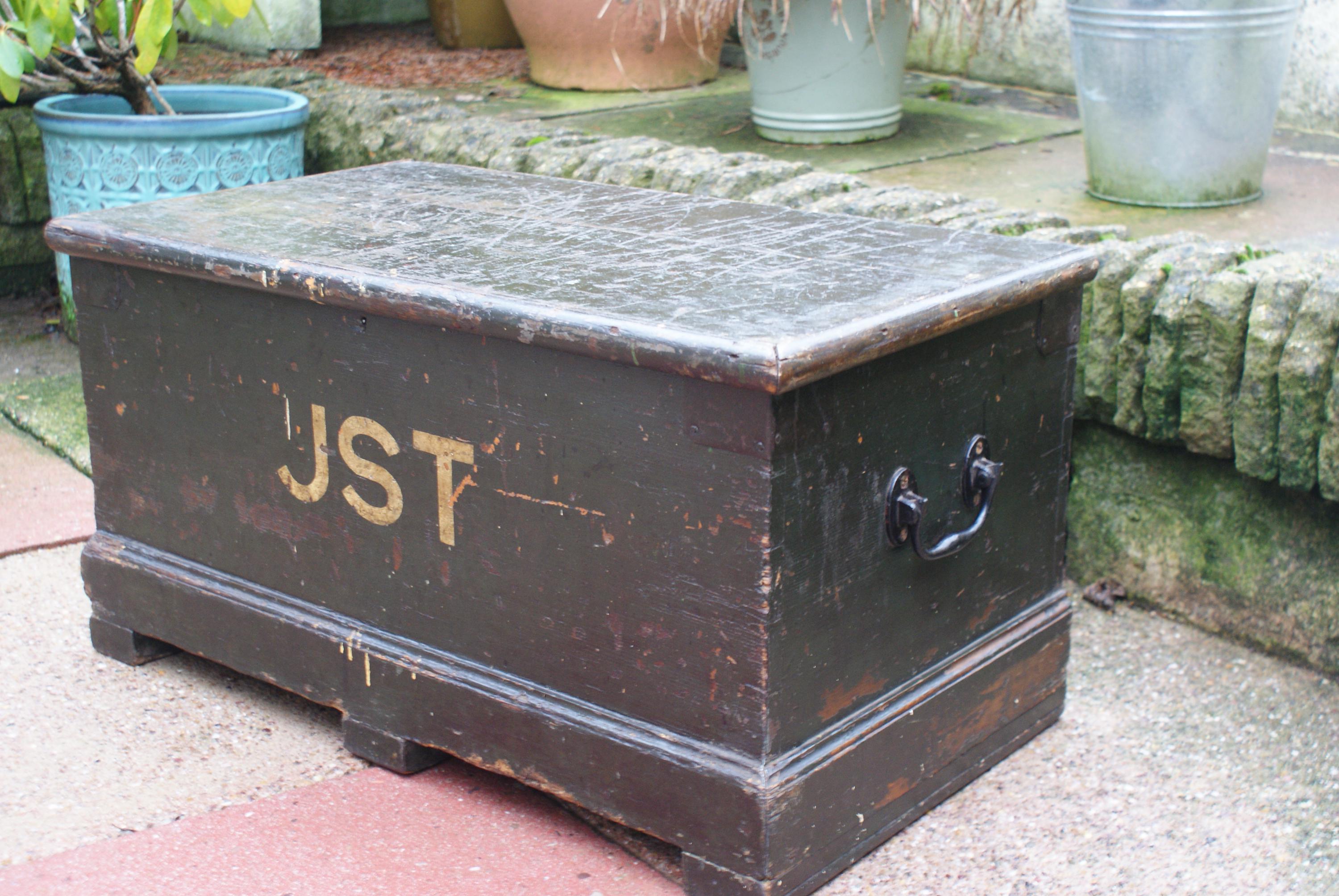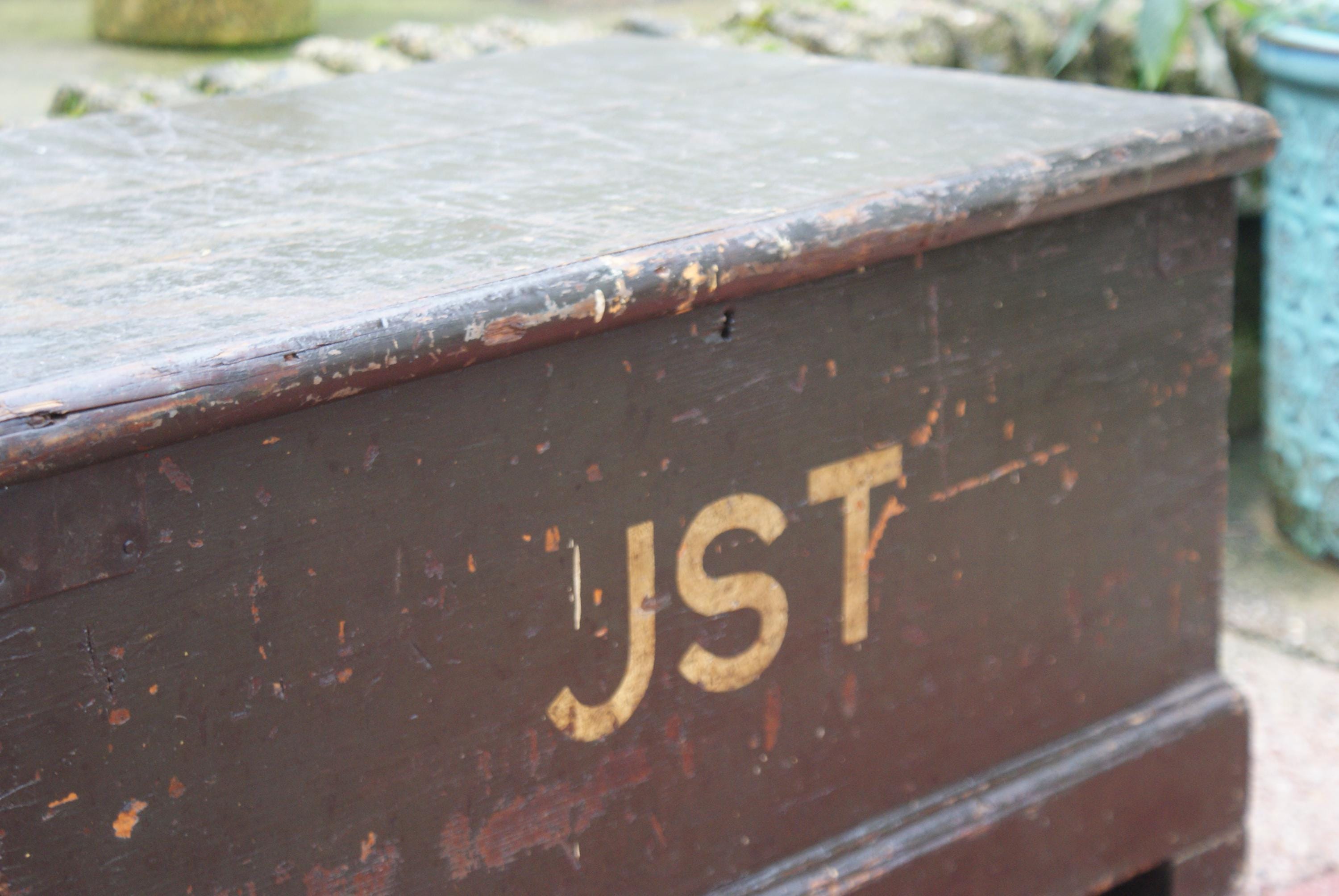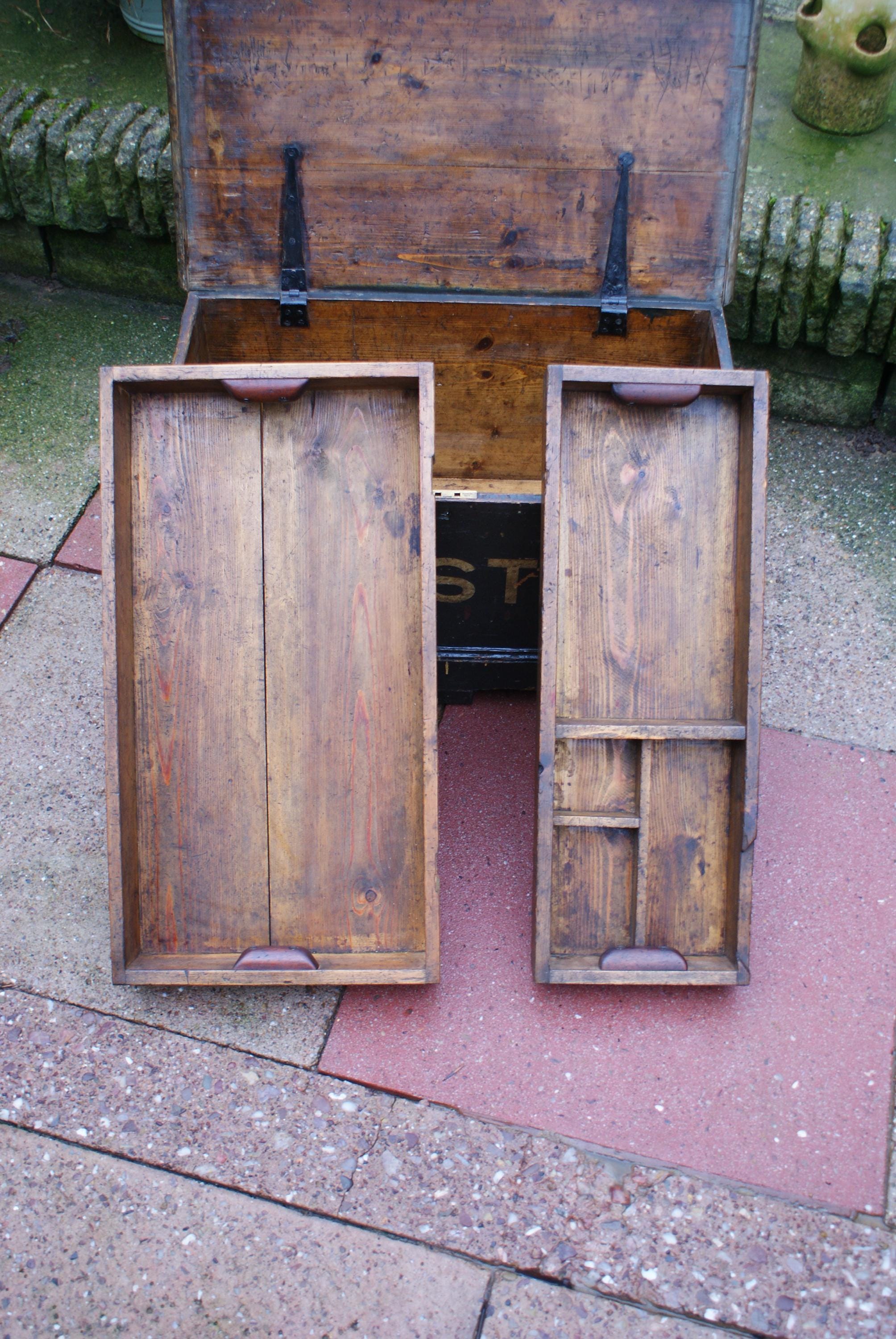 Fantastic looking engineers chest, in a lovely condition and with both the removable tools trays. this has a fantastic look and a superb patina all over and to the inside and the initials on the front make this a lovely piece. Very mild signs of historical woodworm but this has been treated again as a precaution. No key.