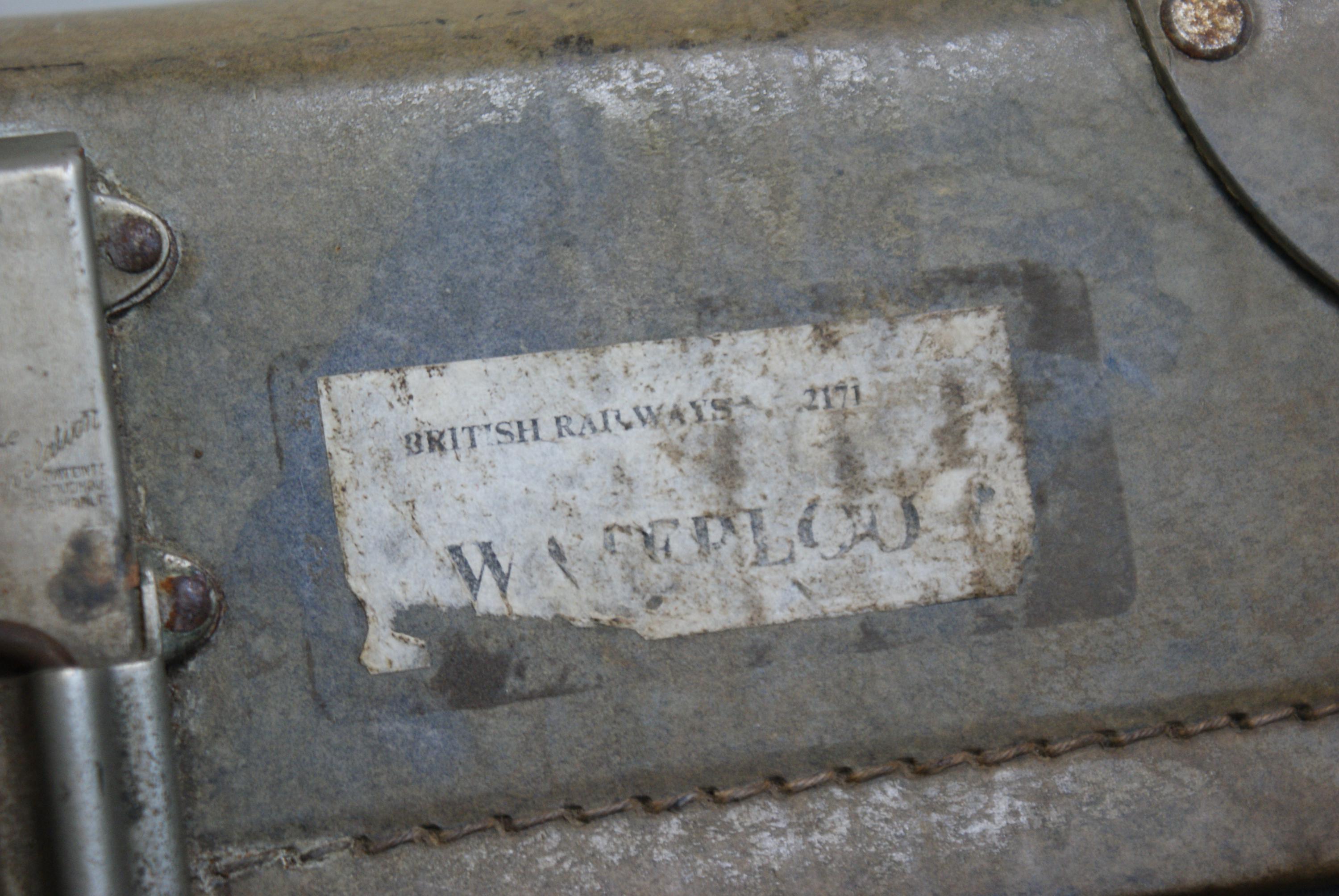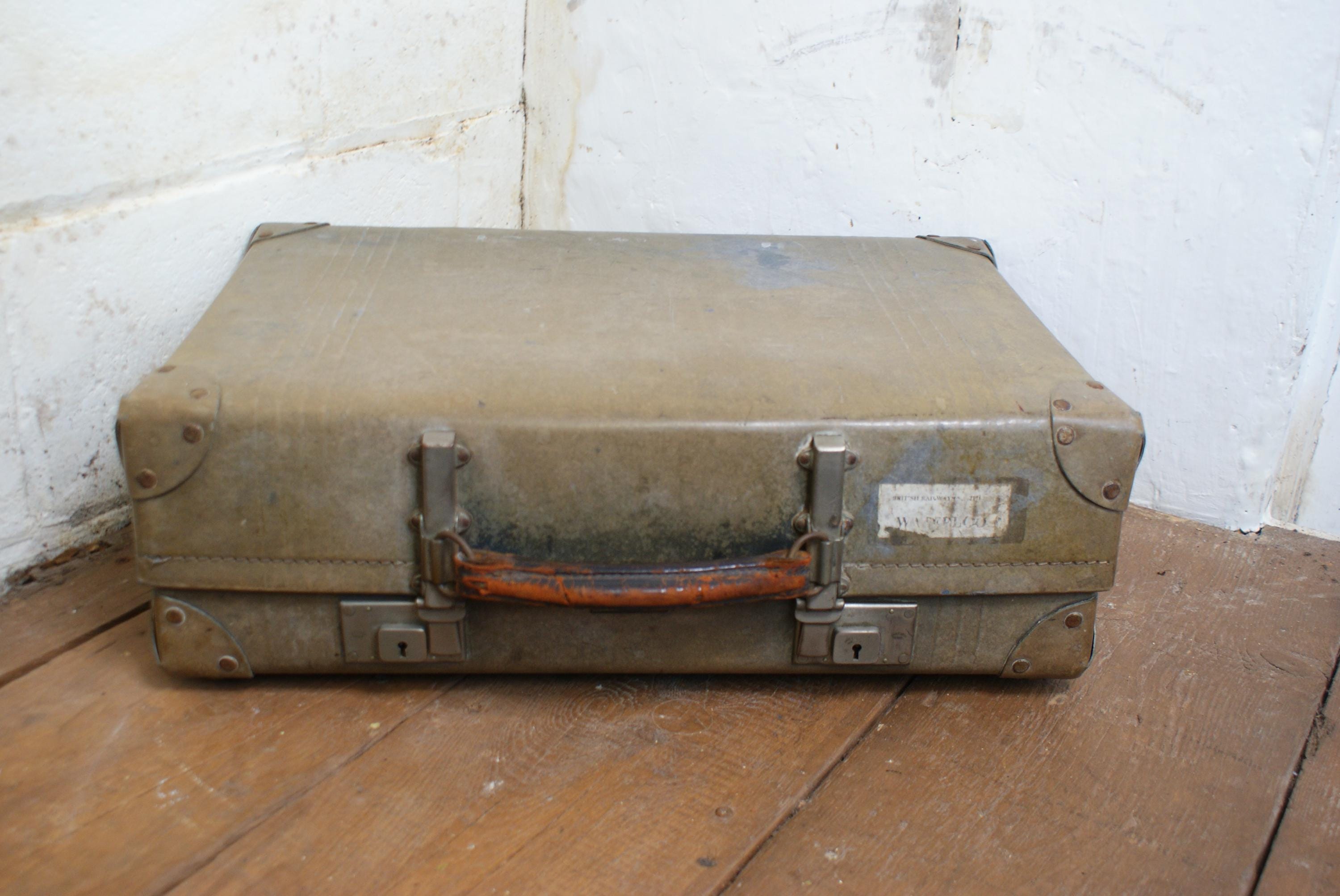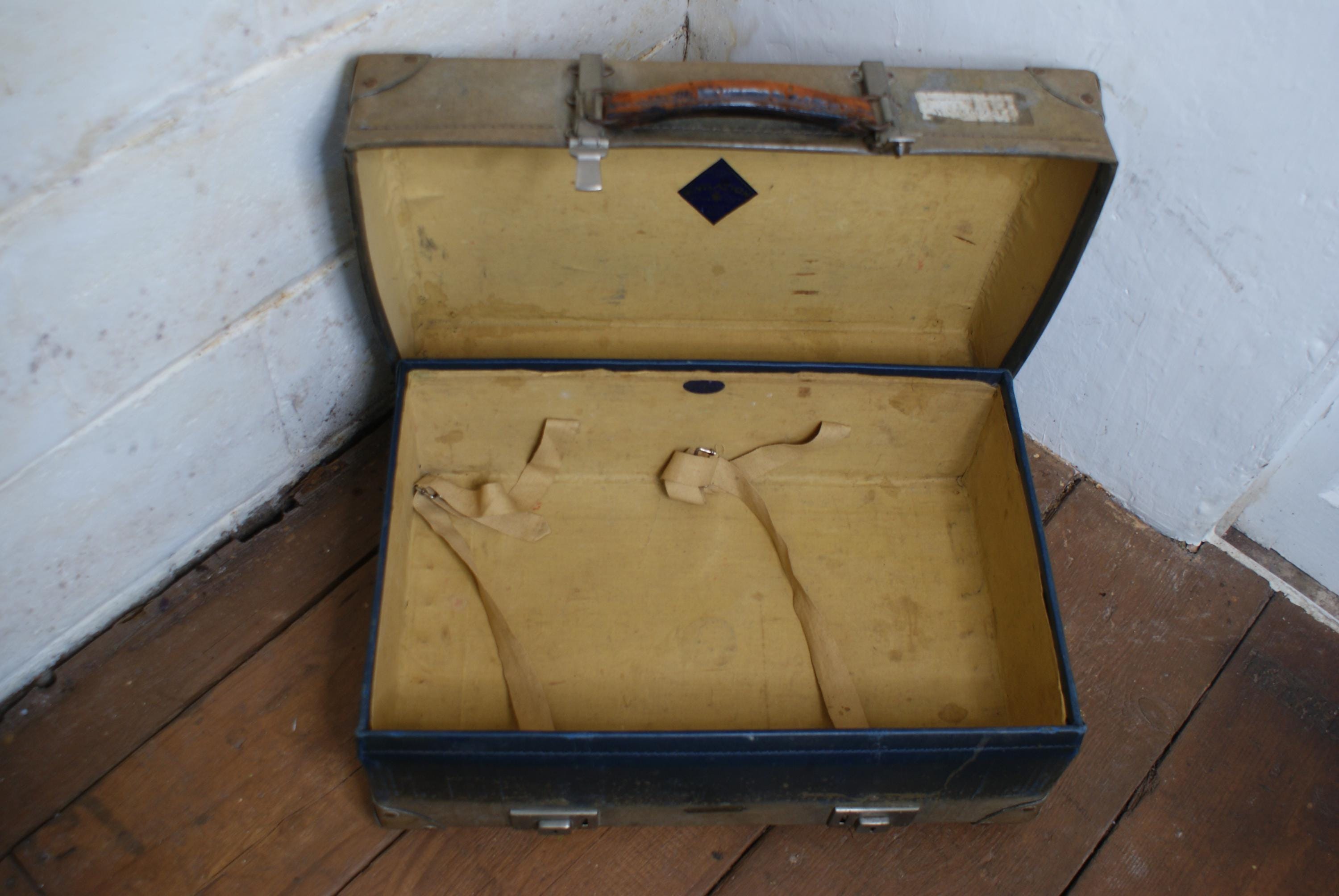 Lovely vintage suitcase, originally blue but the sun fading has given this a unique colour and it still has and original British rail sticker which looks to be for Waterloo station. An ideal piece for creating vintage displays.