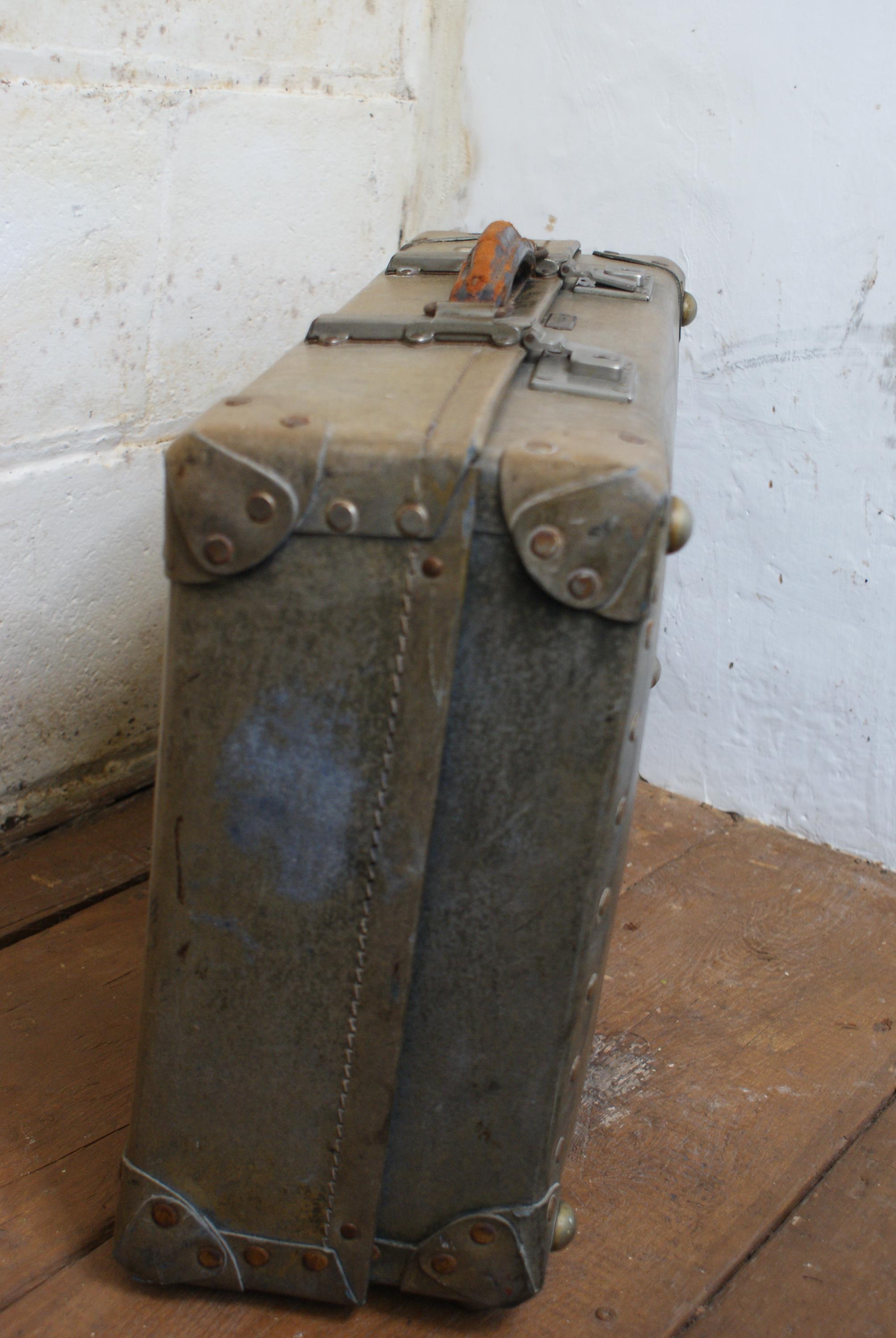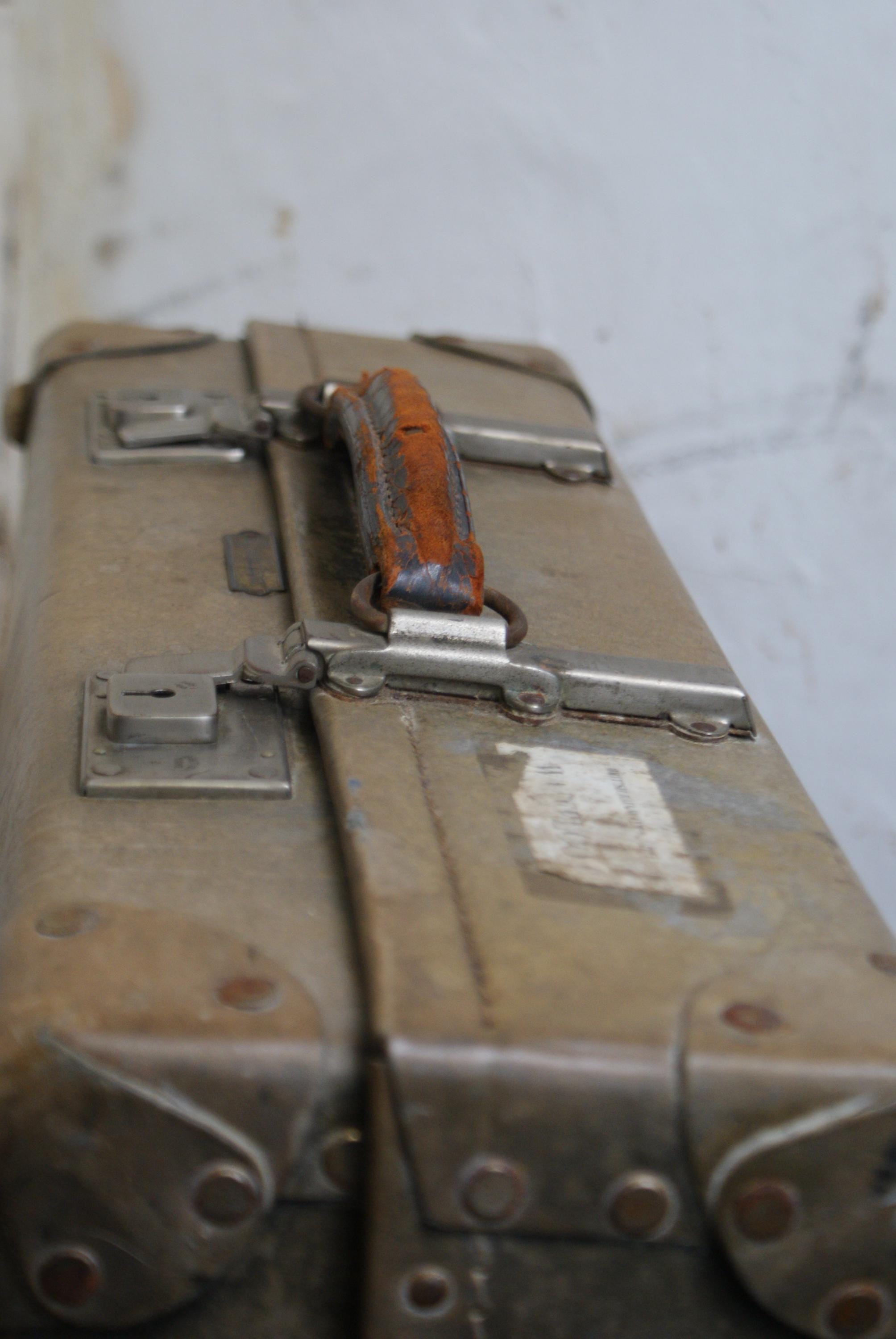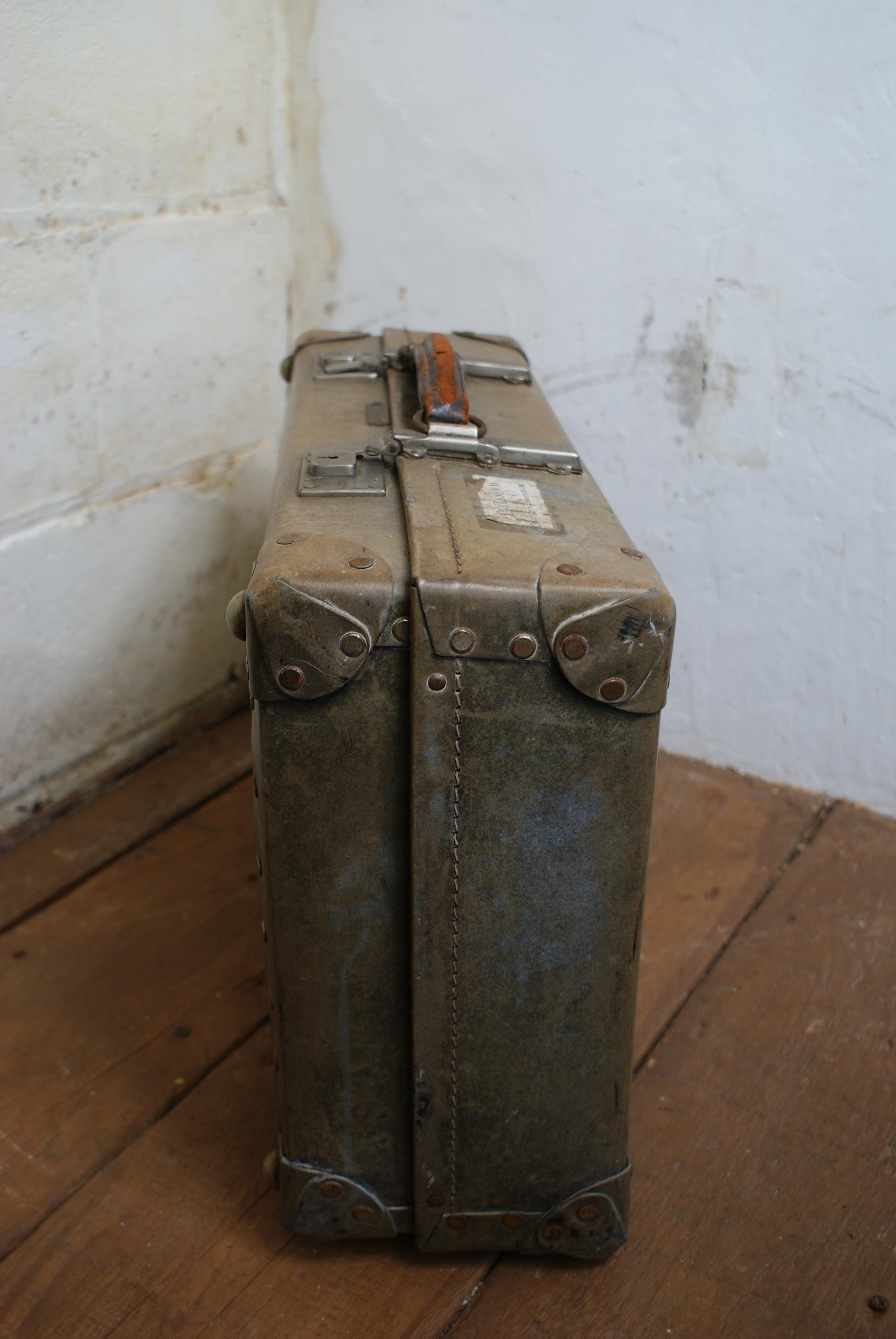 Lovely vintage suitcase, originally blue but the sun fading has given this a unique colour and it still has and original British rail sticker which looks to be for Waterloo station. An ideal piece for creating vintage displays.