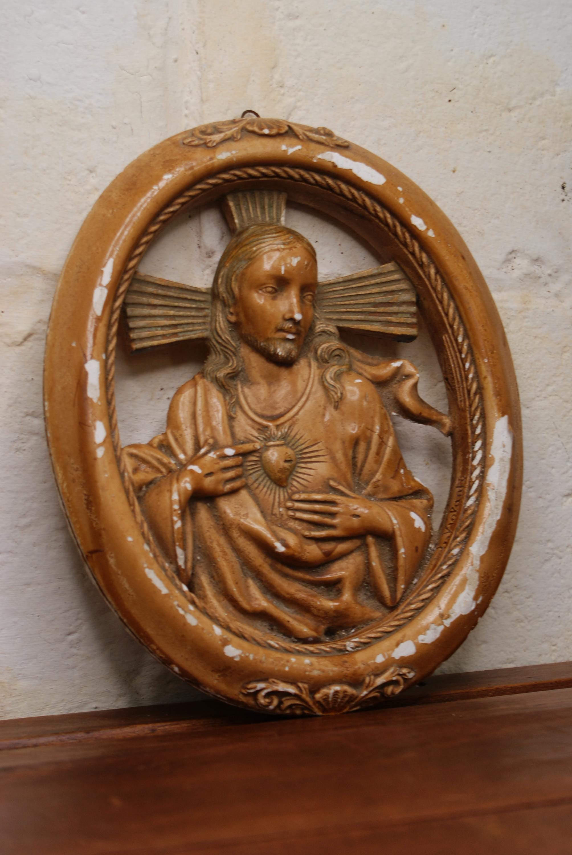 French Plaster Cast of The Sacred Heart of Jesus