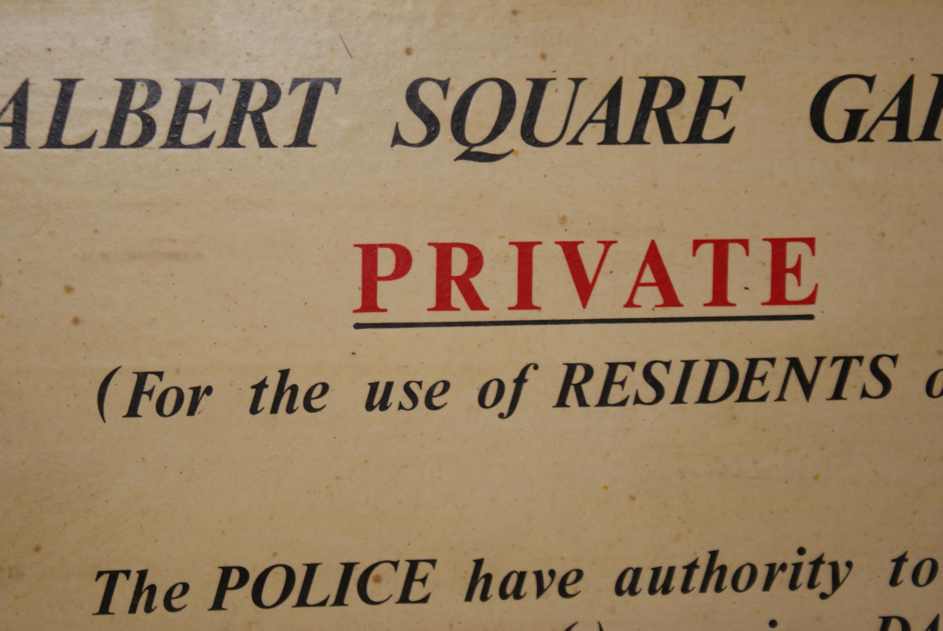 Private Residents Sign From Albert Square Garden, London