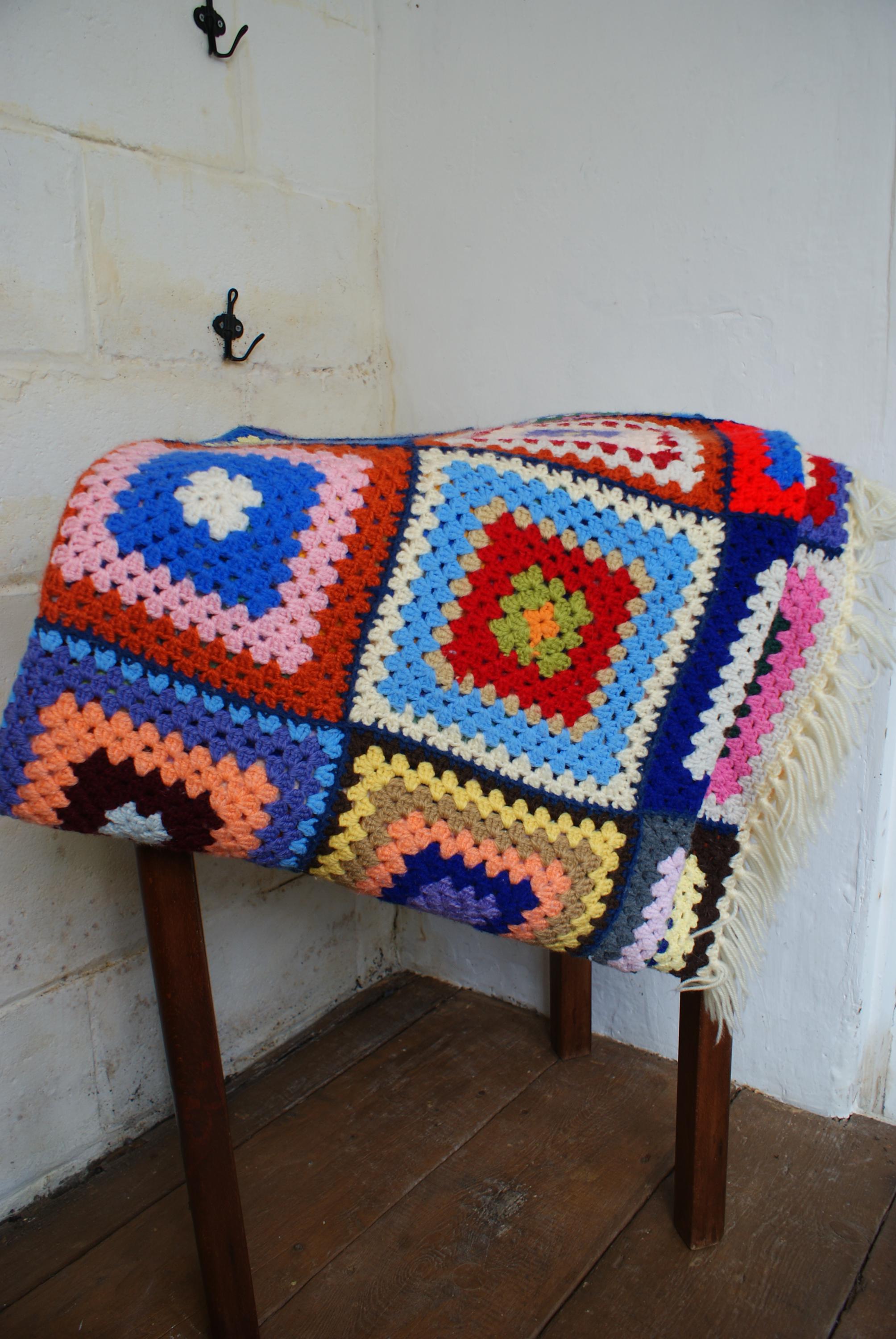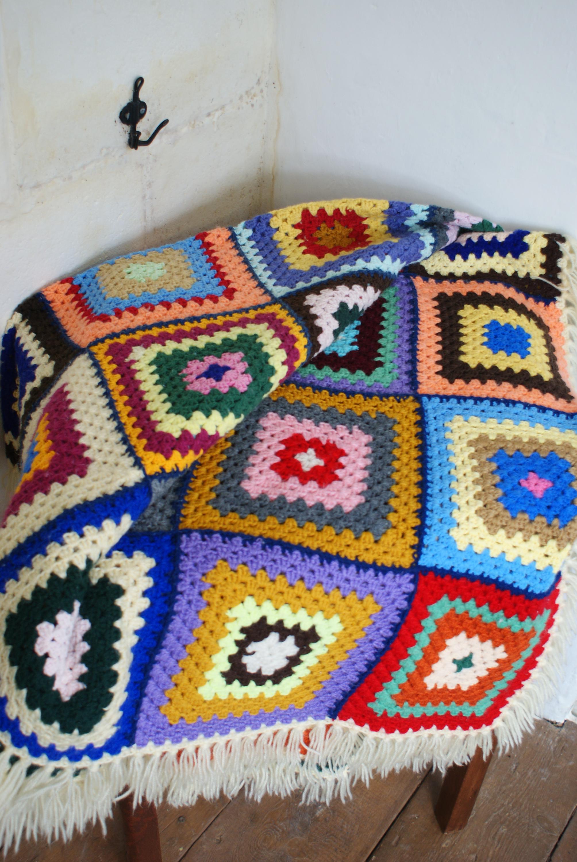 Lovely extra large blanket, affectionately known as a granny square blanket this is a lovely piece of vintage décor and sure to keep you warm on cosy nights in. A really vibrant piece in excellent condition and big enough for the whole family.