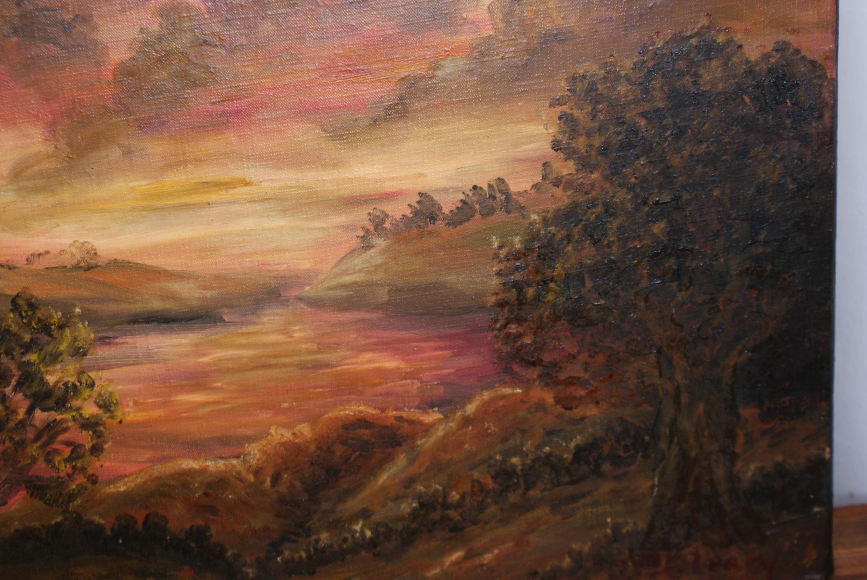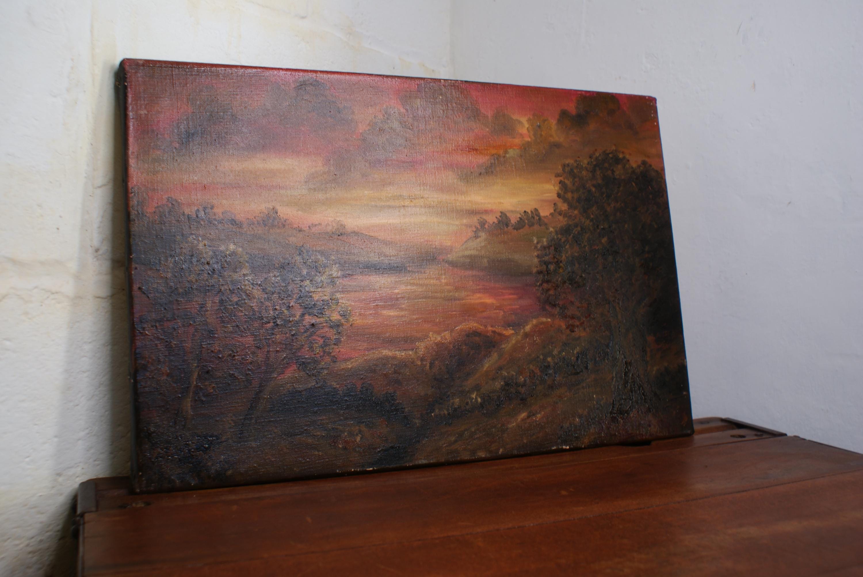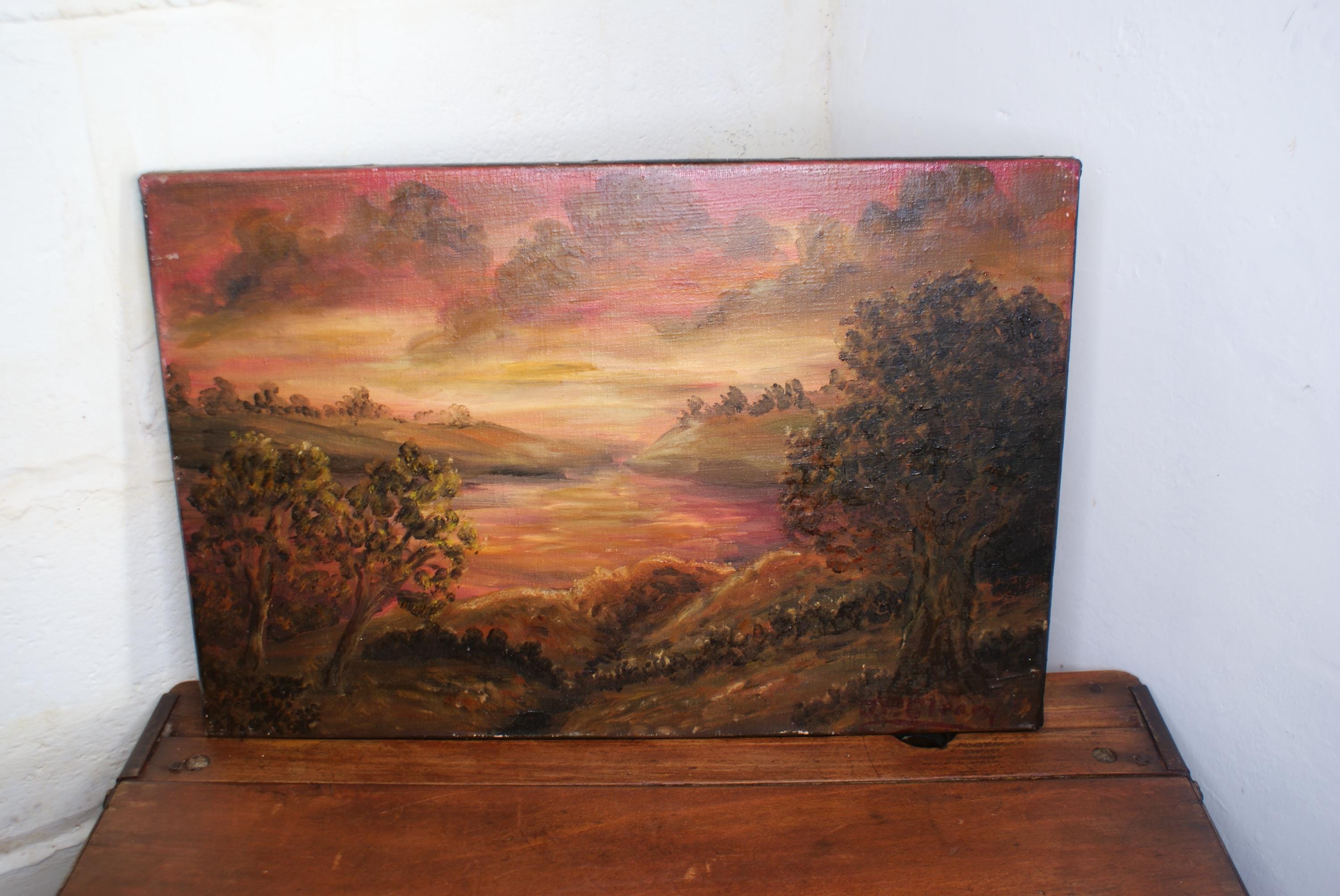Stunning Scenic painting with fantastic colours and a moody feel, quite naïve in style but a lovely piece of art. At the time of listing (5/4/2025) I have seven paintings by this particular artist. some slight paint loss at the bottom but still a lovely piece.
