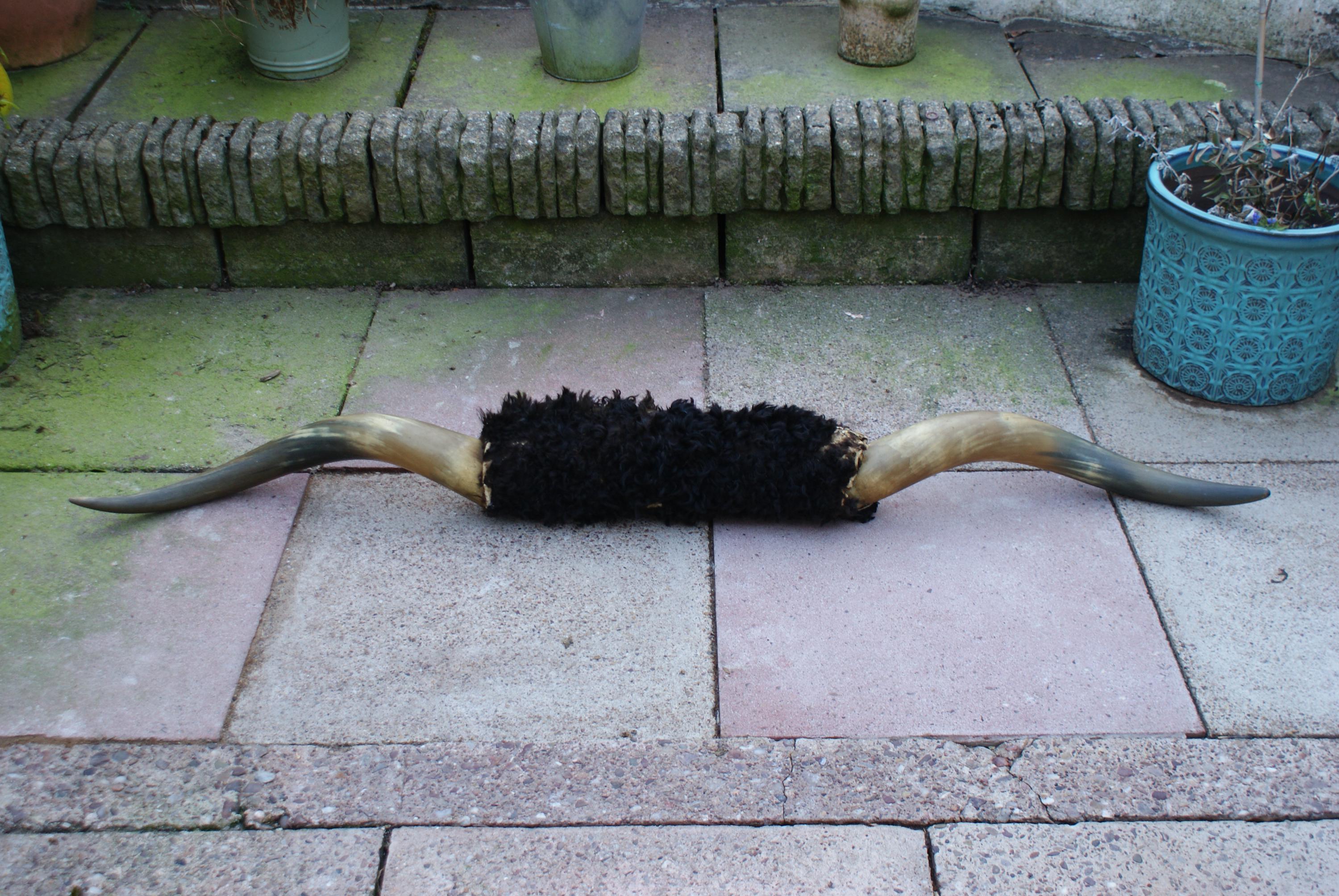 Fantastic set of highland cow horns, early 20th century in age. These are an impressive set of horns and a striking statement piece and a conversation starter. There is some fur loss to the back of the mount but not much from the front but overall a good condition for the age and size of the piece.