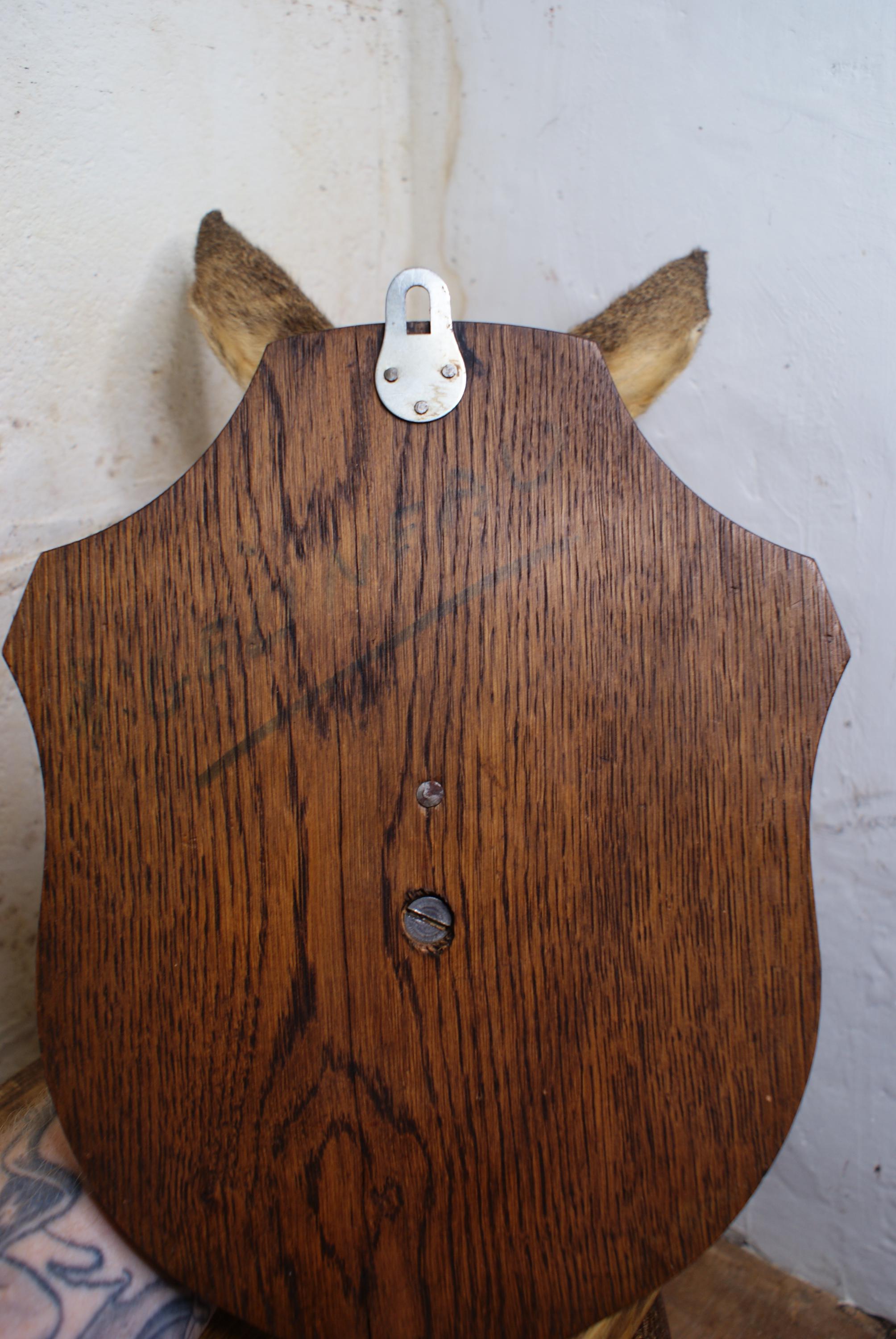 Lovely vintage taxidermy row deer, mounted on a wooden shield. Some fur loss to one side but.