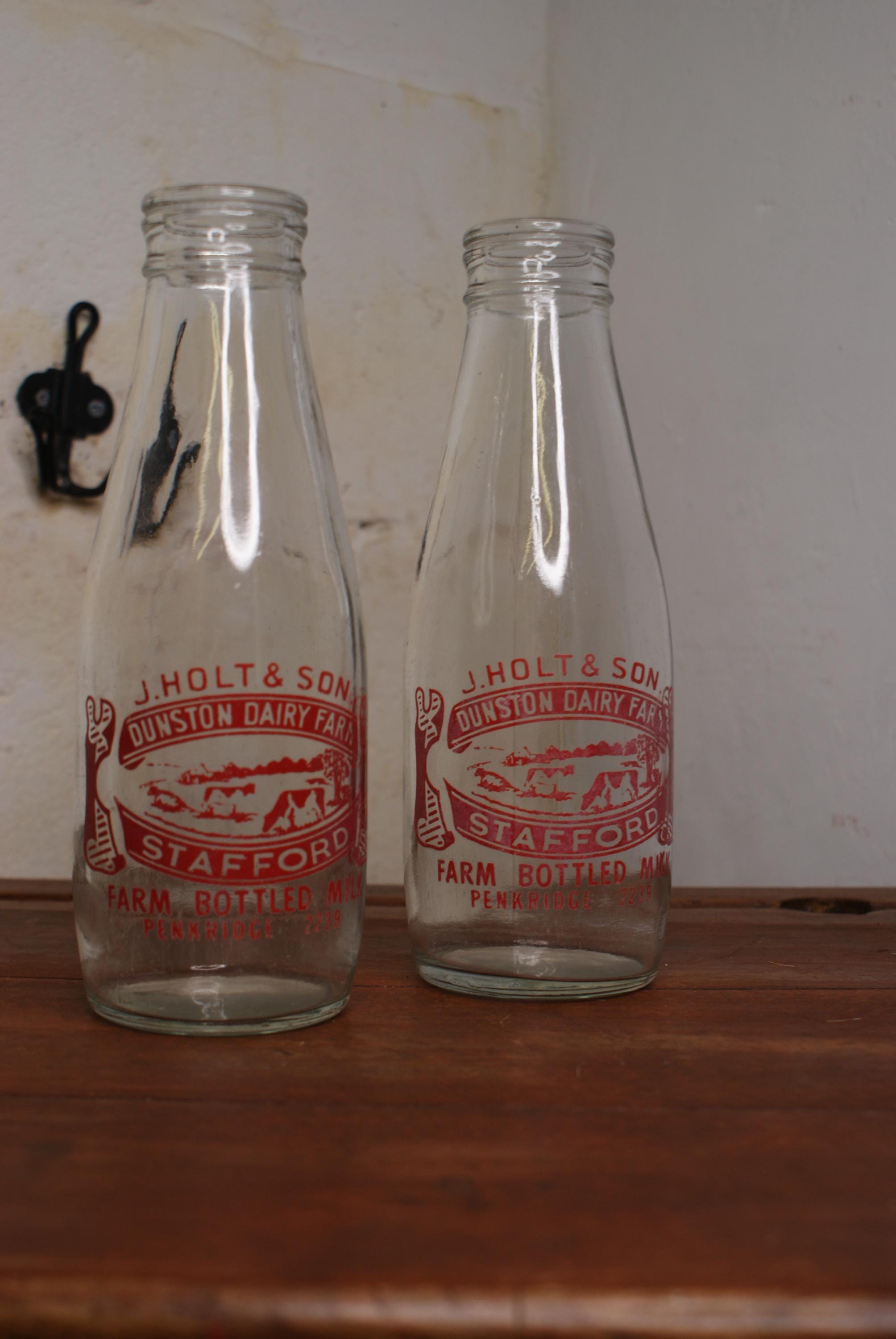 A Pair of Vintage J. Holt and Son Dairy Farm Bottles