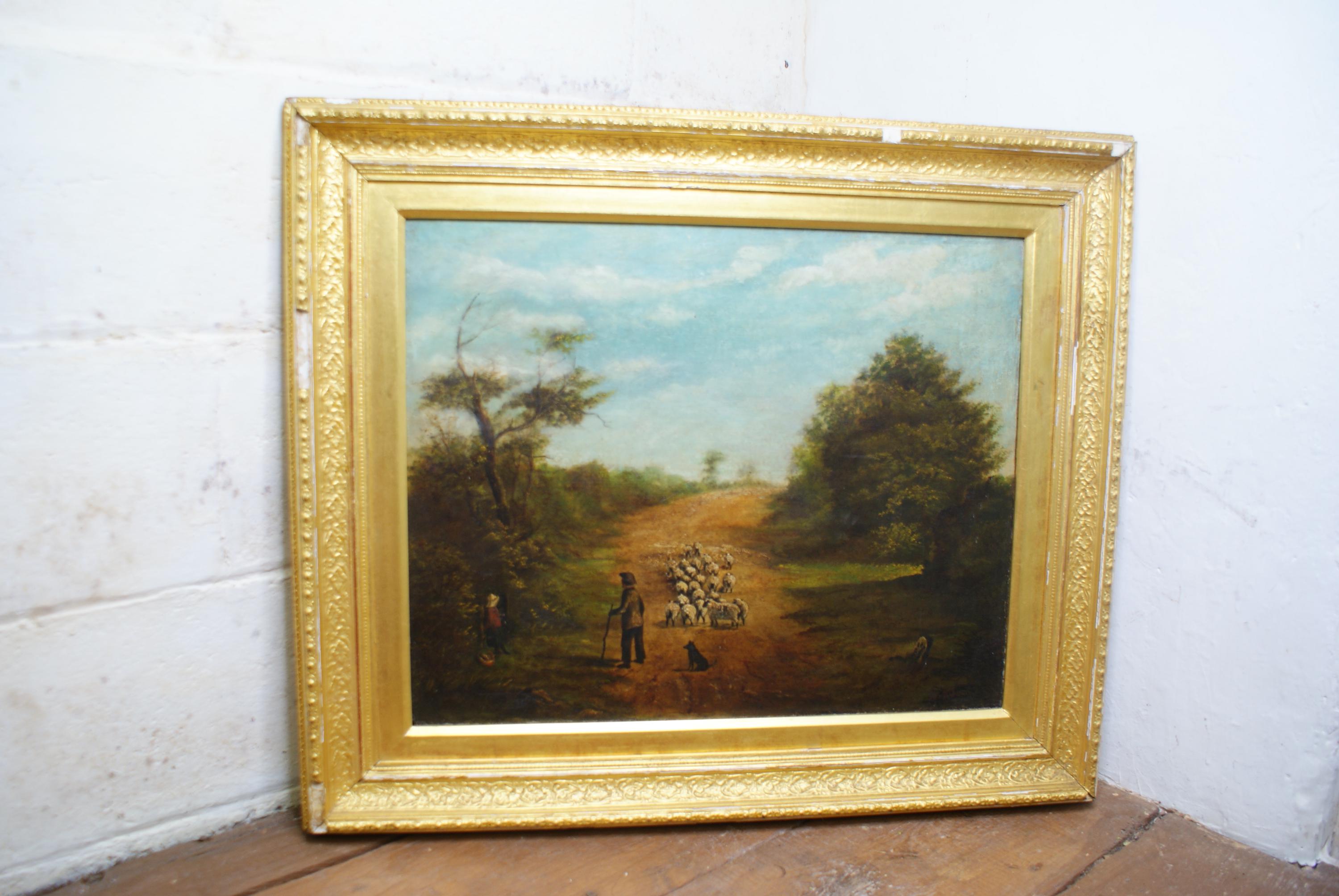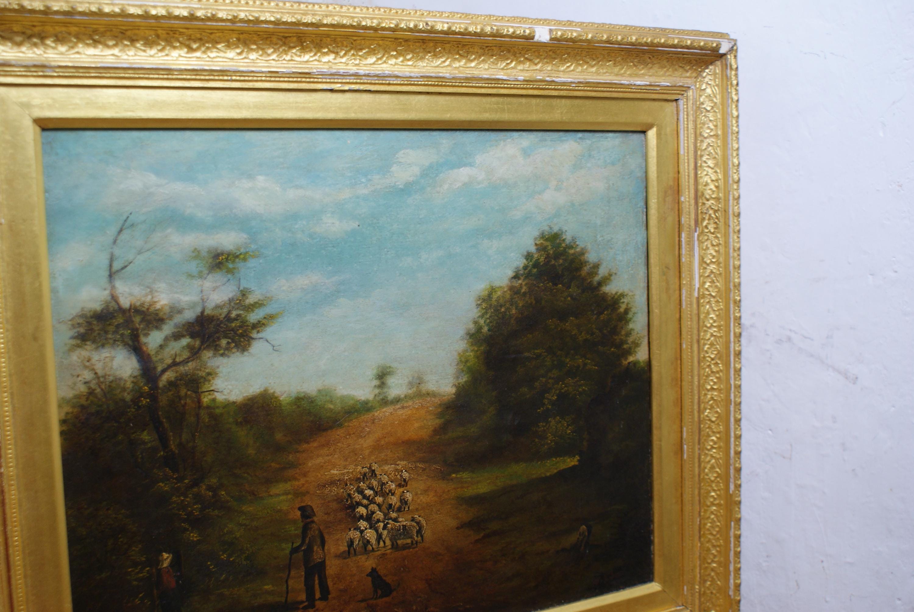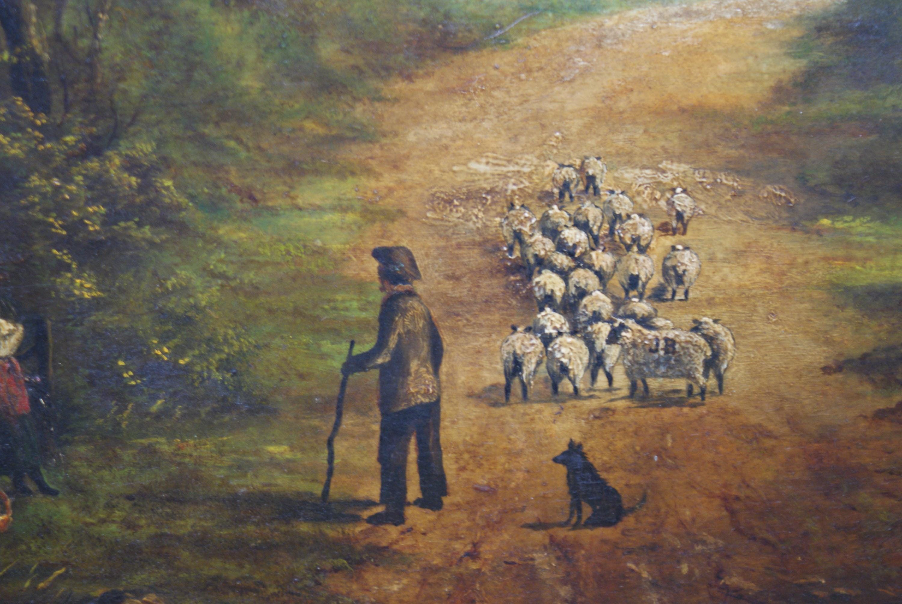 Stunning 19th century oil landscape painting, framed in the original plaster frame and depicting a farmer herding sheep on a country road while stopping to acknowledge somebody. The frame is in a good condition considering the age and with it being plaster, the painting is on board and in excellent condition. This is signed by the artists and dated 78, I have a second painting by the same artist dated 1879 under a separate listing.