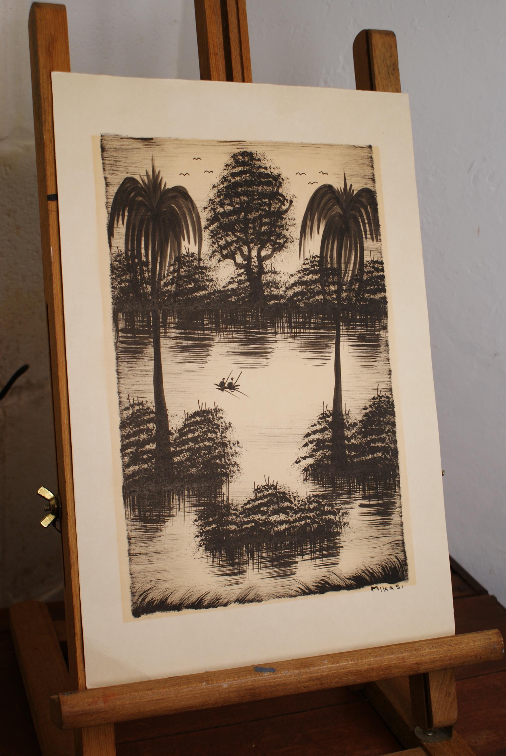 Stunning pen and ink artwork by artist Mikasi. Some research suggest this artwork is of African origin. A Lovely piece and a real conversation starter. At the time of listing (4/5/25) I have three of these available under separate listings.