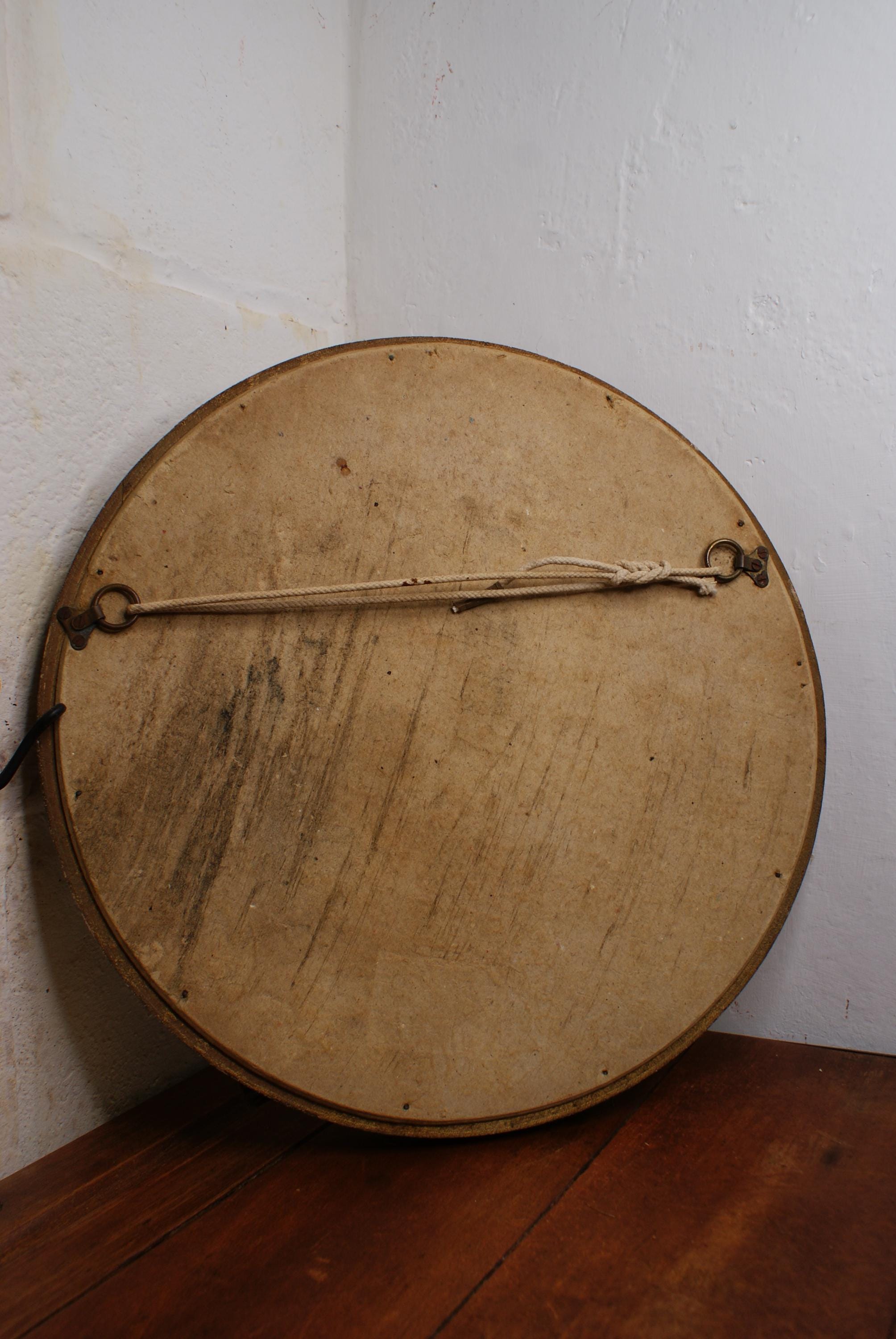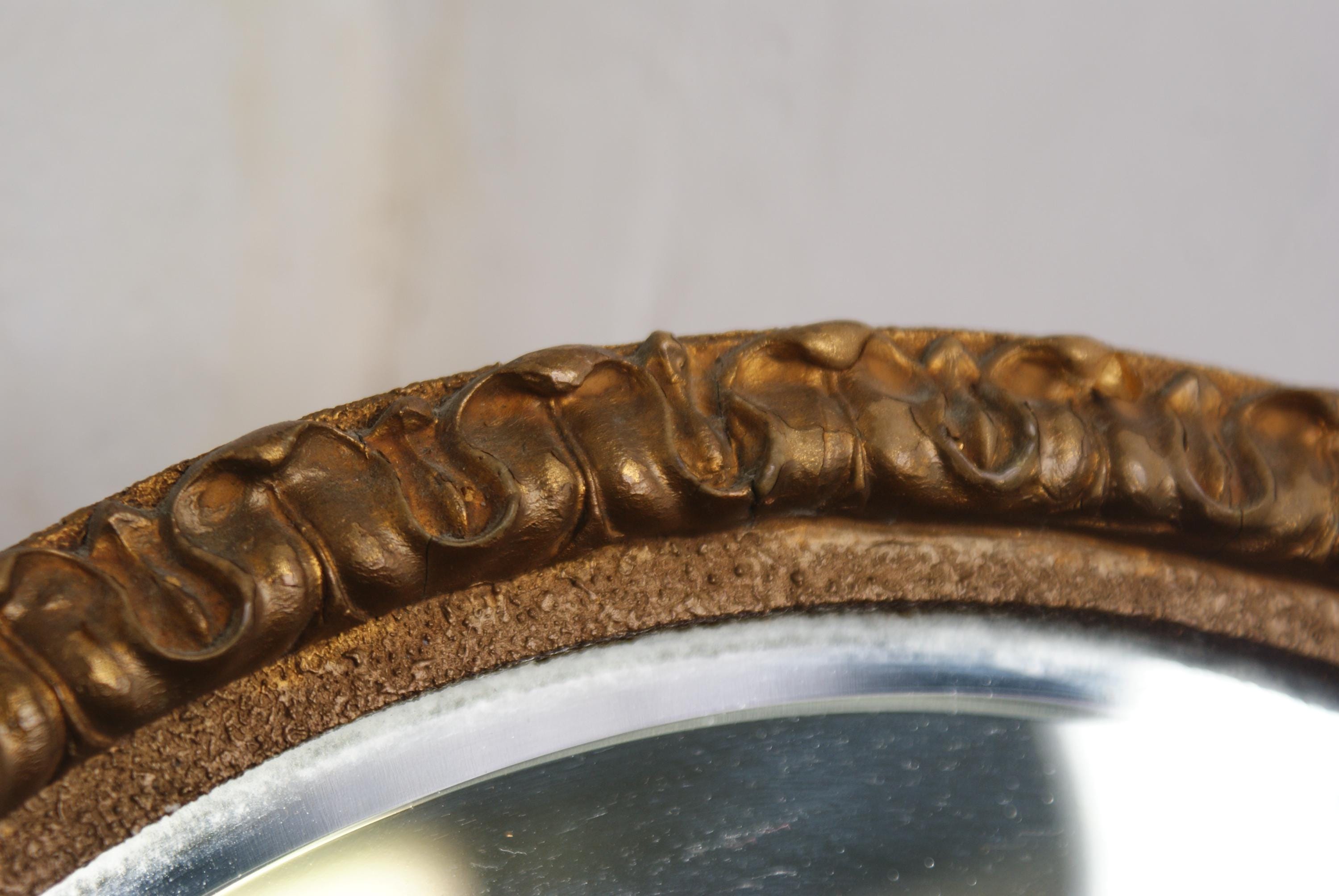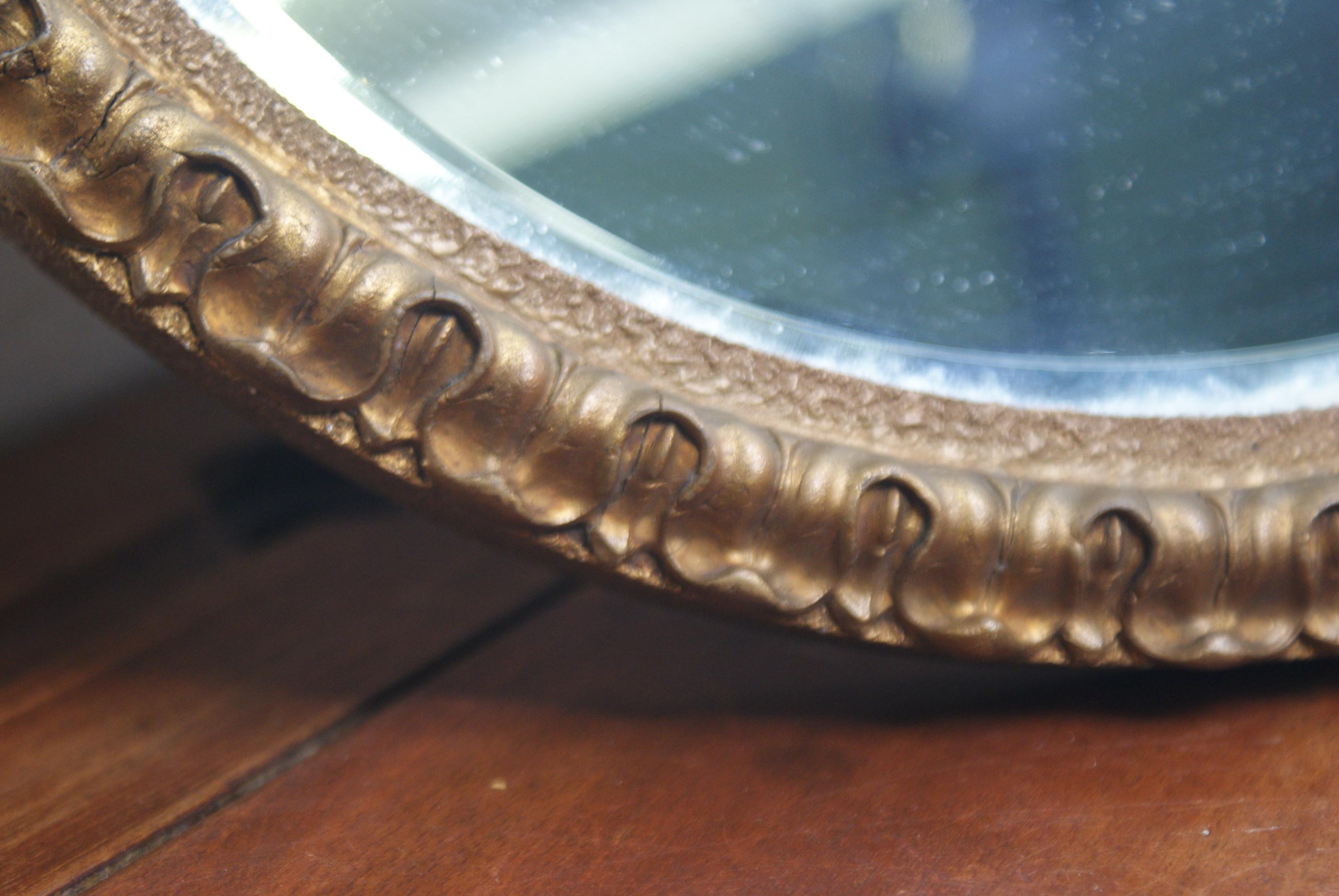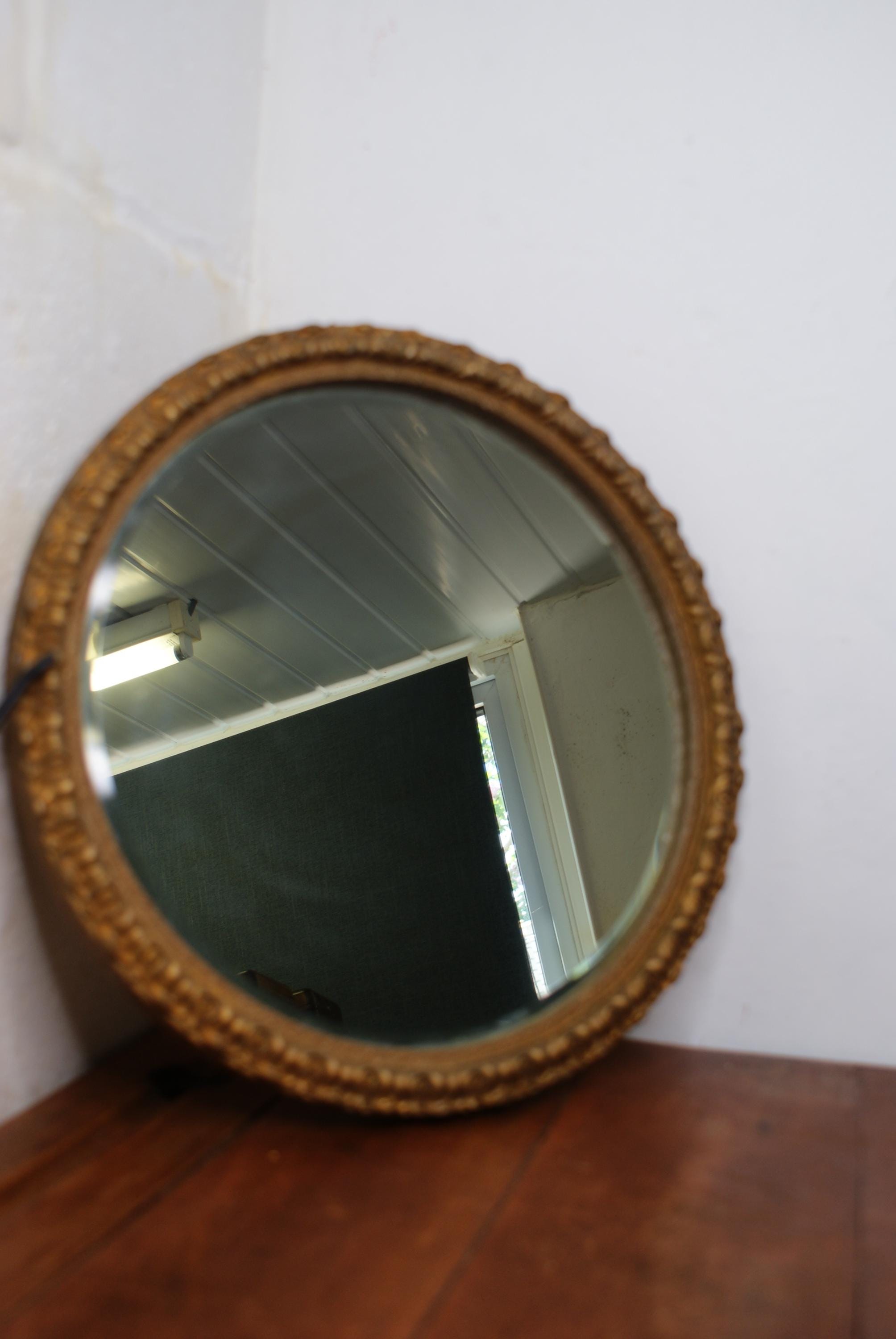 Antique Round Bevelled Mirror In a Guilt Wood and Plaster Frame