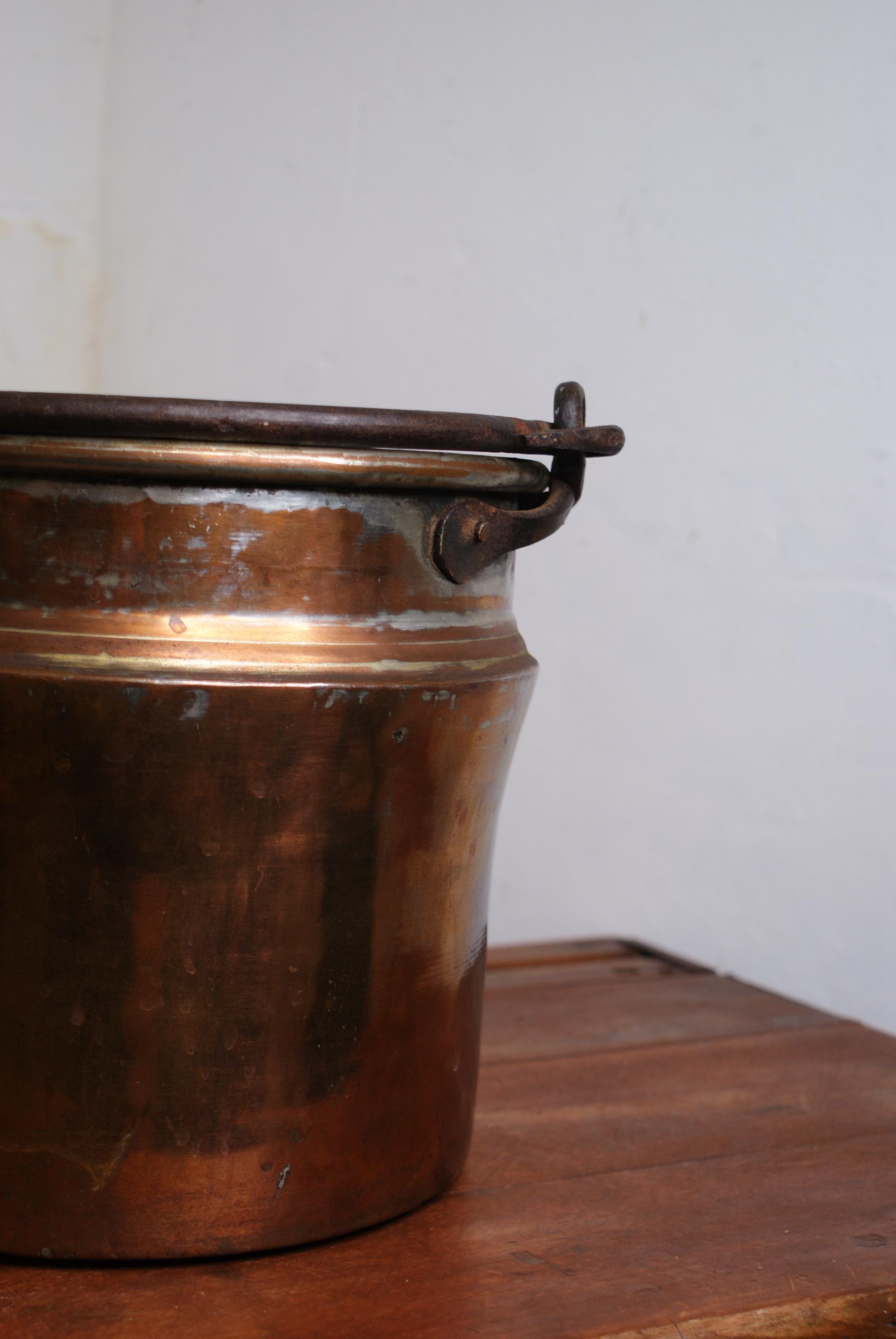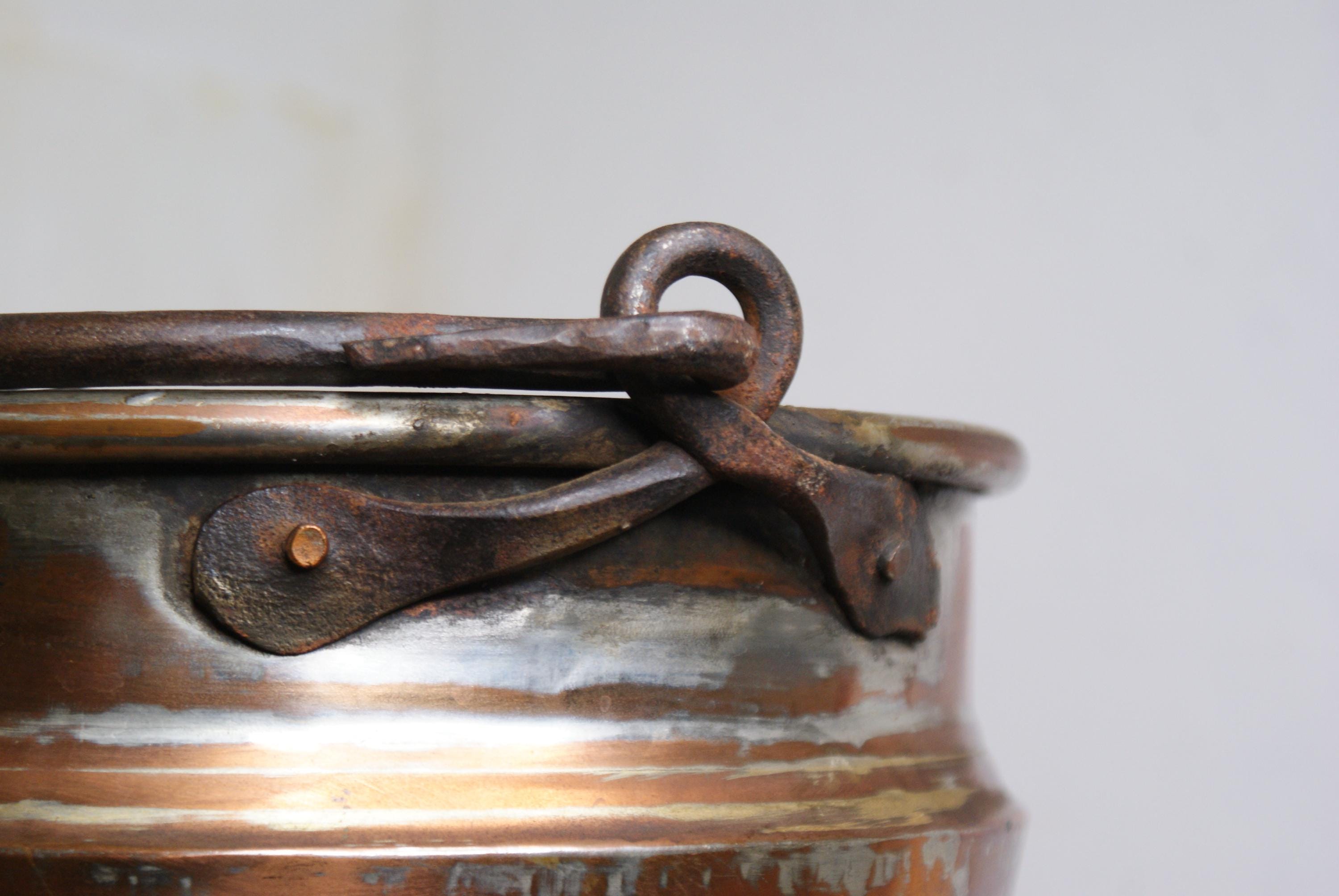 19th Century Turkish Copper Cooking Pot With Wrought Iron Handle