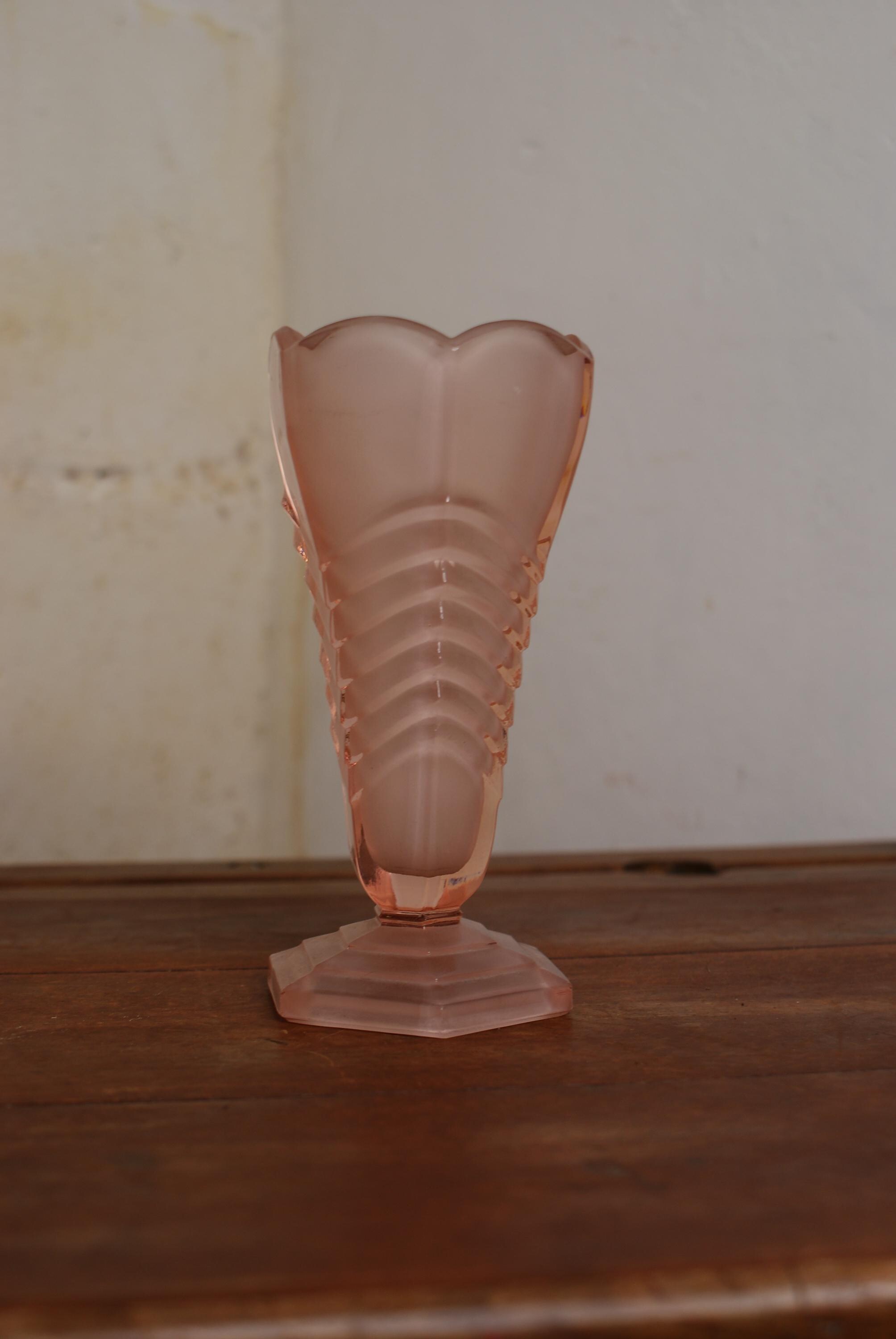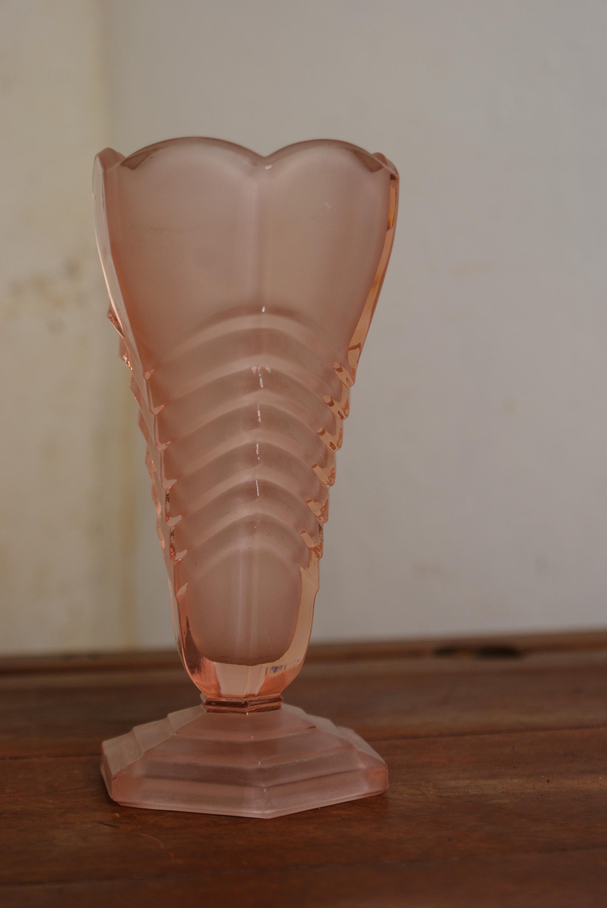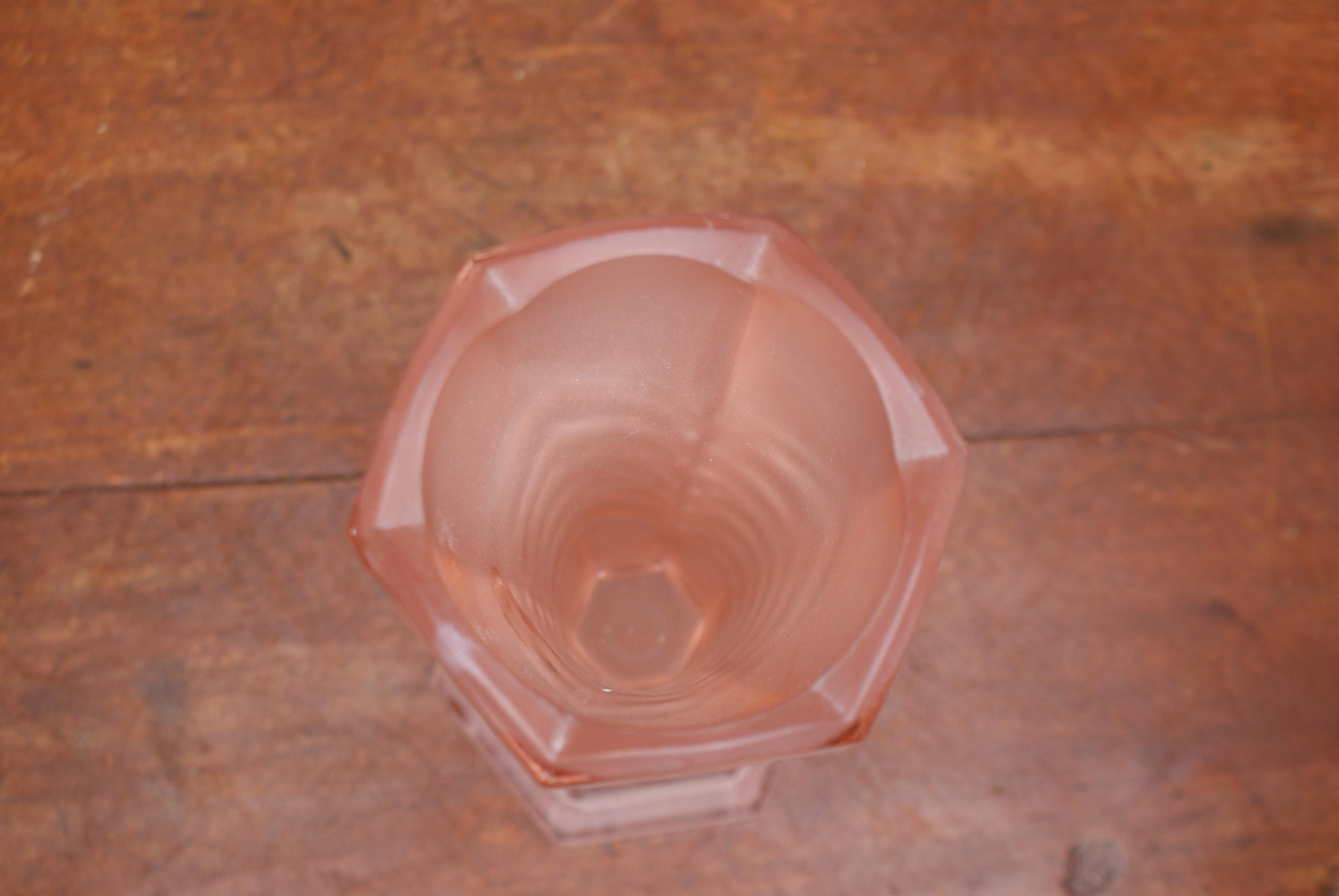 Lovely art deco pale pink frosted glass vase, in excellent condition and a really lovely elegant design.