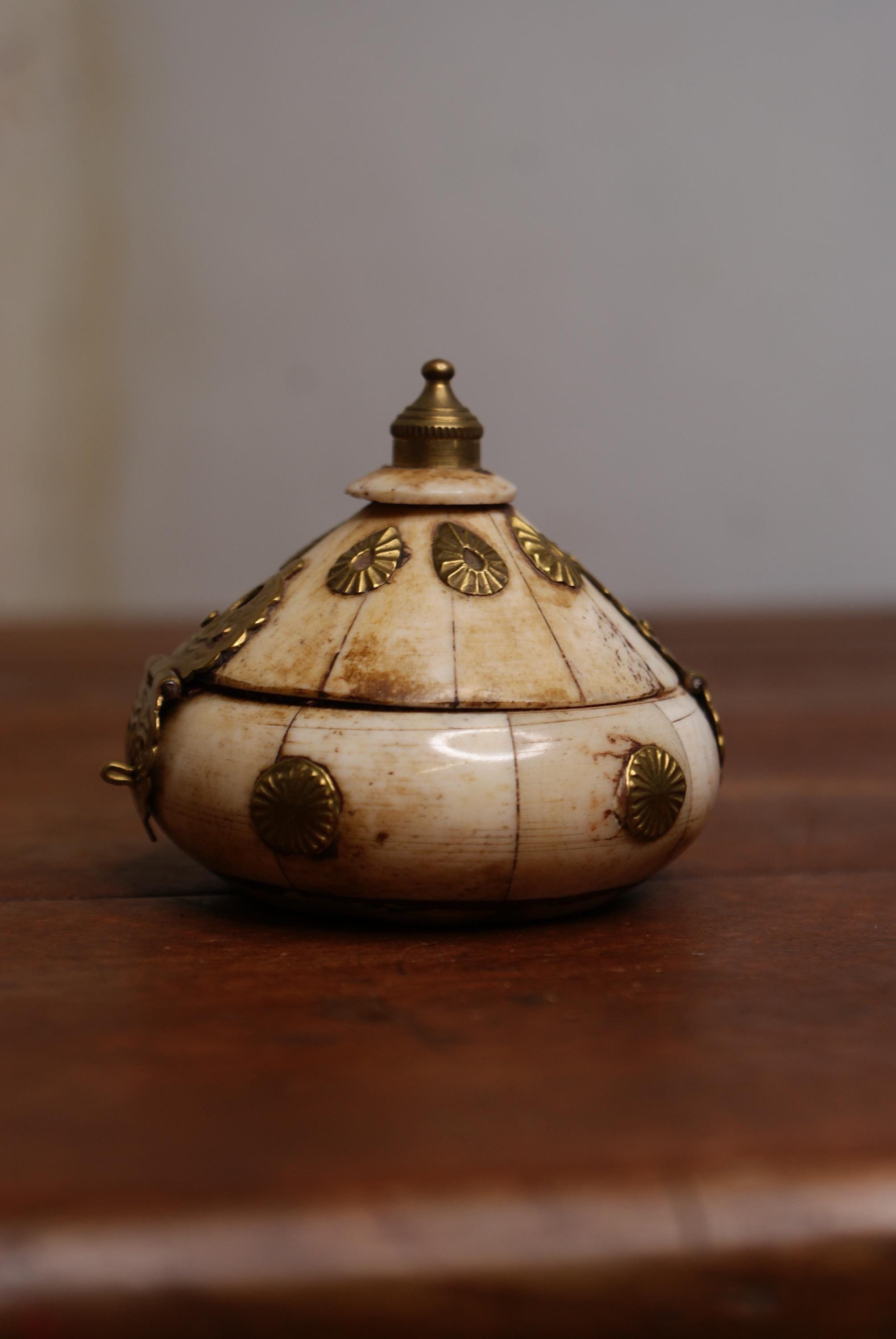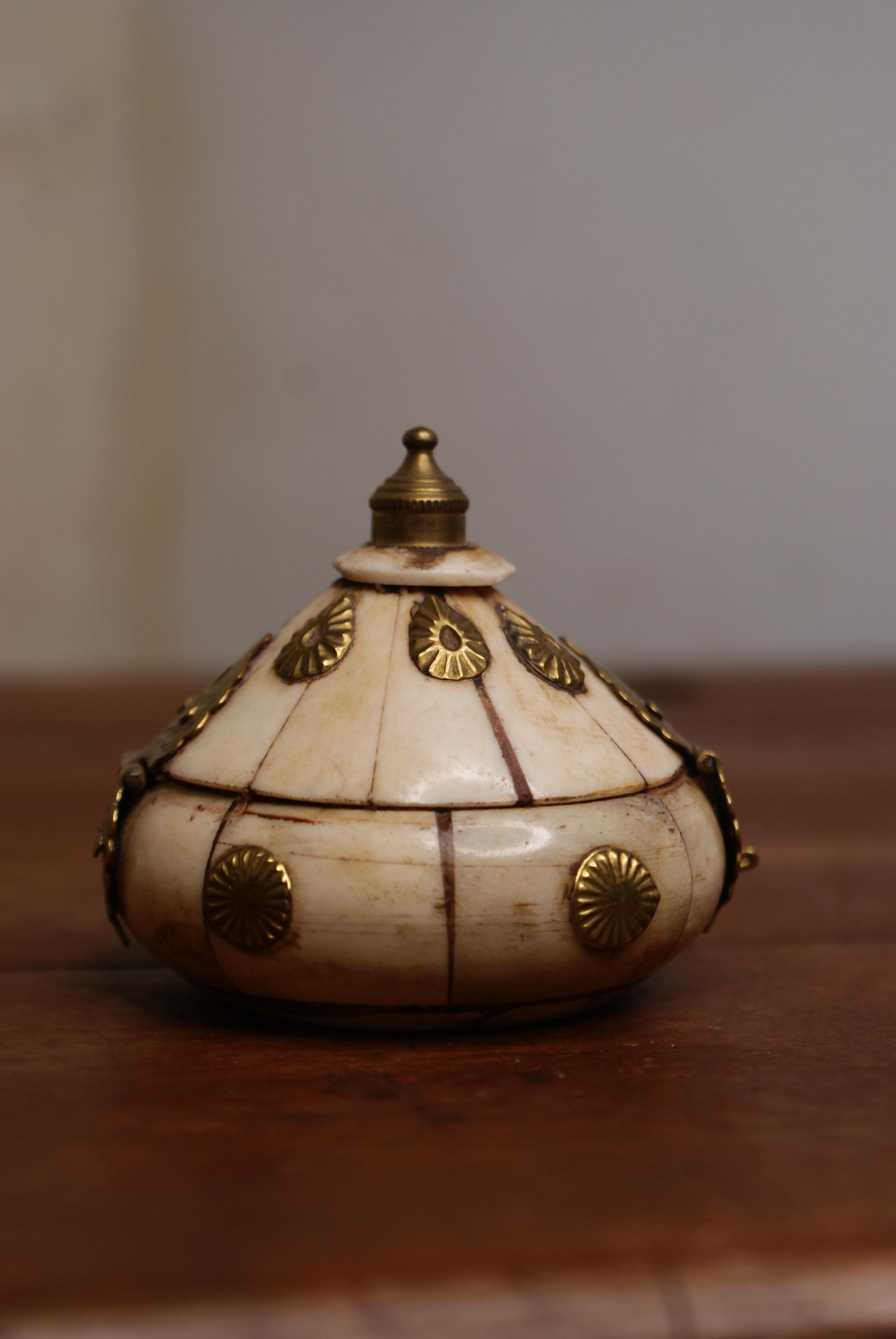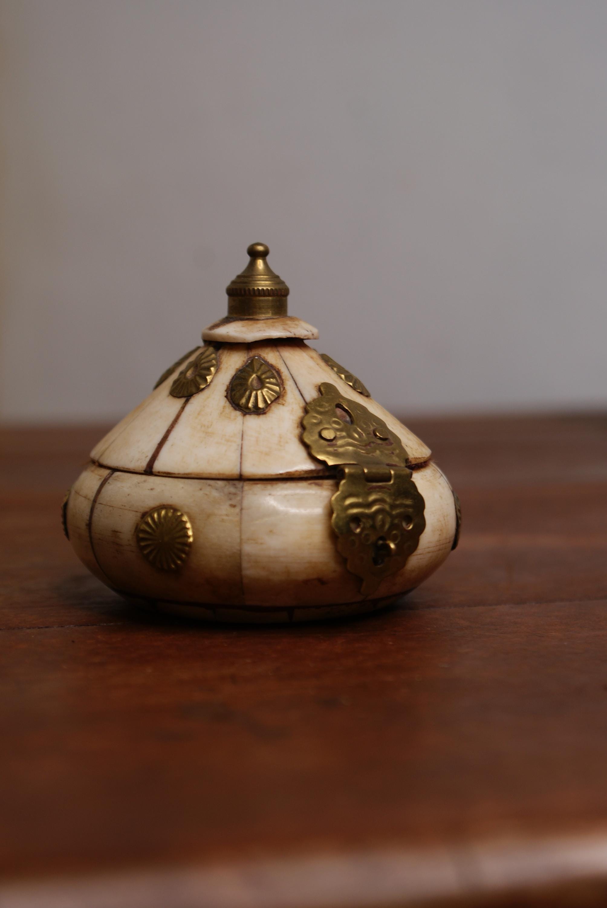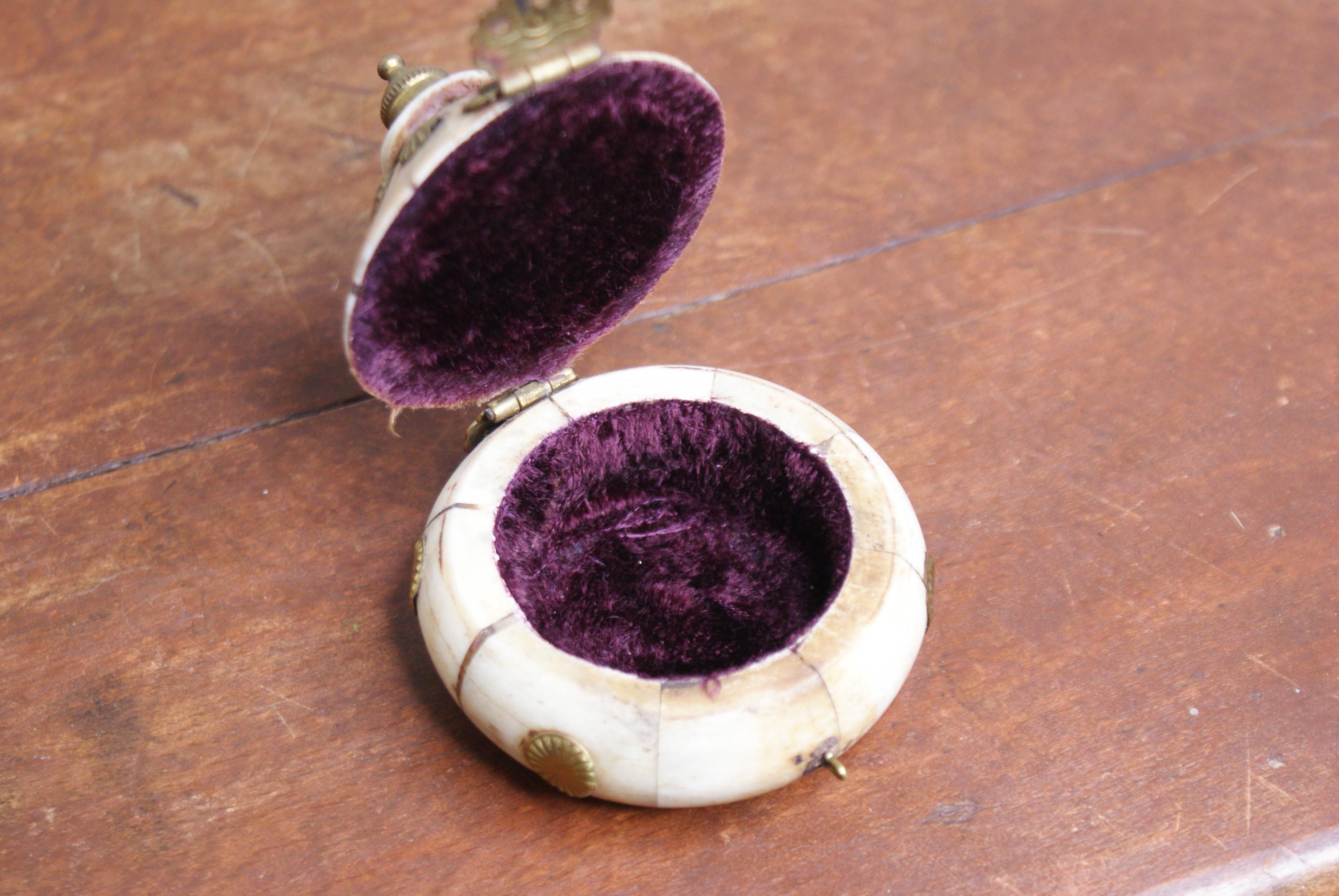 Stunning camel bone trinket or pill box, lined with lovely deep purple velvet inside the is a stunning decorative and functional piece.