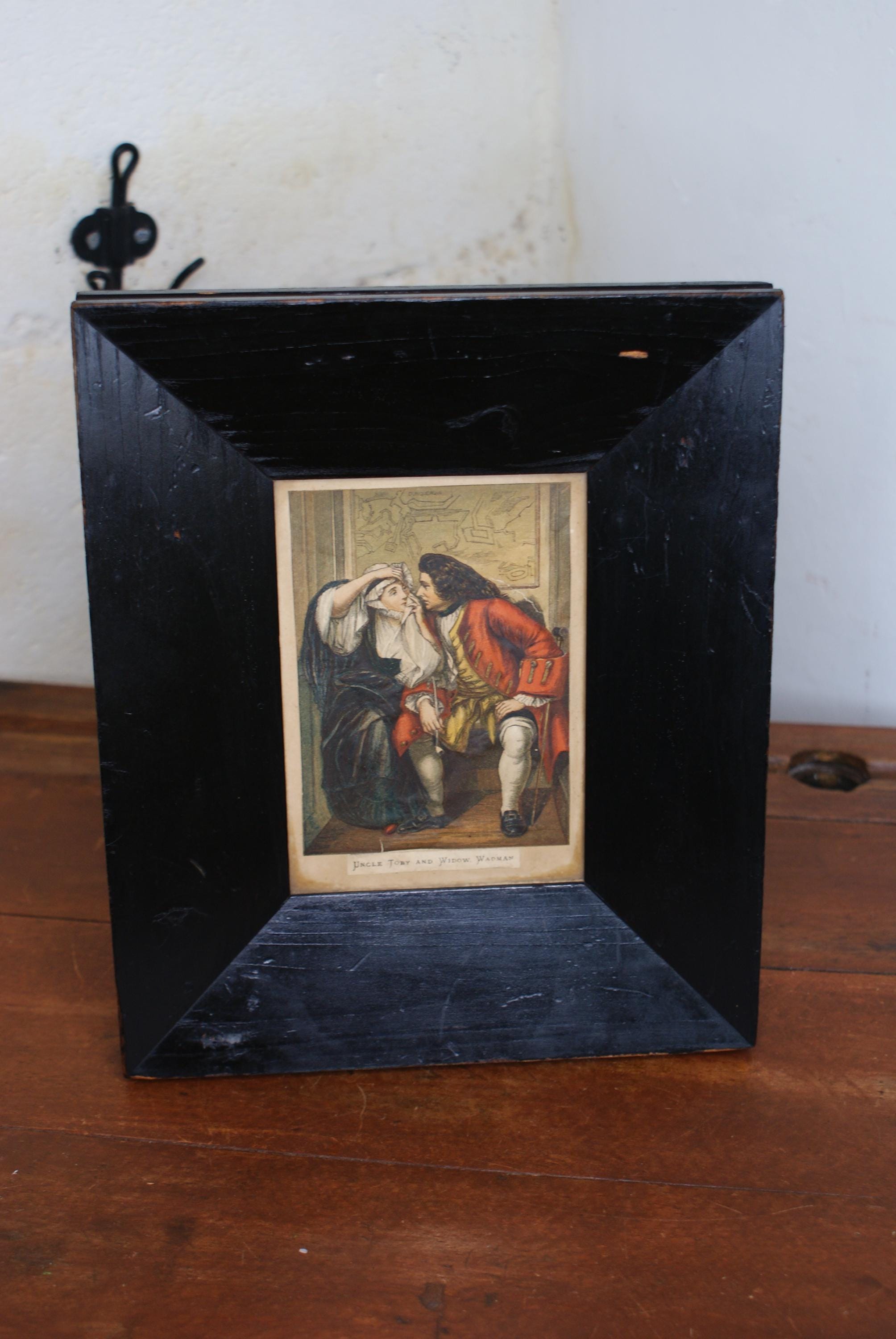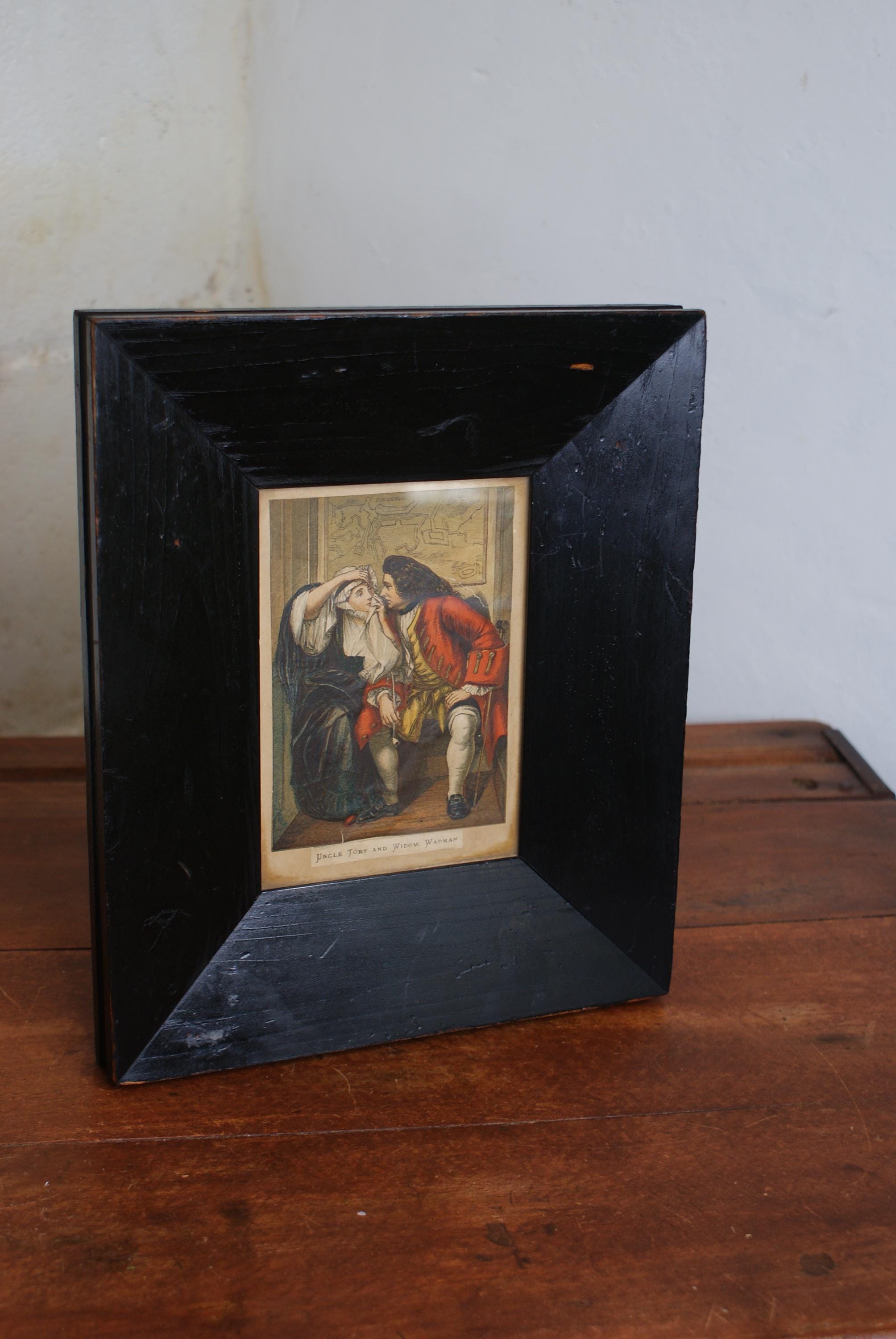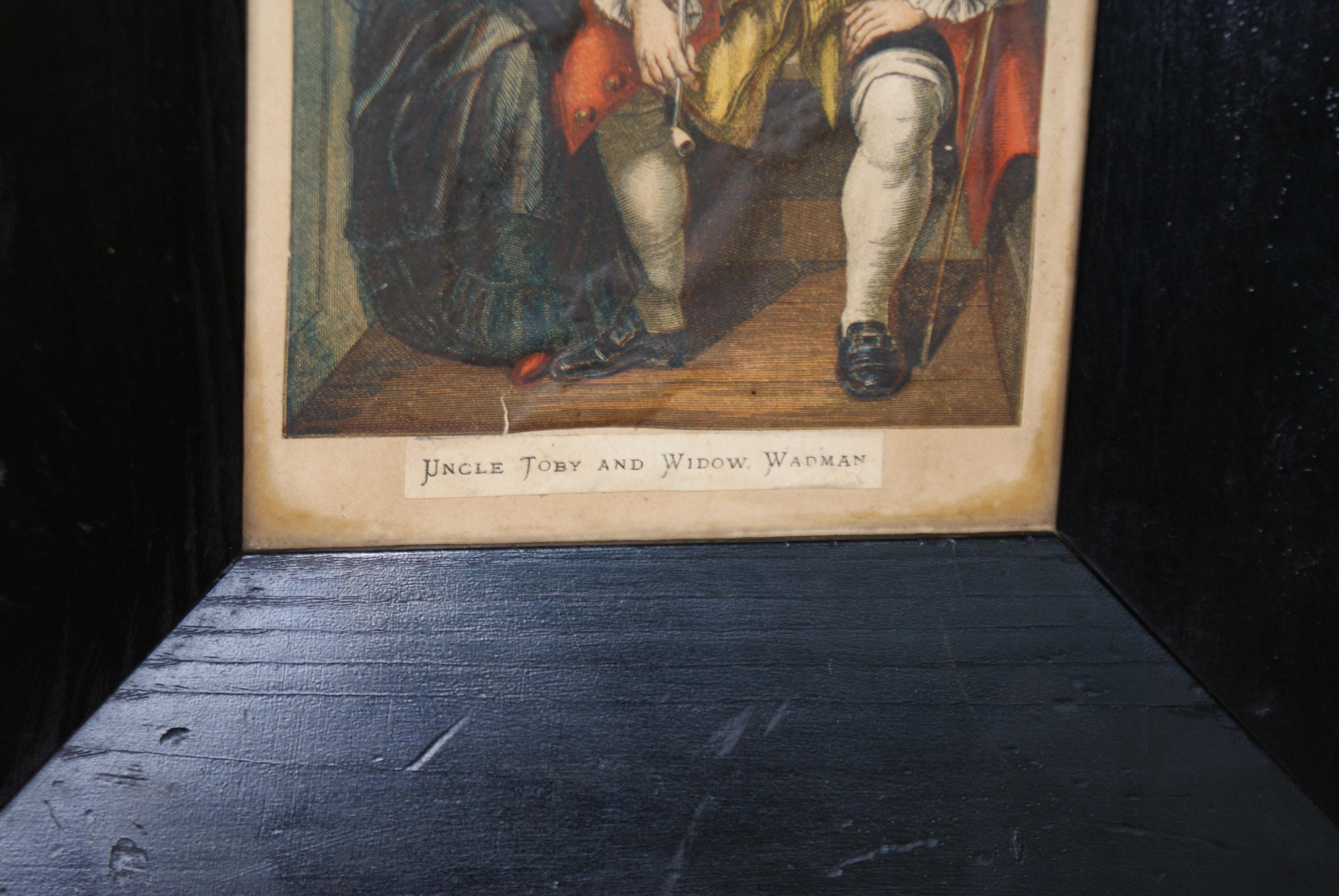 Lovely small engraving of a scene from the 1759 novel Tristram Shandy by Laurence Sterne. In excellent condition for the age and framed in an ebonised frame behind glass.