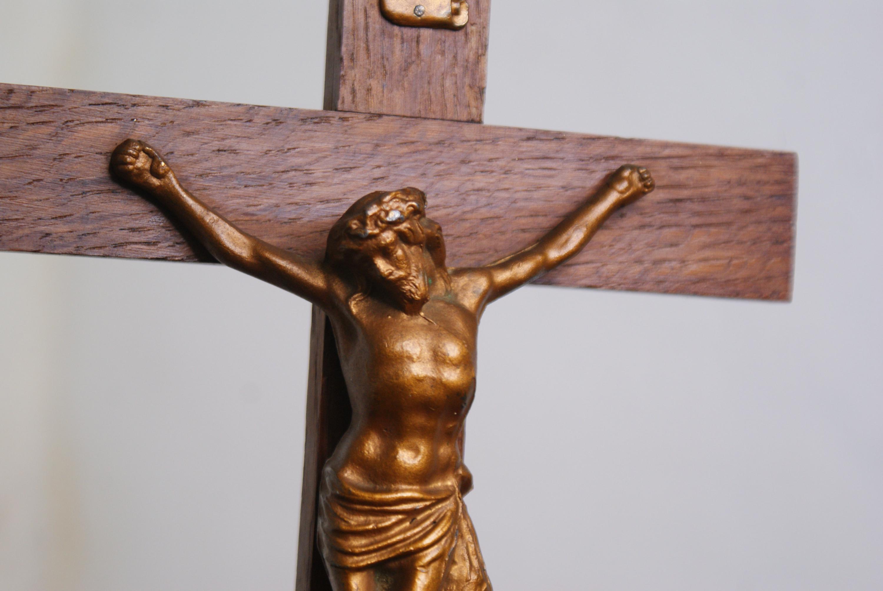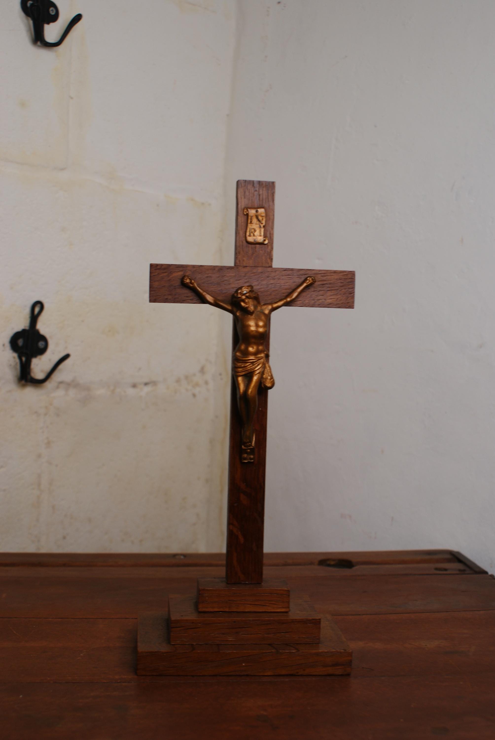 Lovely mid century alter table crucifix, in excellent condition with a lovely stepped base this would make a fantastic piece for gothic style home décor.