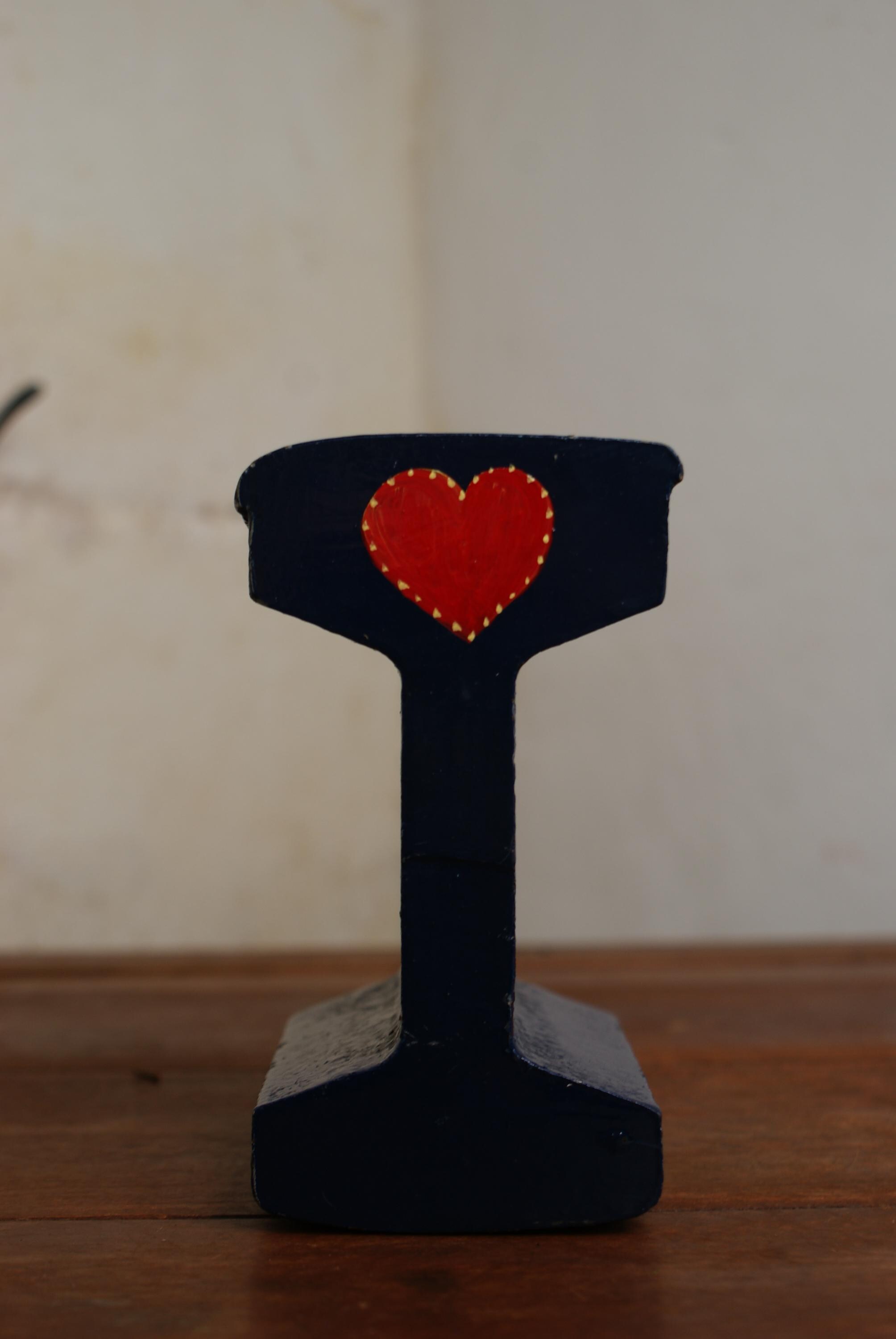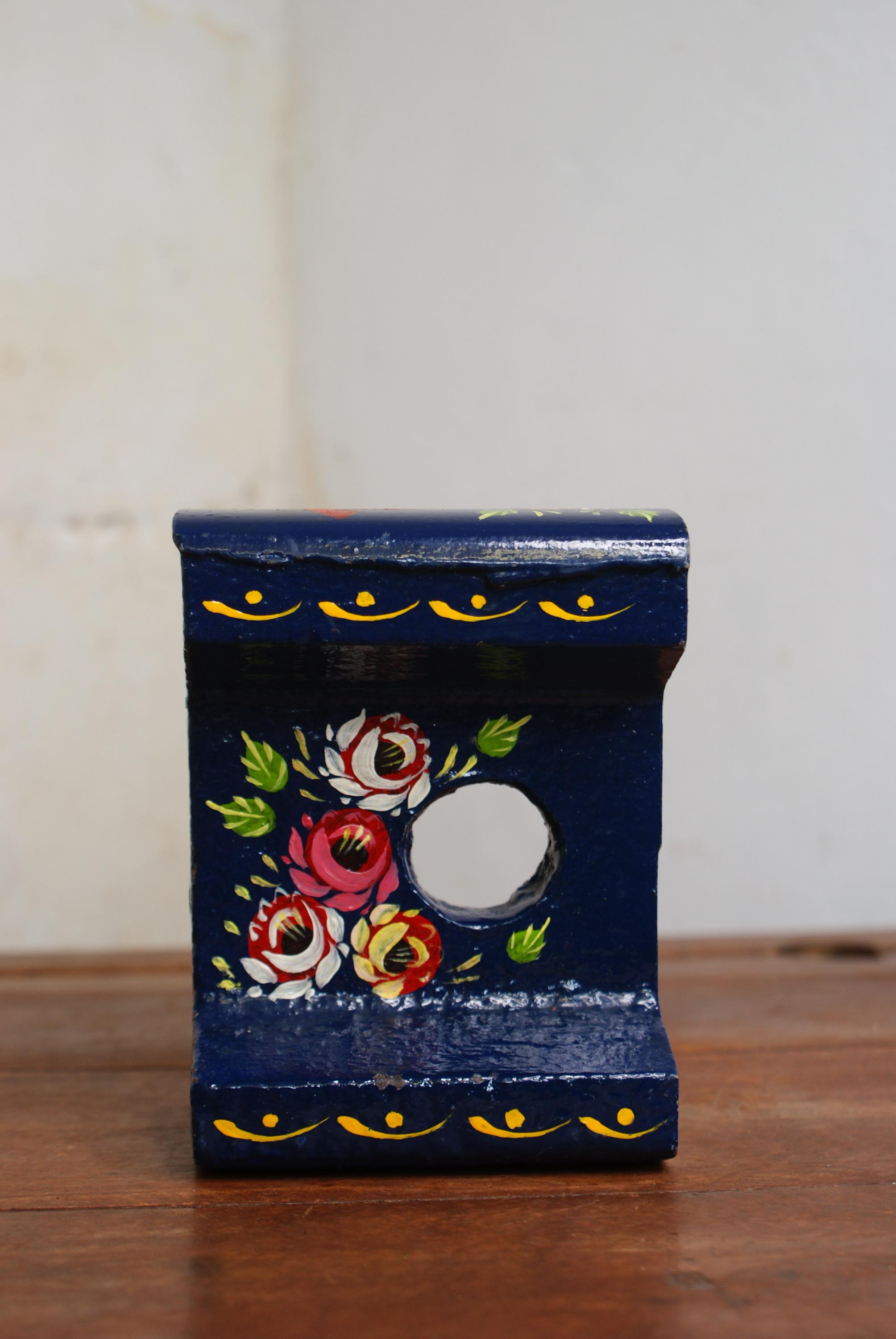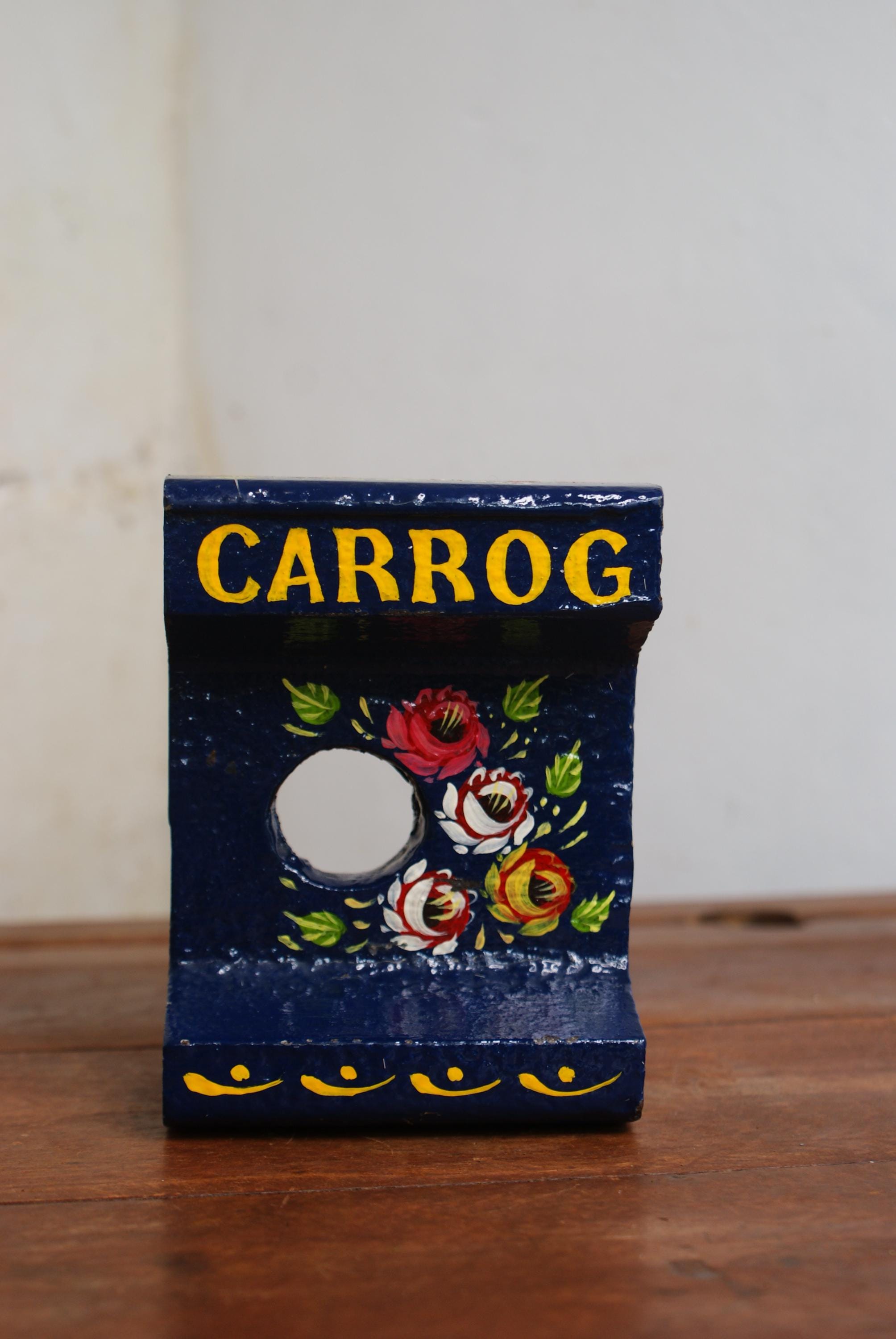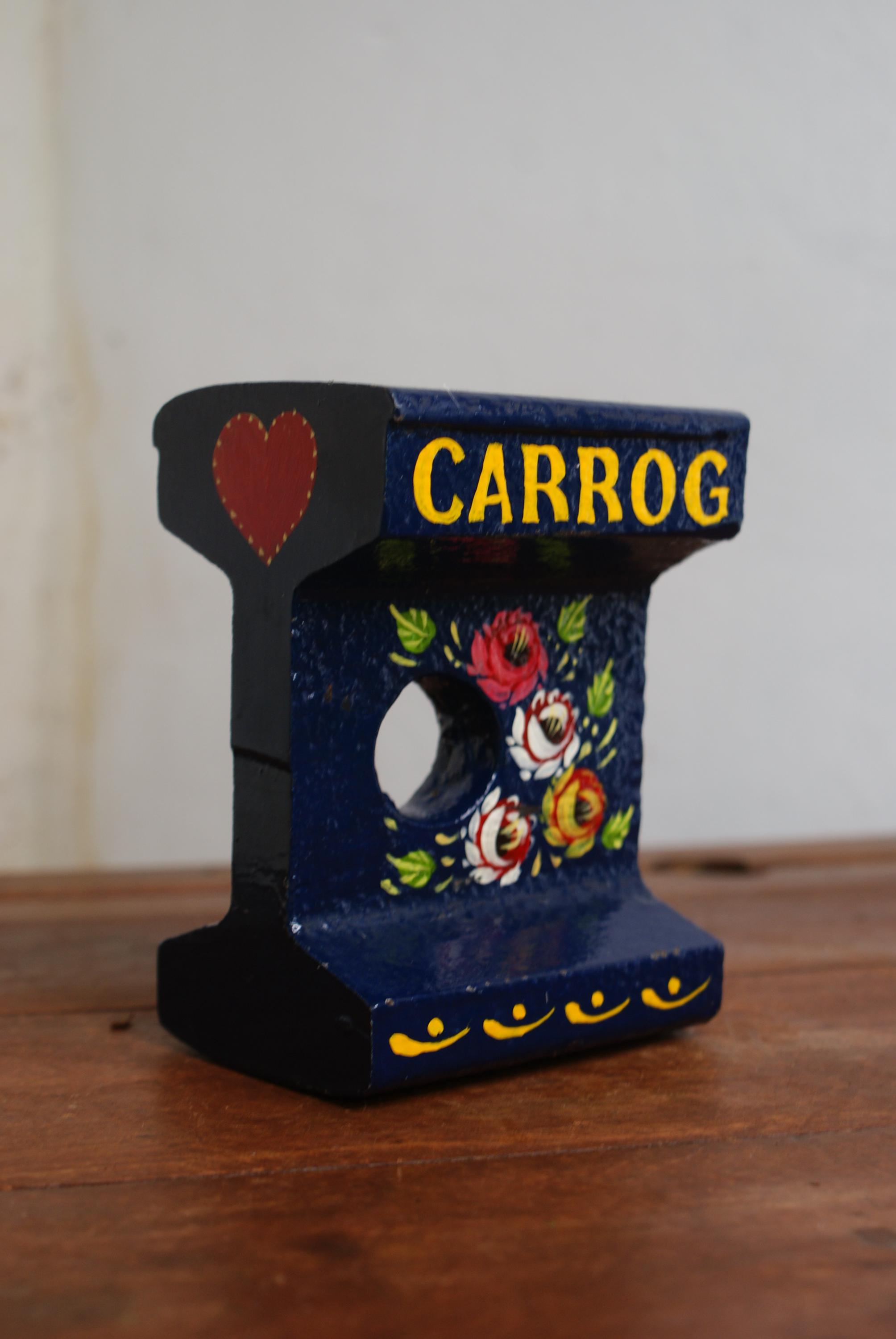 Lovely piece of railway track decorated in a barge art style. This originates from Carrog a village in north Wales. A charming piece and ideal as a decorative piece or at 3.9kg this would make an ideal door stop.