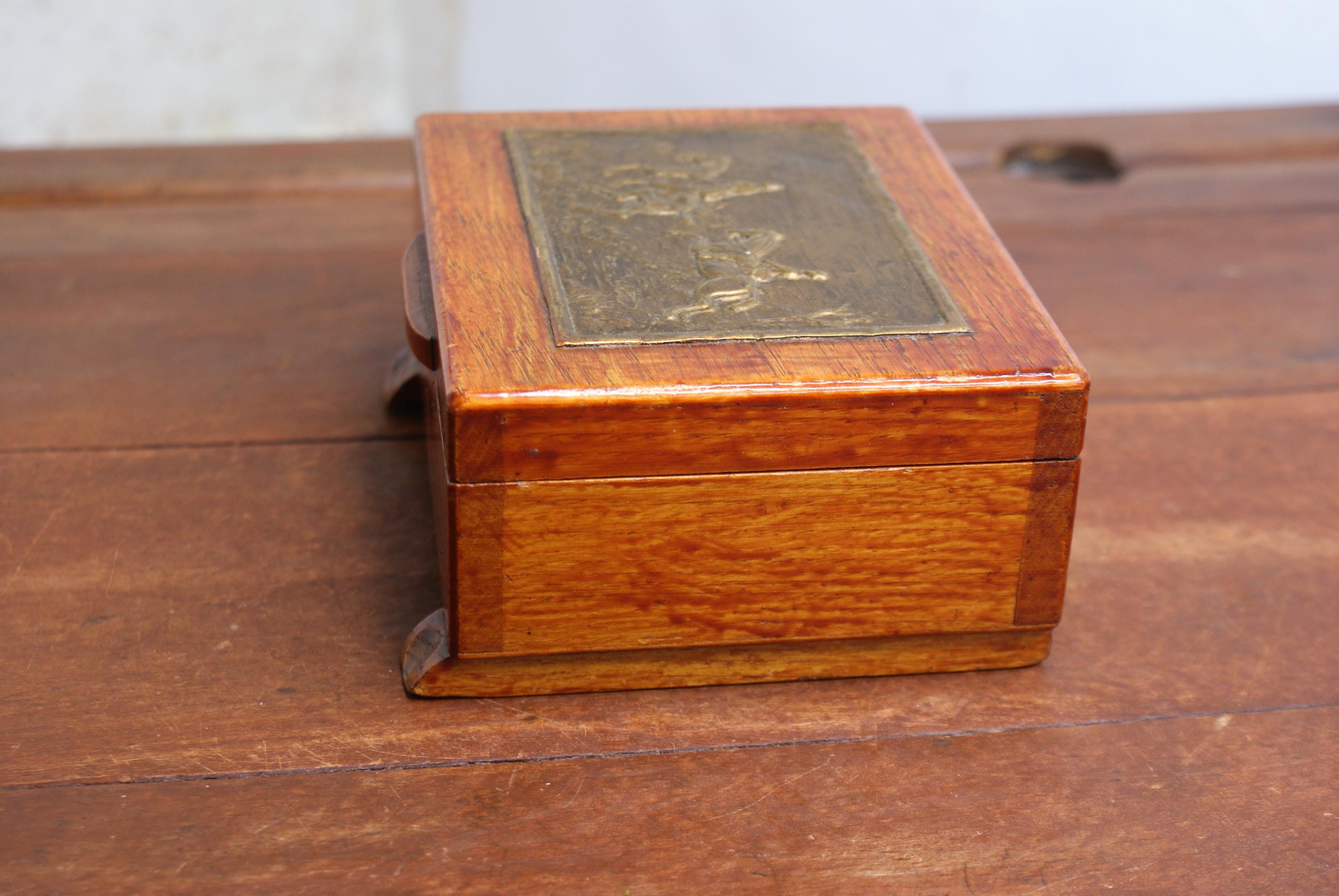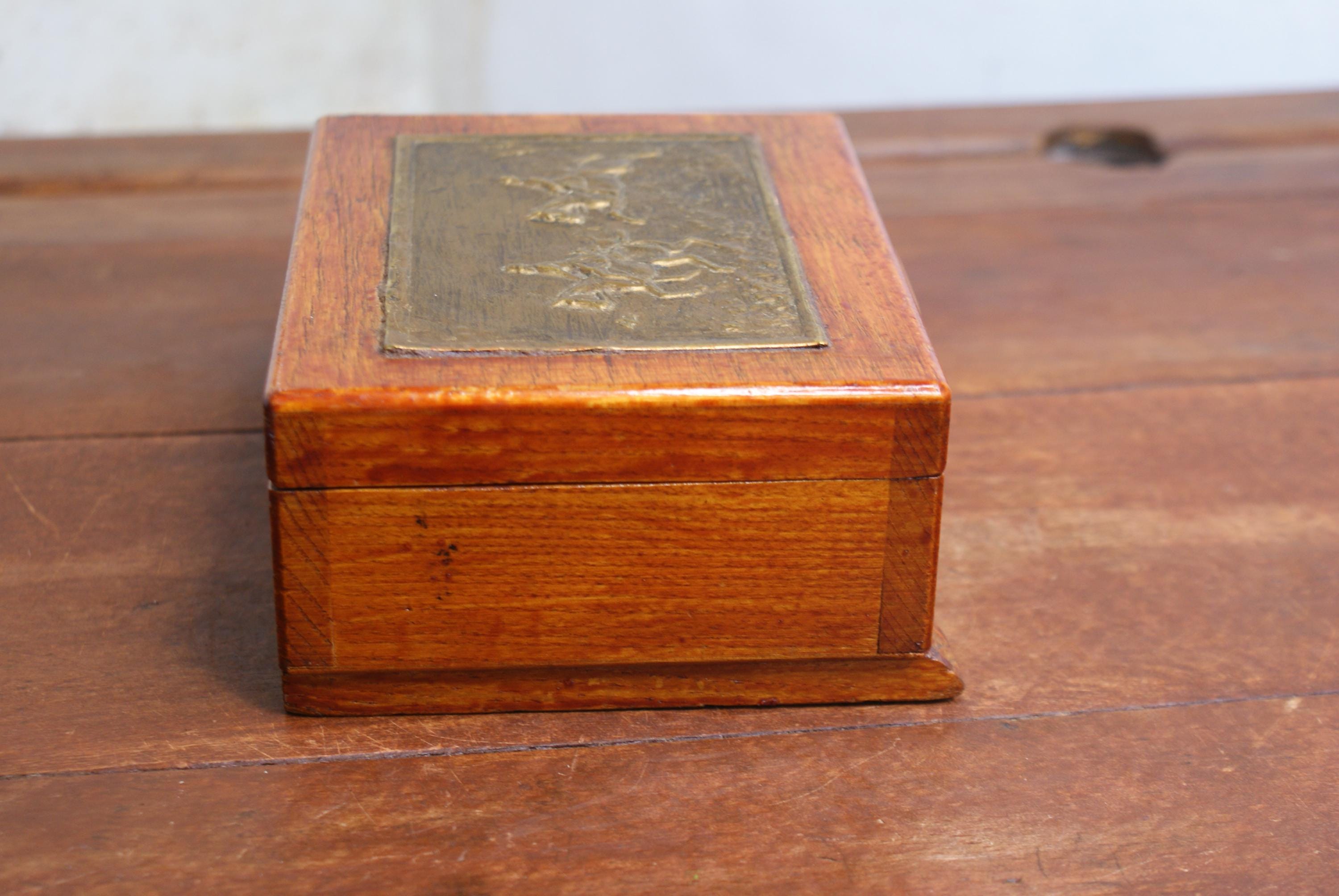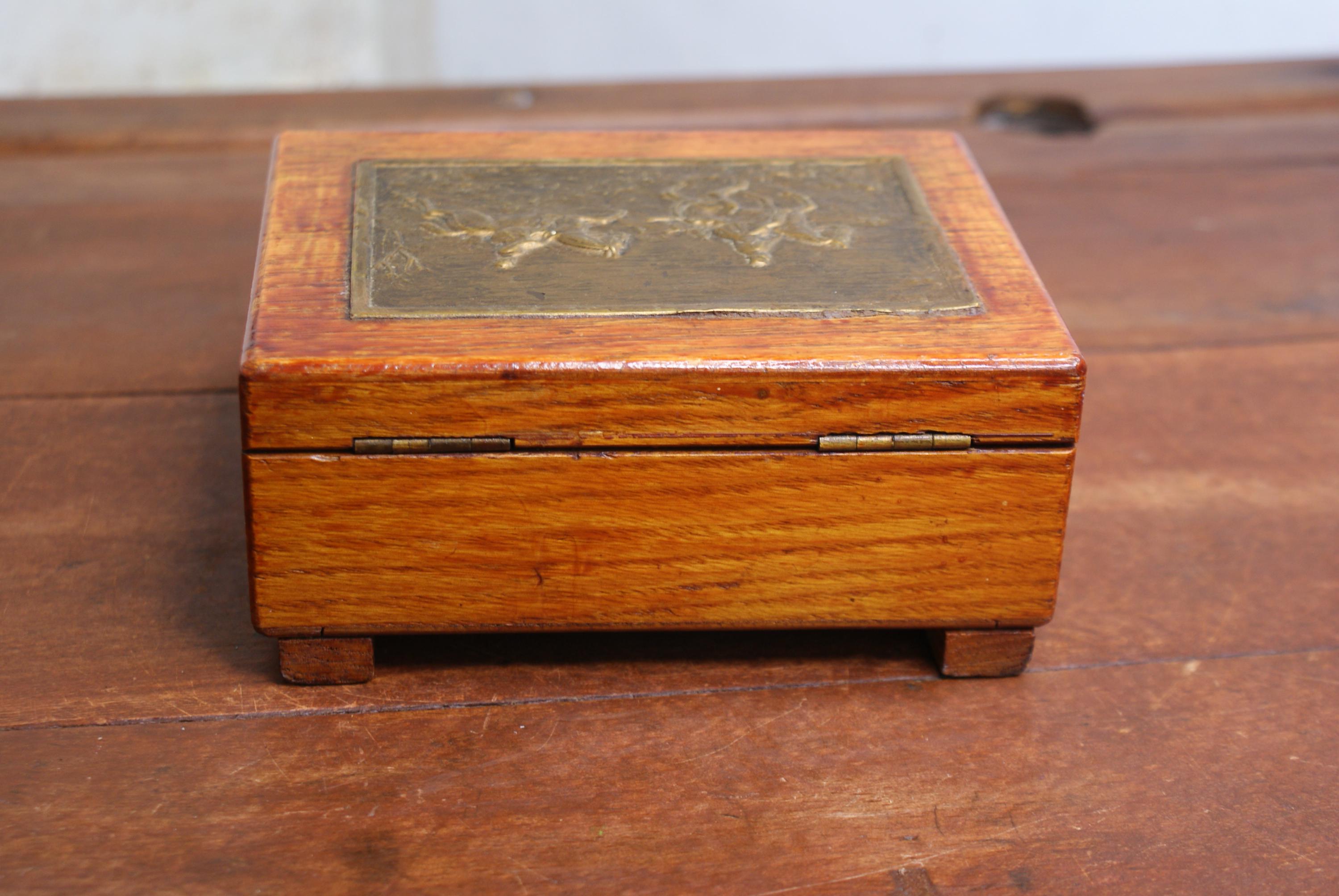 Lovely vintage Italian tabaco box dating to the mid 20th century, a nice piece in excellent condition with a scenic brass decorative element on the lid. This would make and ideal trinket box however it does smell of tabaco from previous use.