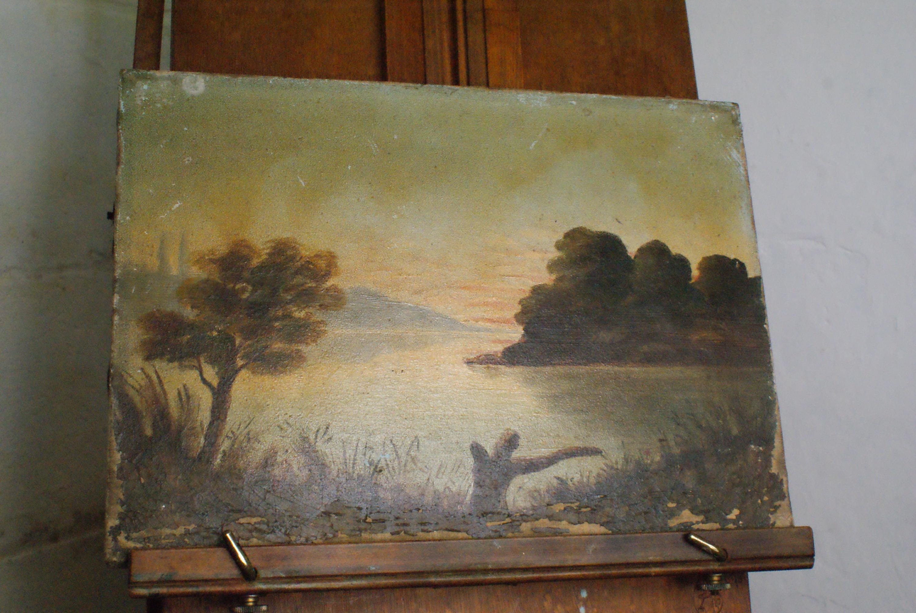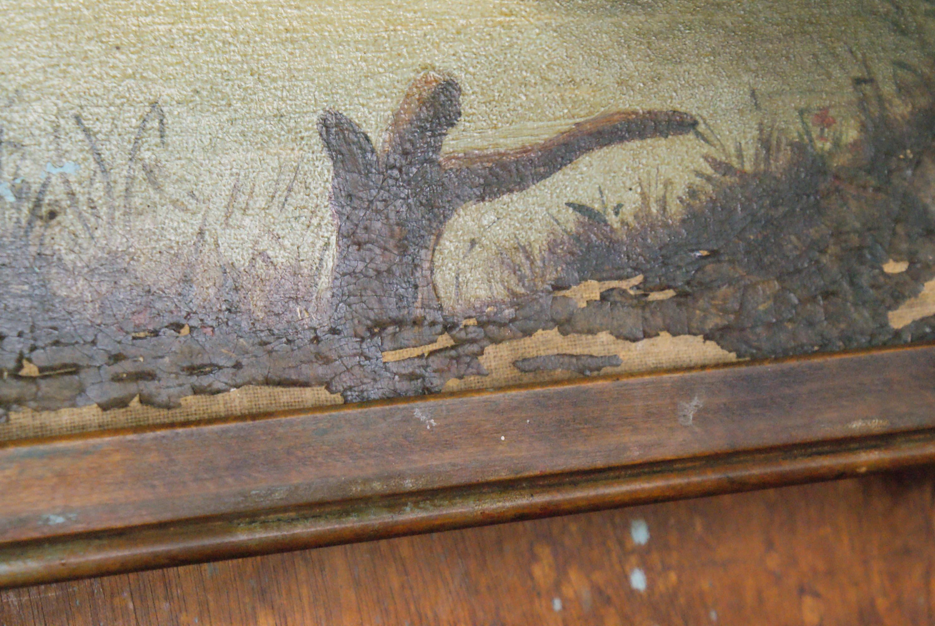 Stunning oil on canvas, this has a fantastic look with a nice crackling and some flaking to the paint, likely mid to late 19th century.