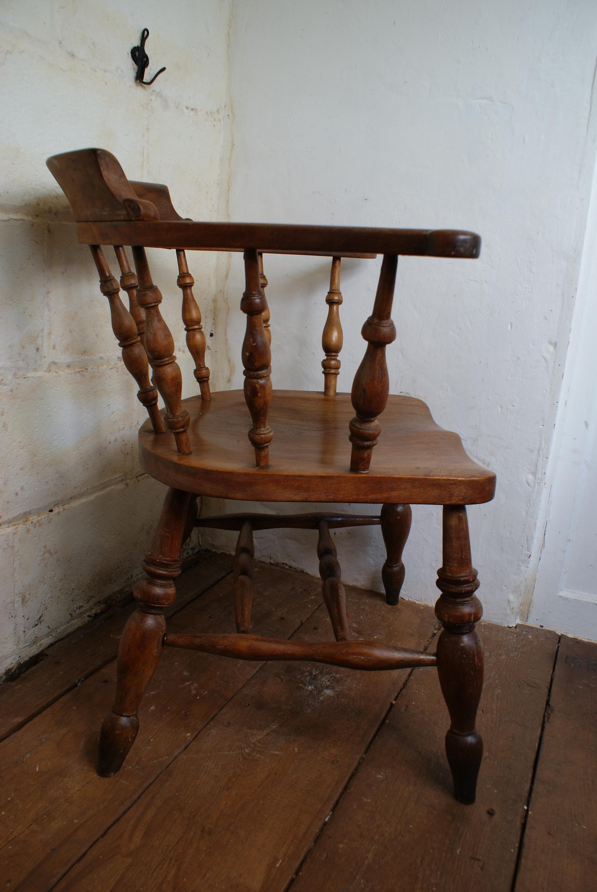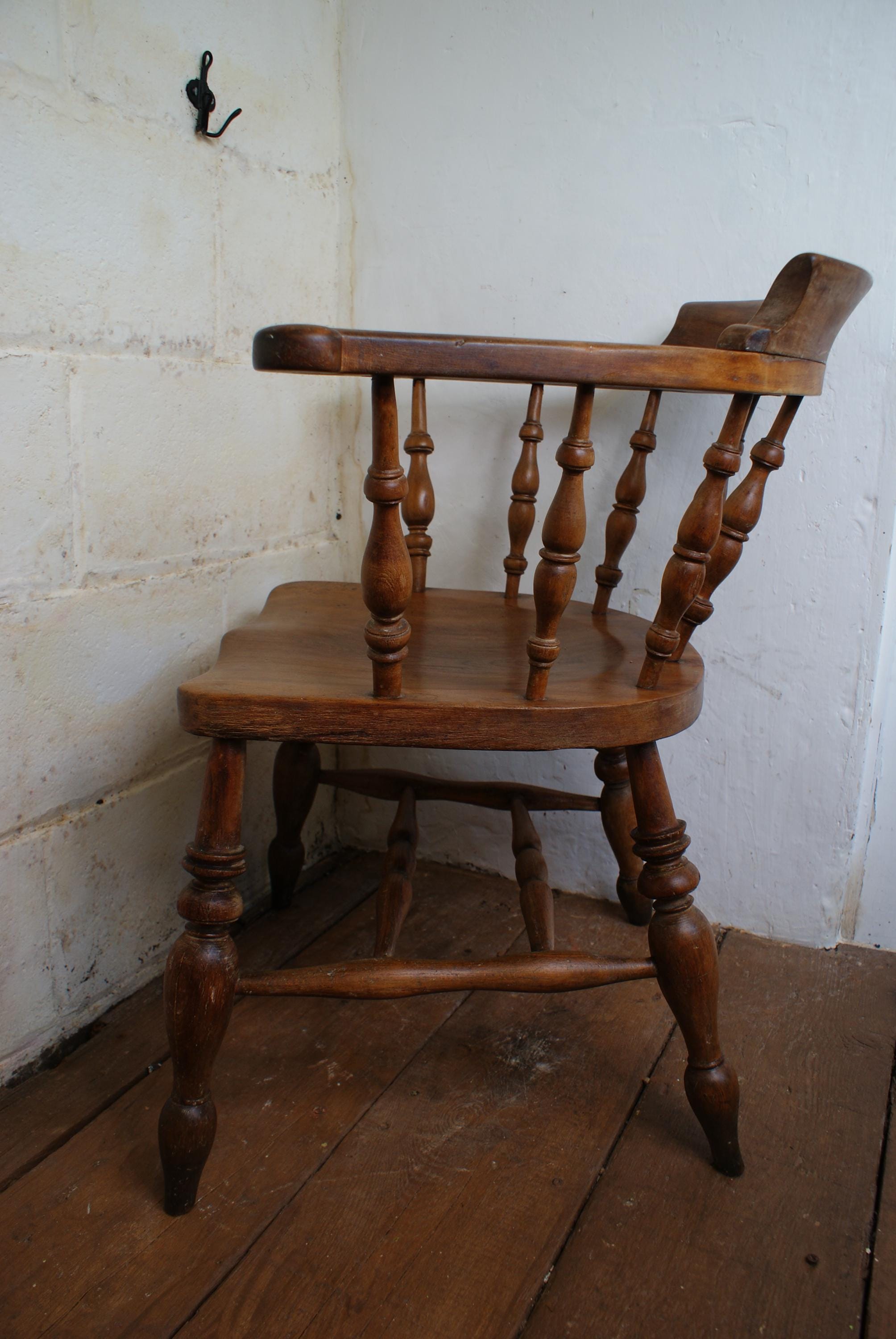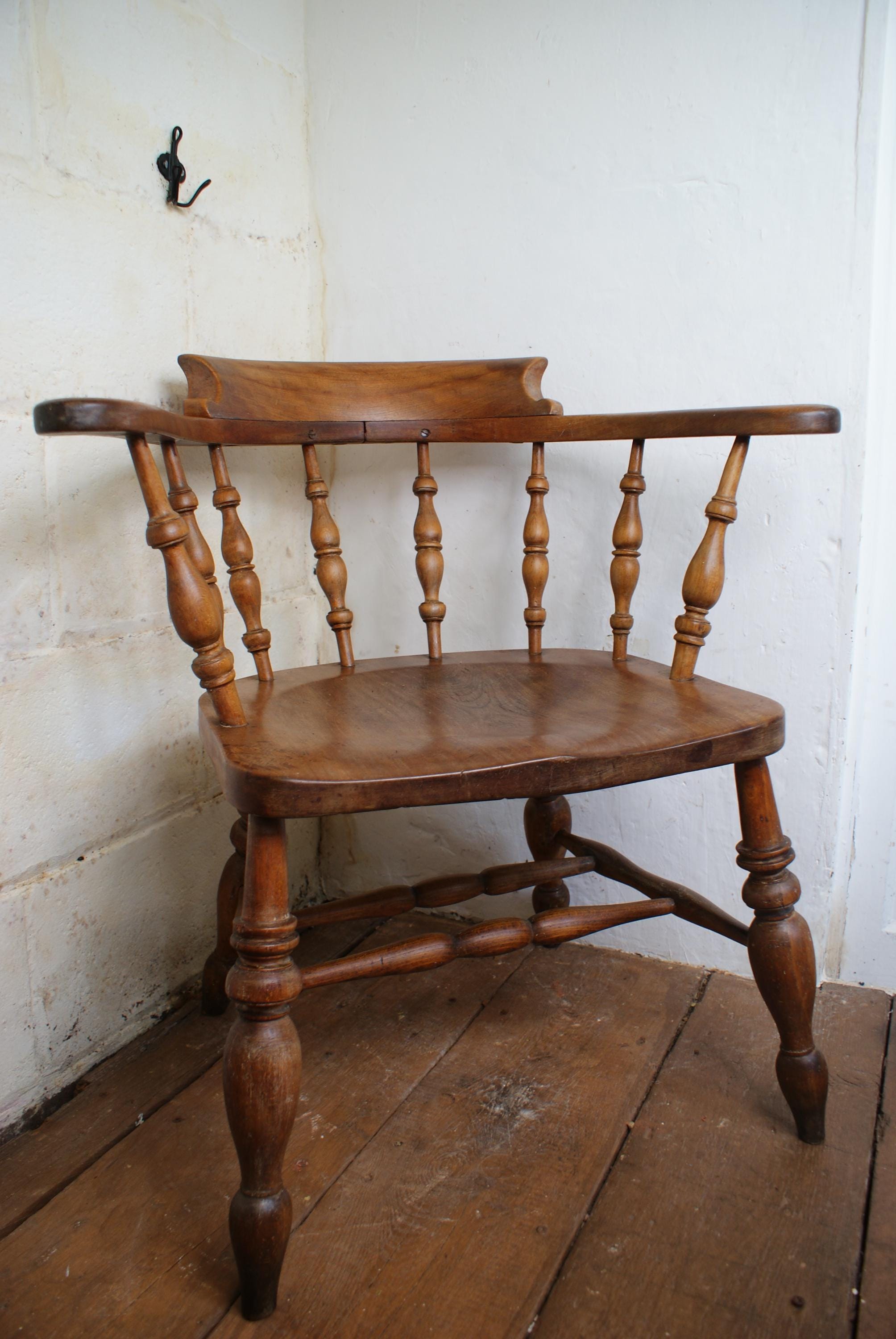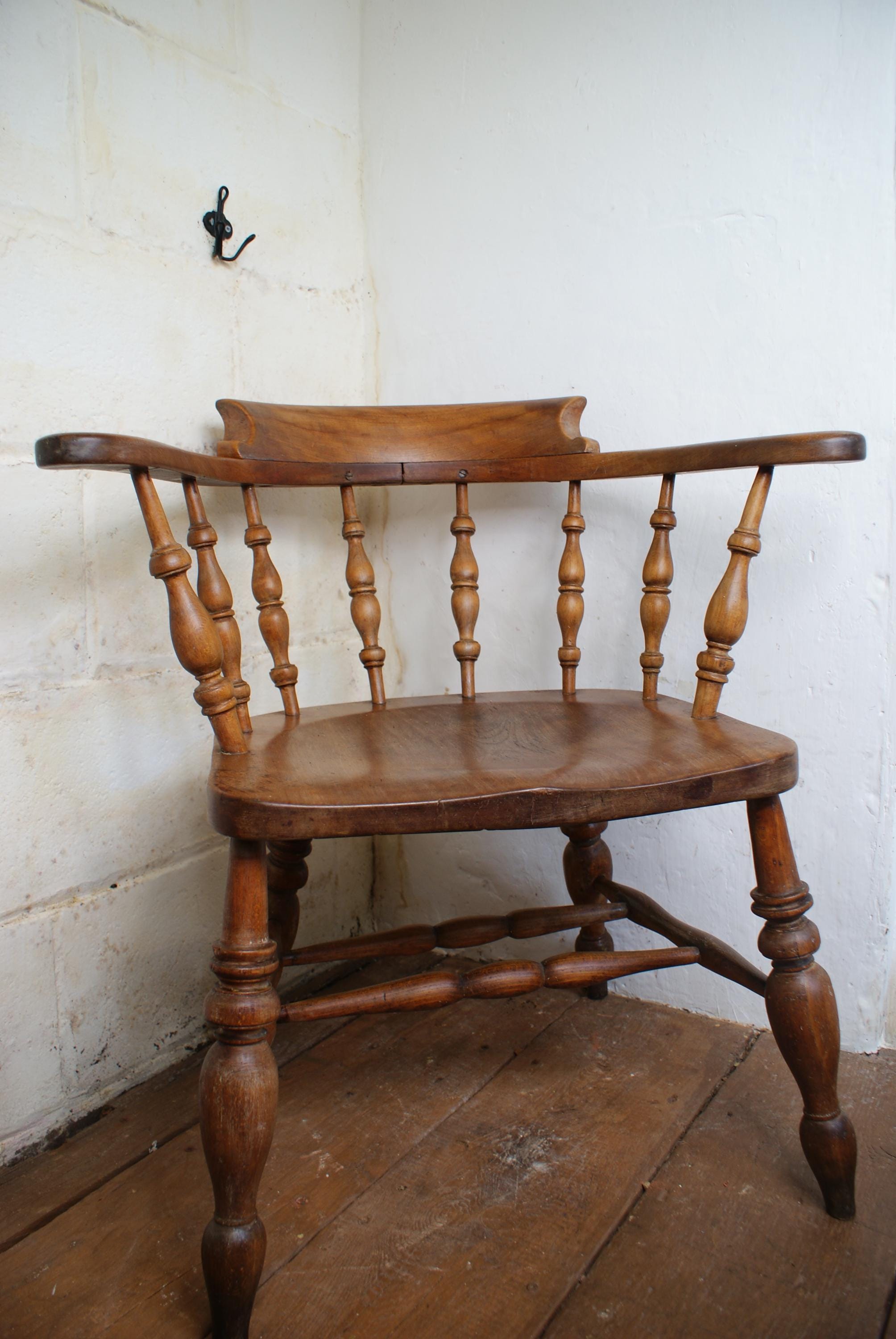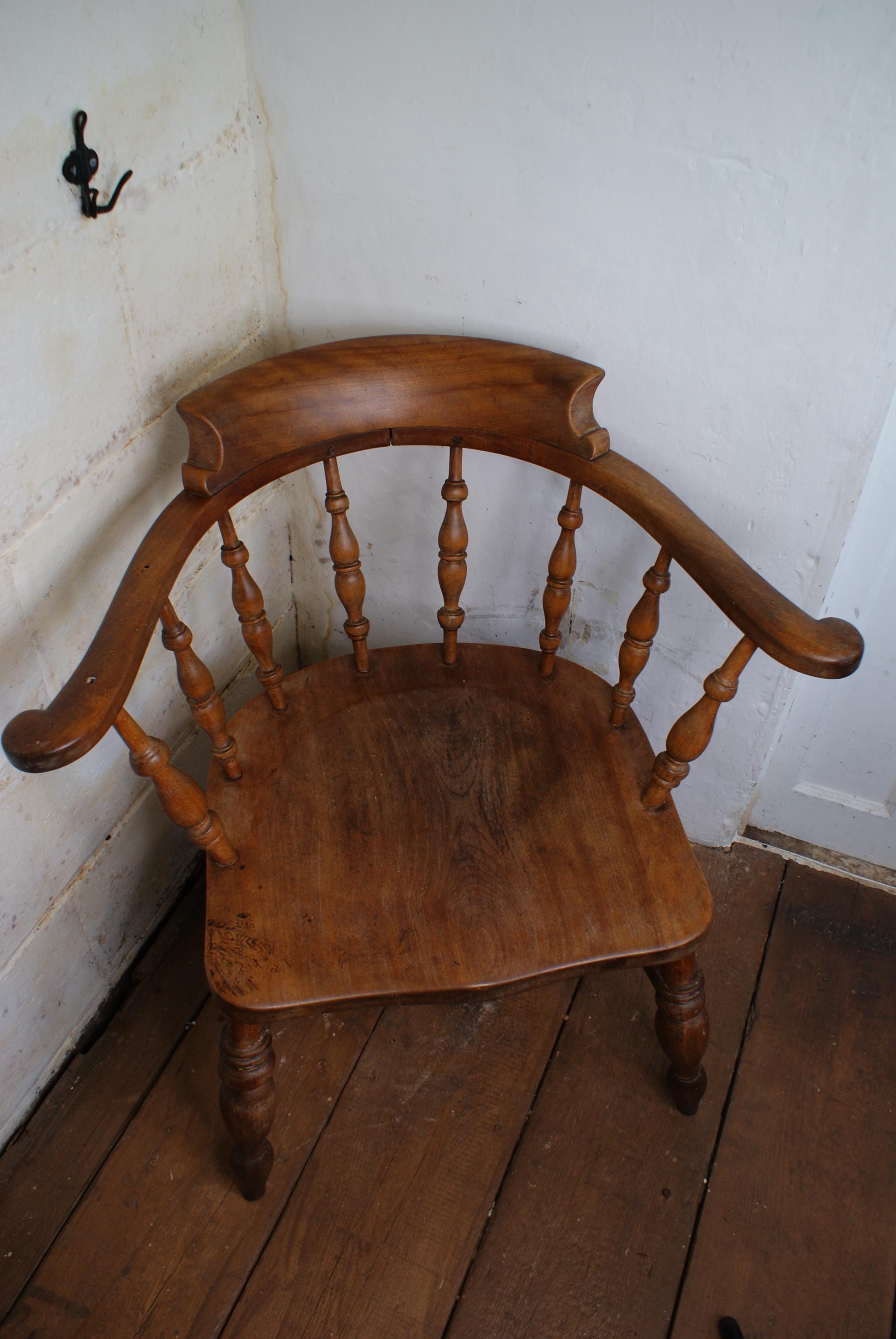 Lovely classic elm smokers bow chair, in excellent condition and sturdy this is a perfect piece for an office or home study, or as decorative piece around the home or bar.