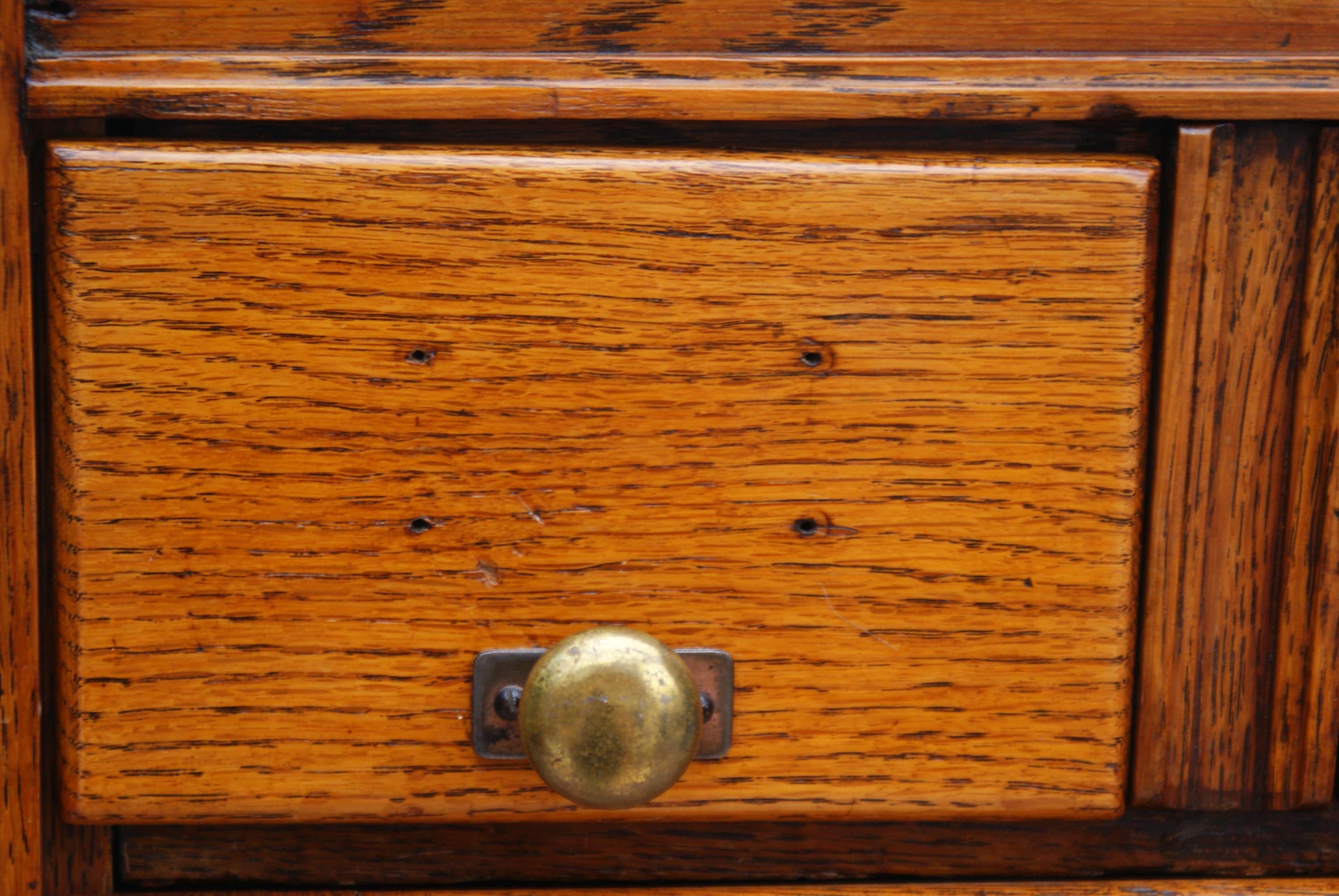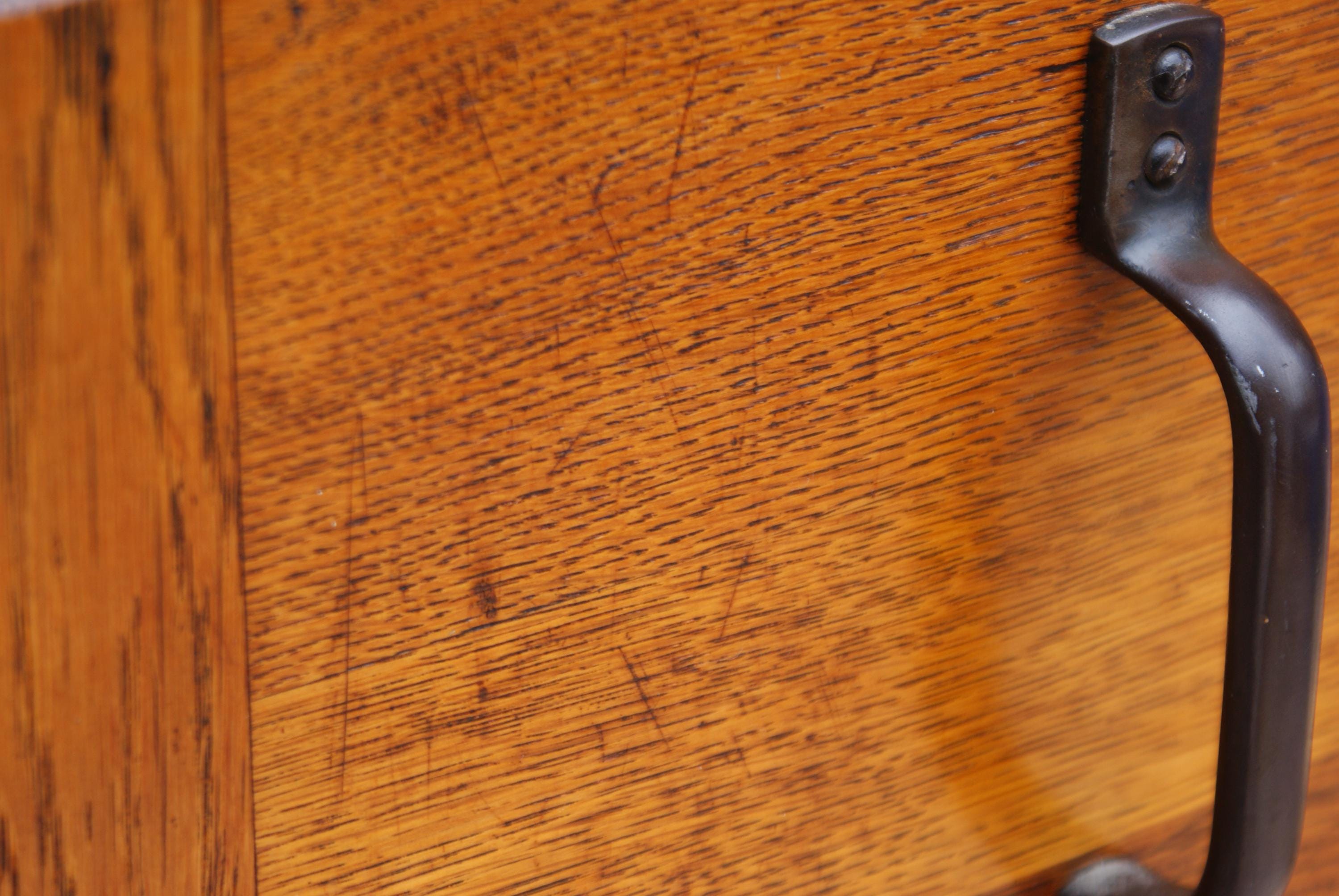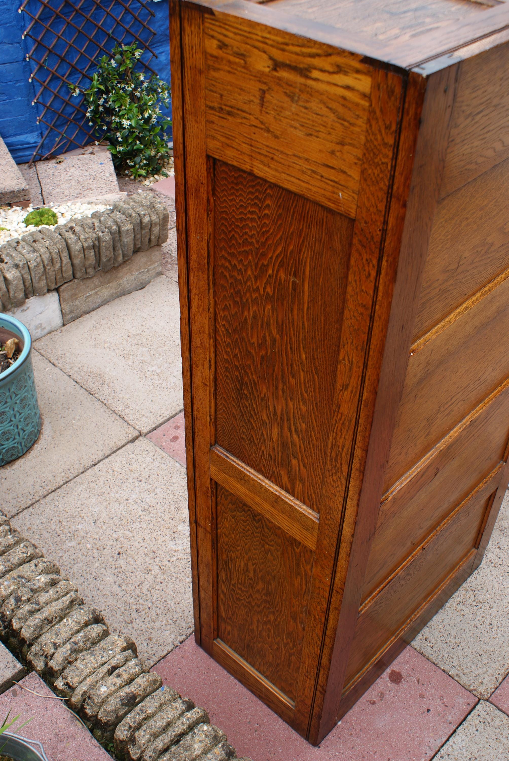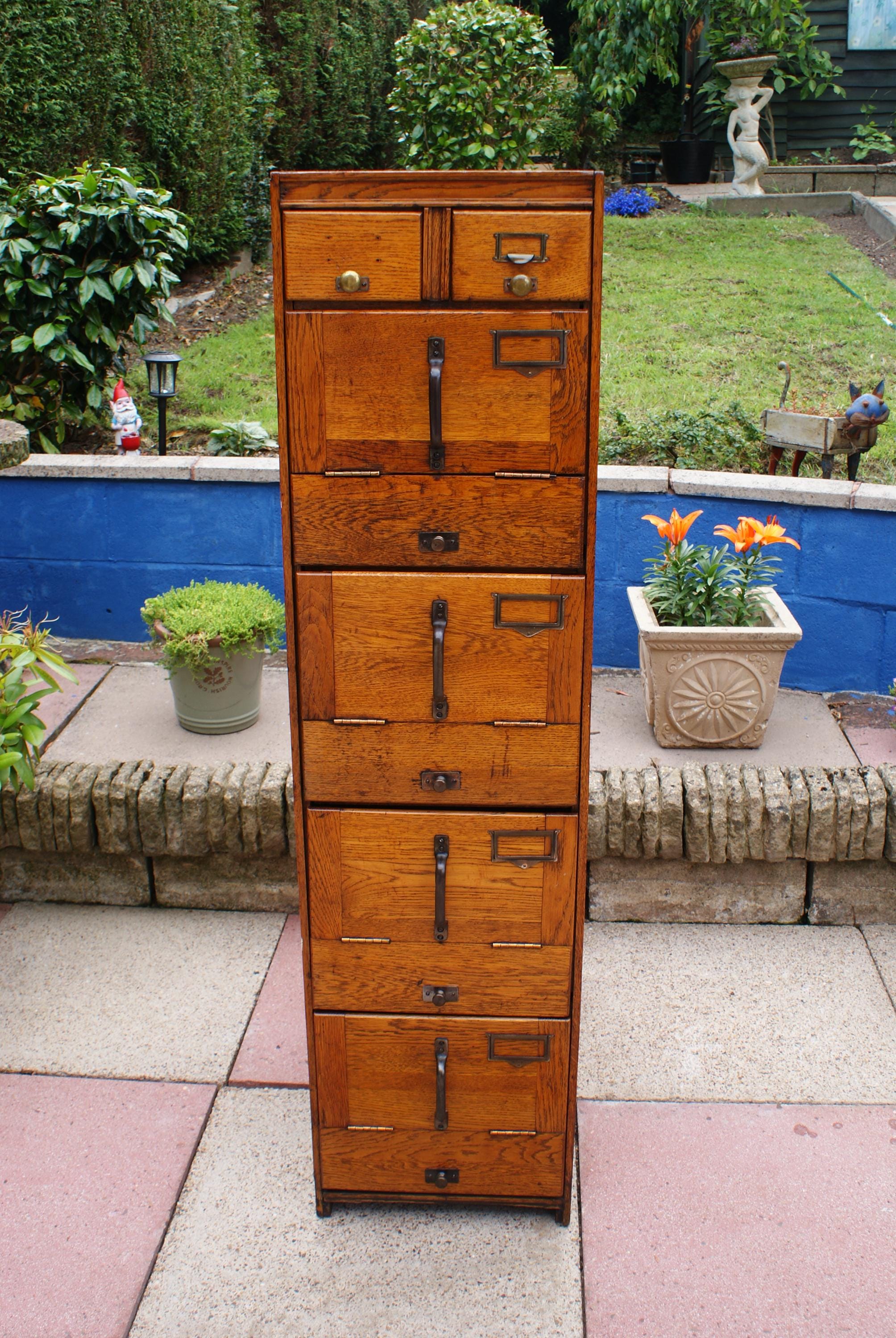 Stunning oak filing cabinet, in a fantastic condition with a lovely patina all over. A lovely piece of décor for most rooms around the home and is both functional and beautiful. there is one name plate missing from the top left drawer and signs of previous damp in the bottom drawer but this has been cleaned and treated, but overall excellent condition all over.