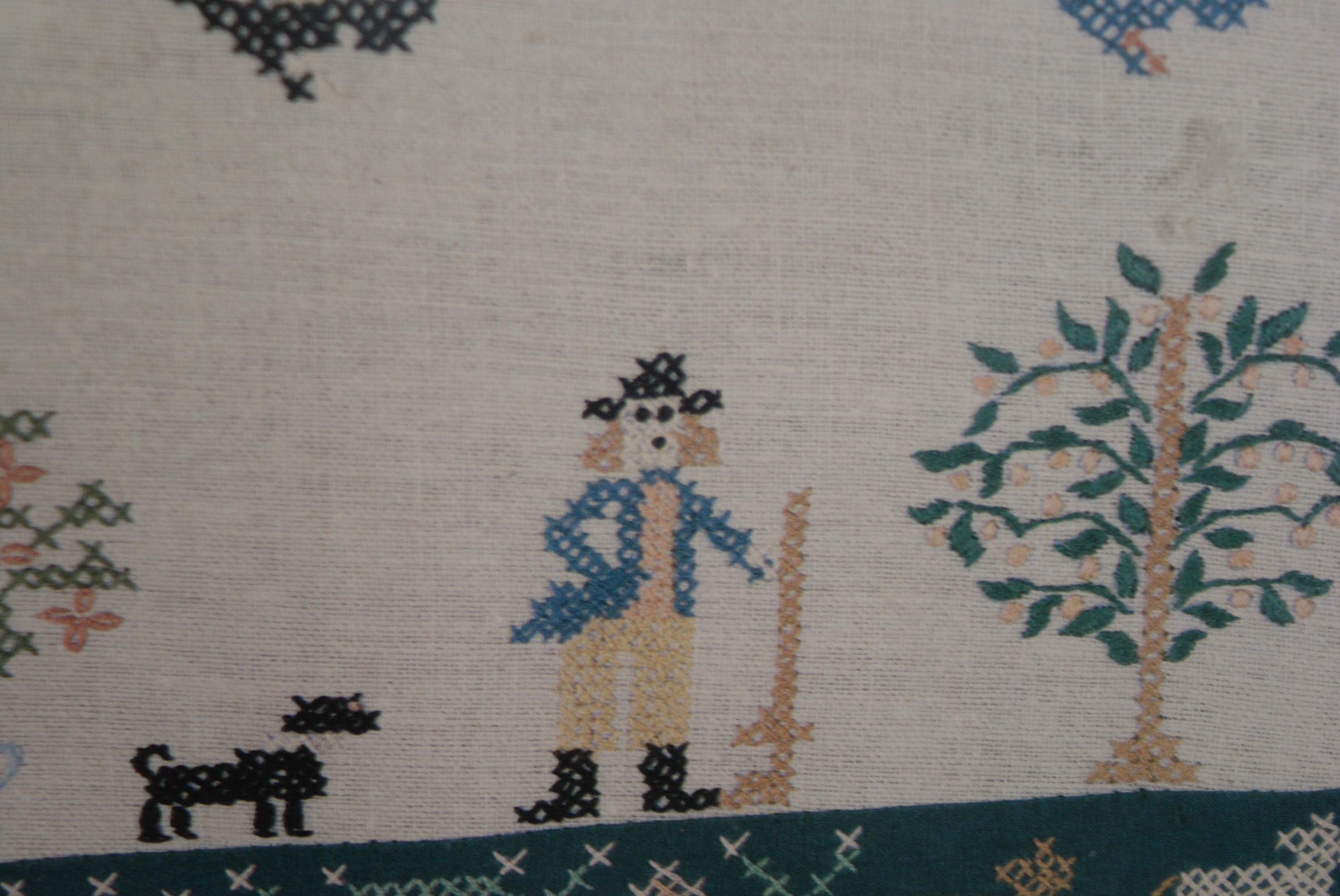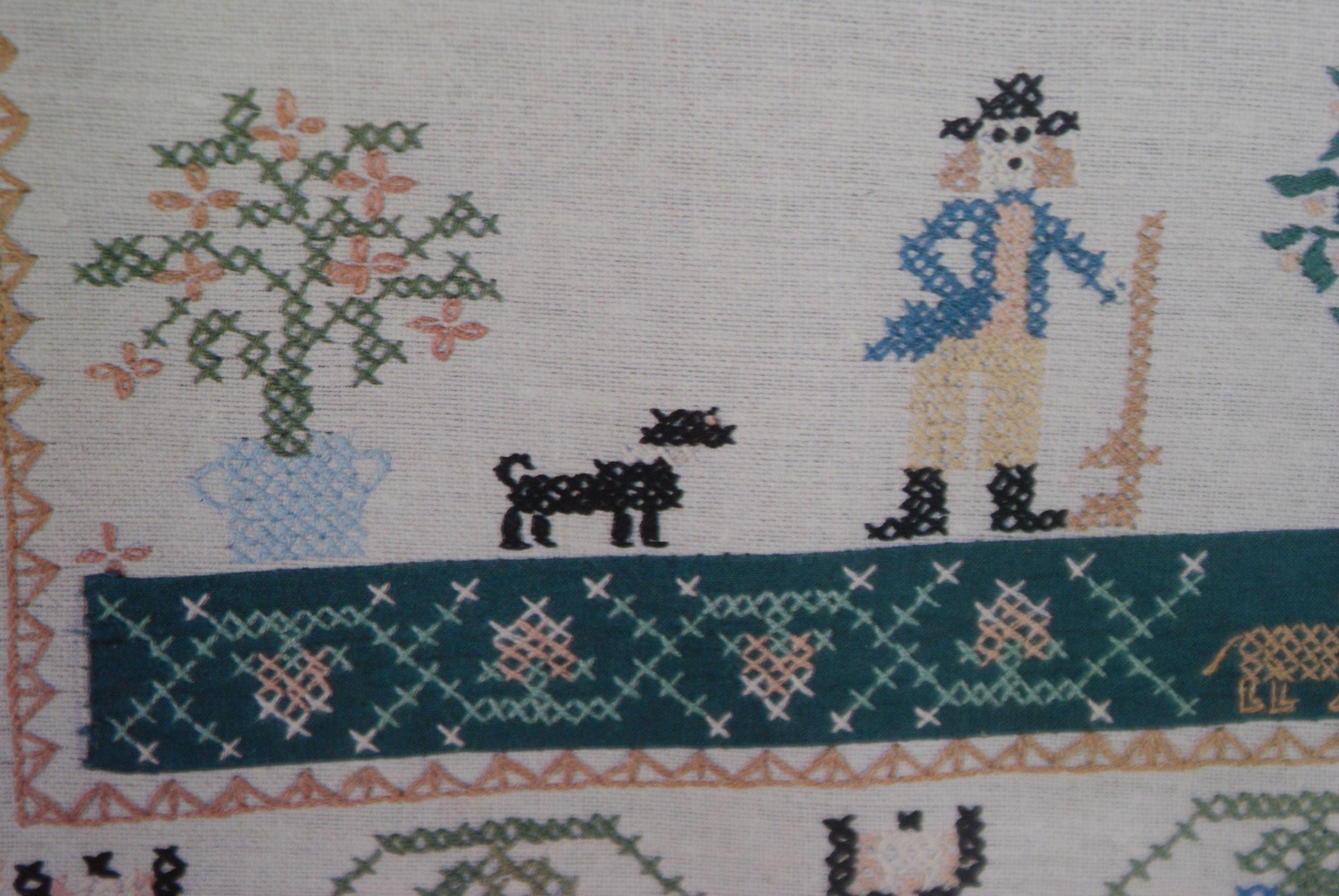 1960's Folk Art Cross Stitch Sampler
