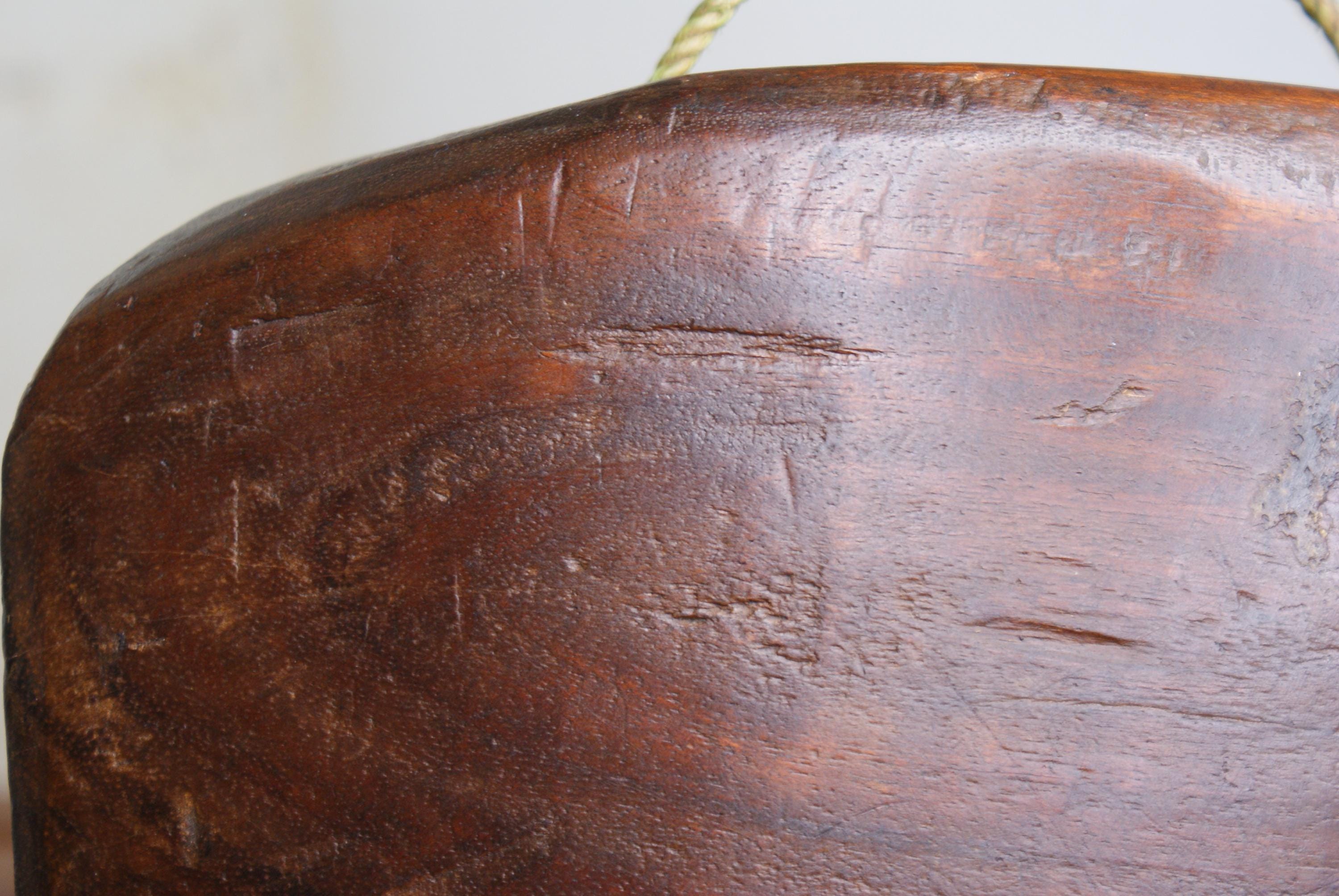 A fantastic primitive wooden cow bell with a lovely patina and rustic charm.