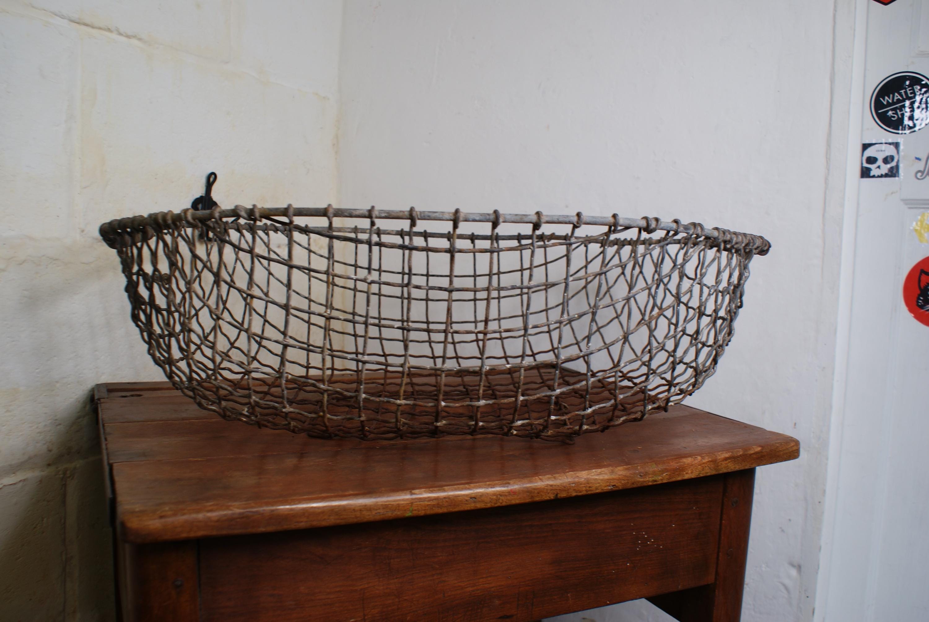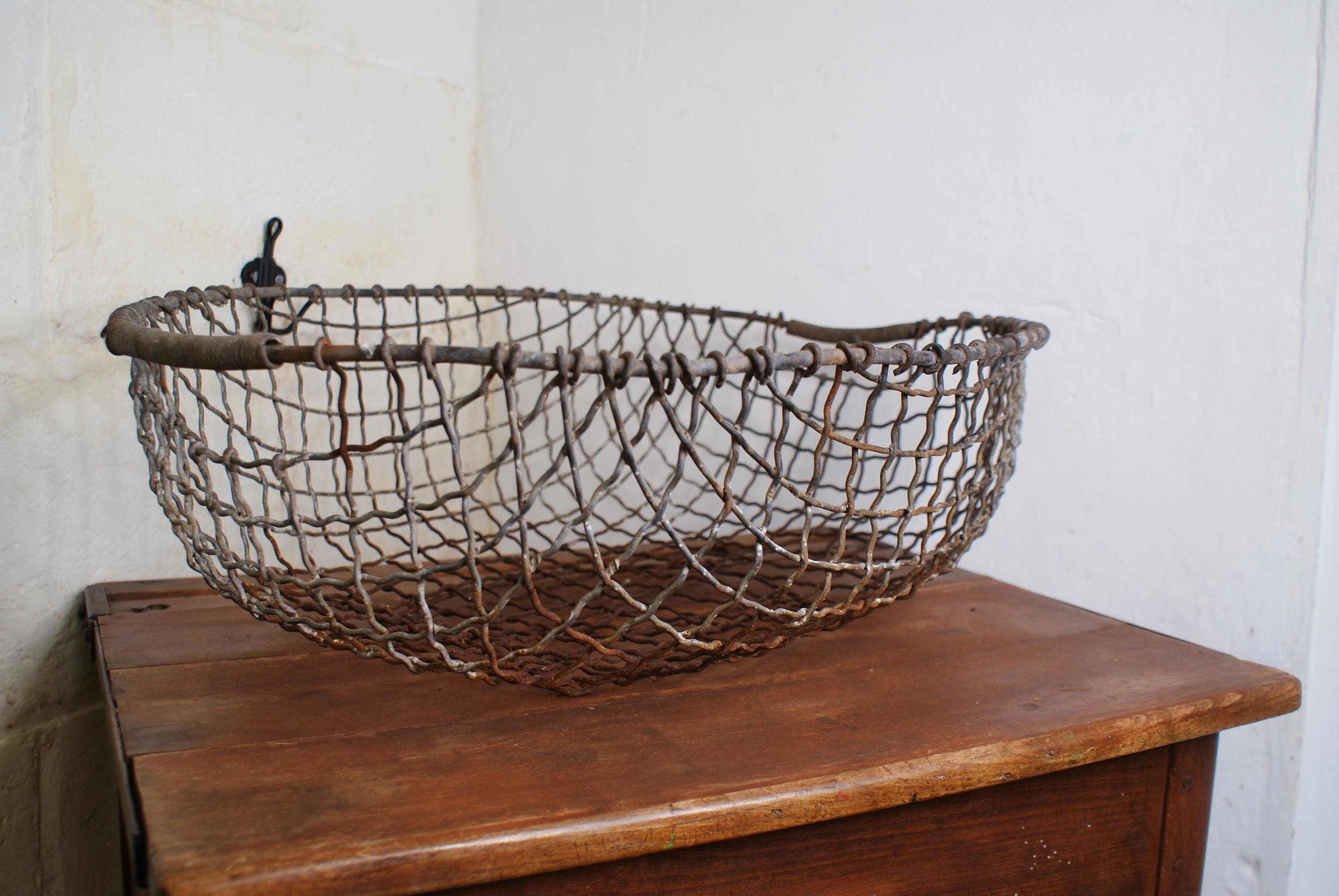 A lovely antique wire harvesting basket, a fantastic patina to the wire and still in sturdy condition.