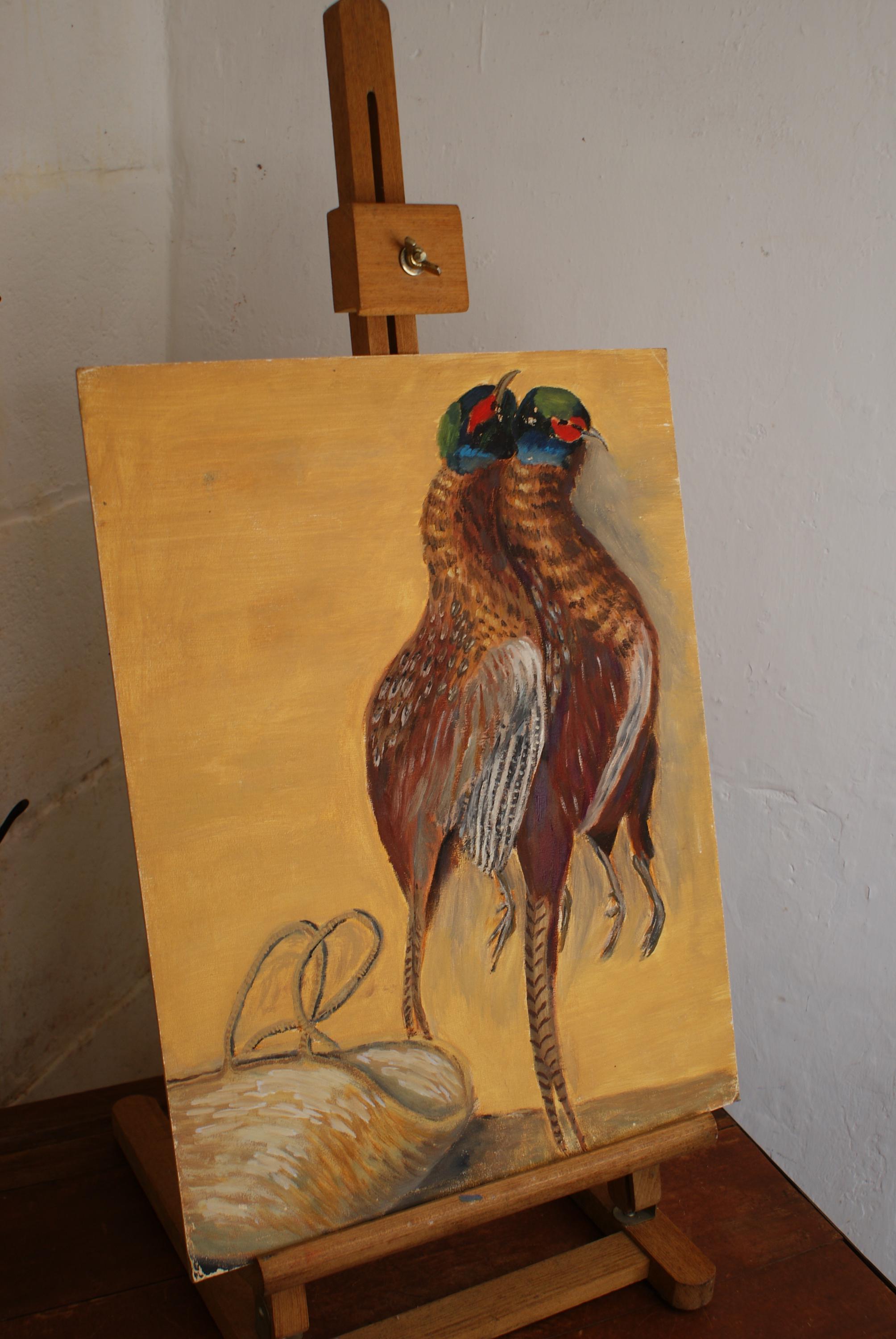 Naive Painting of Pheasants on Board