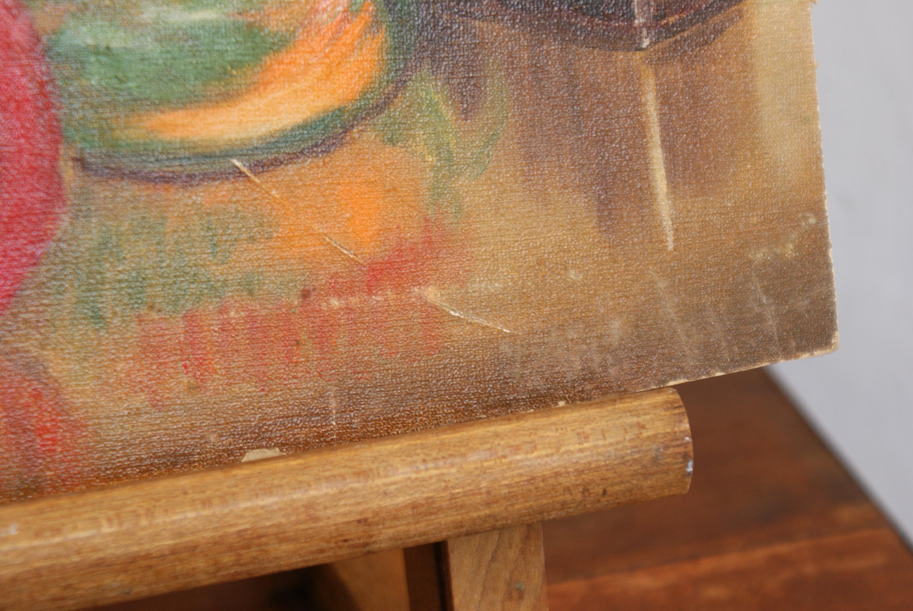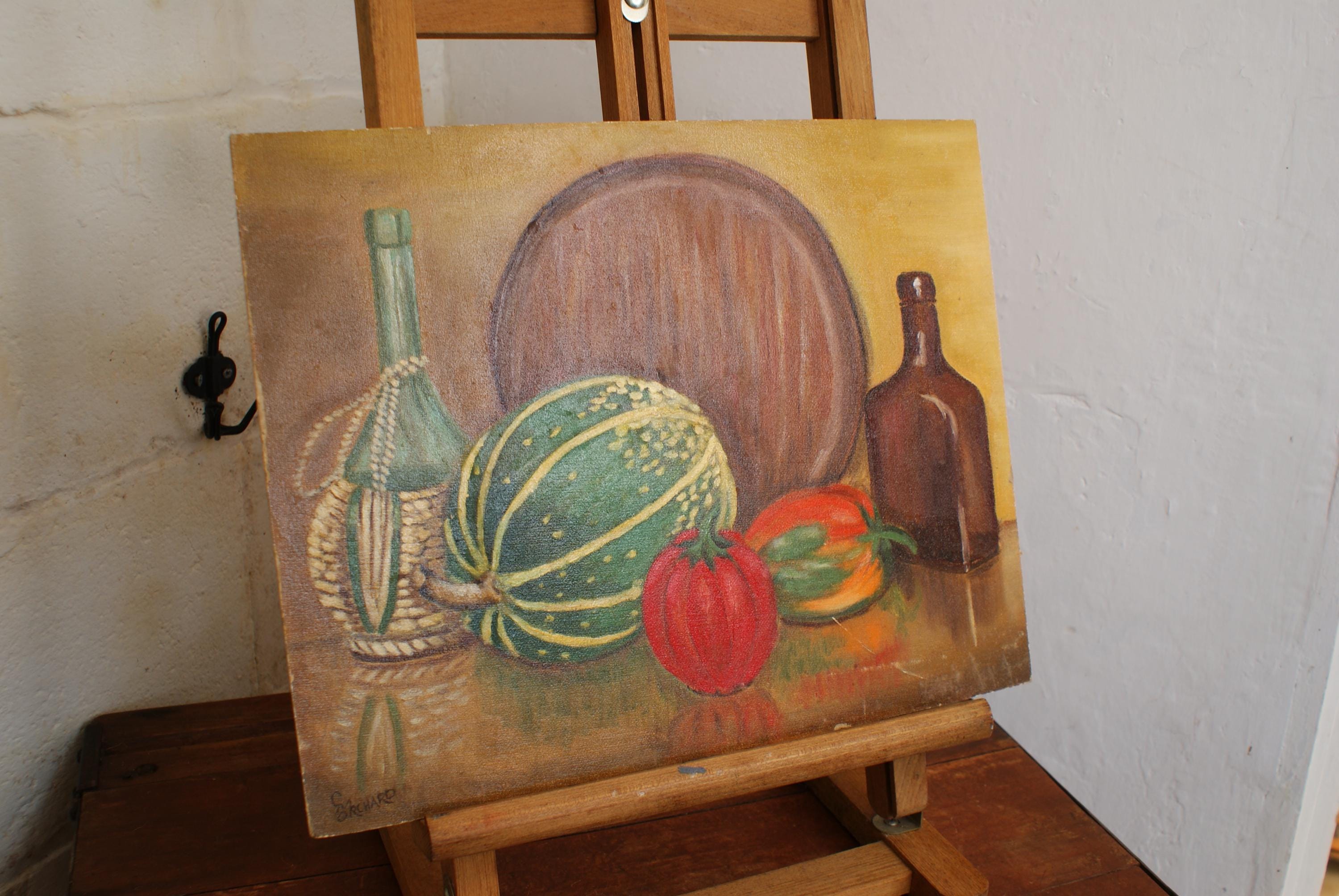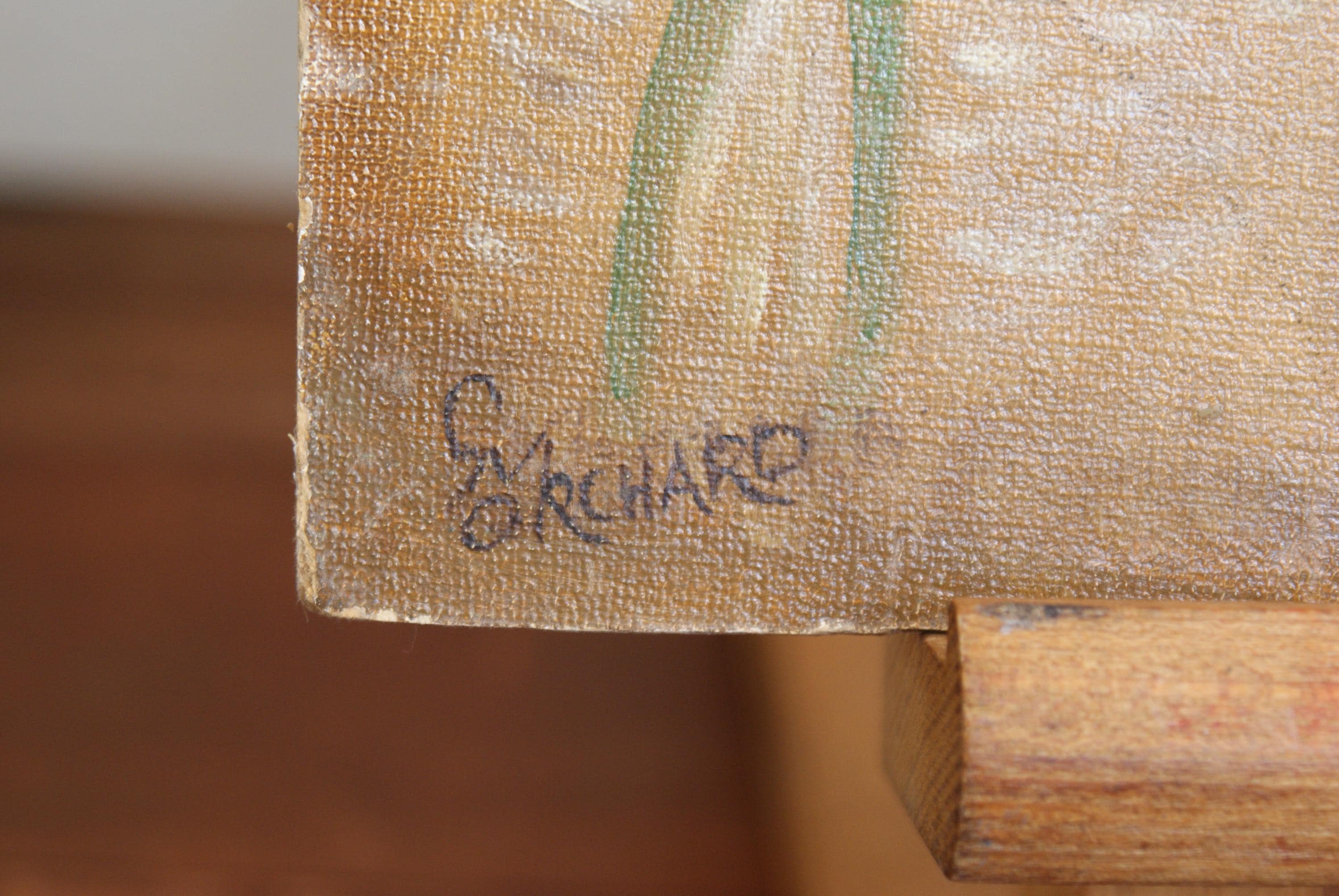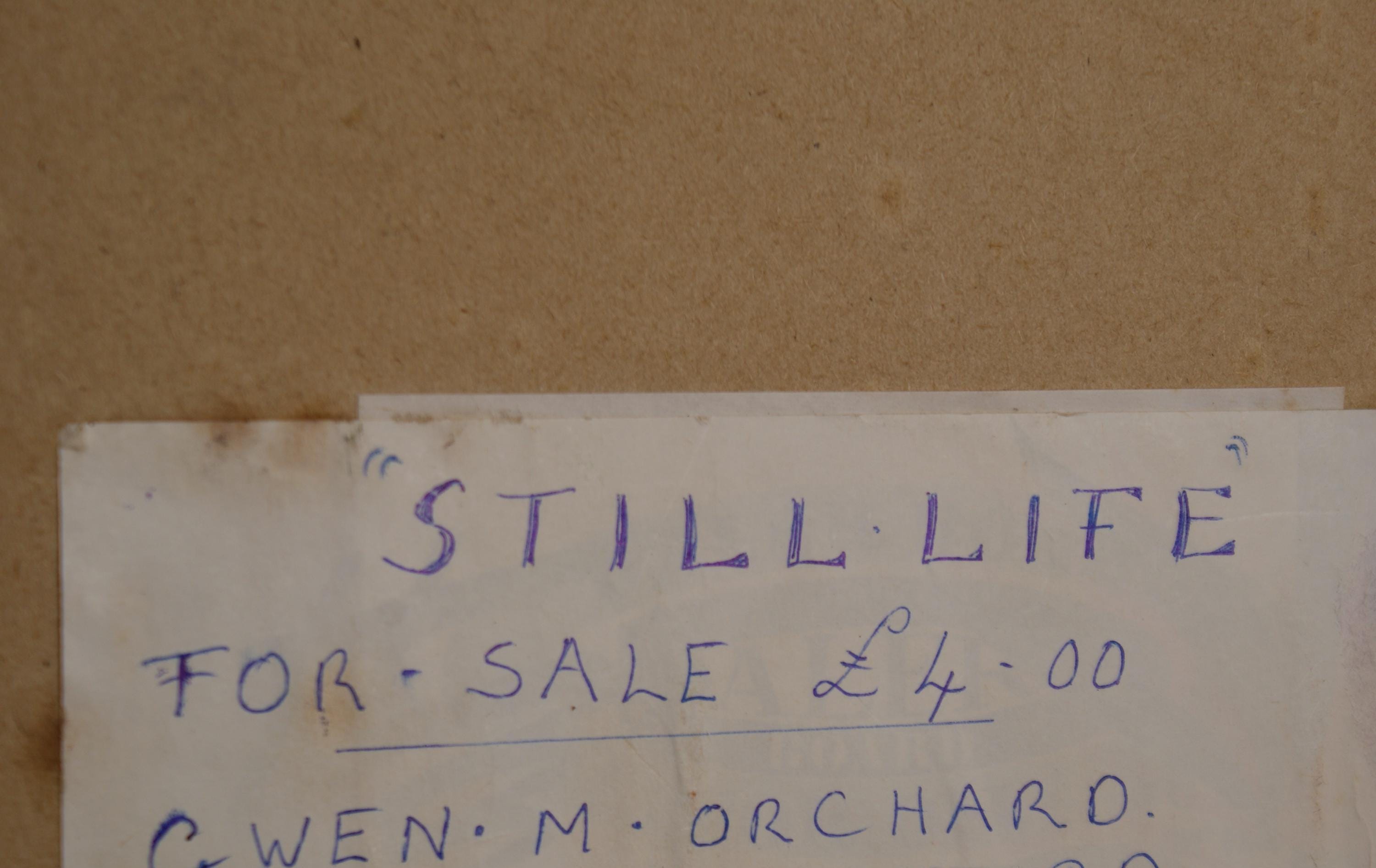 Lovely naive still life on board, signed by Gwen Orchard. I haven't fully photographed the back as it contains an address for the artist that I cant remove, I'll also stress that the price on the back is not what I paid for this item.
