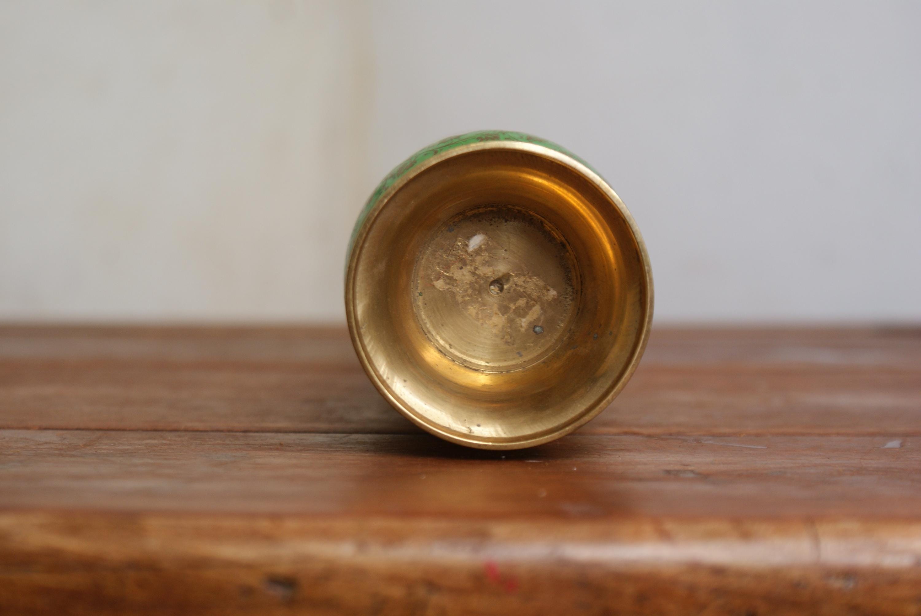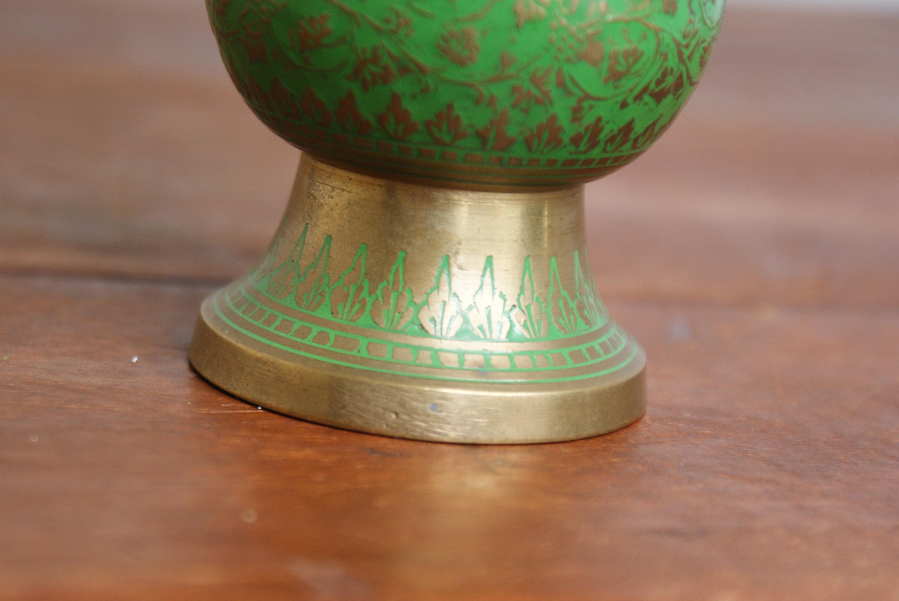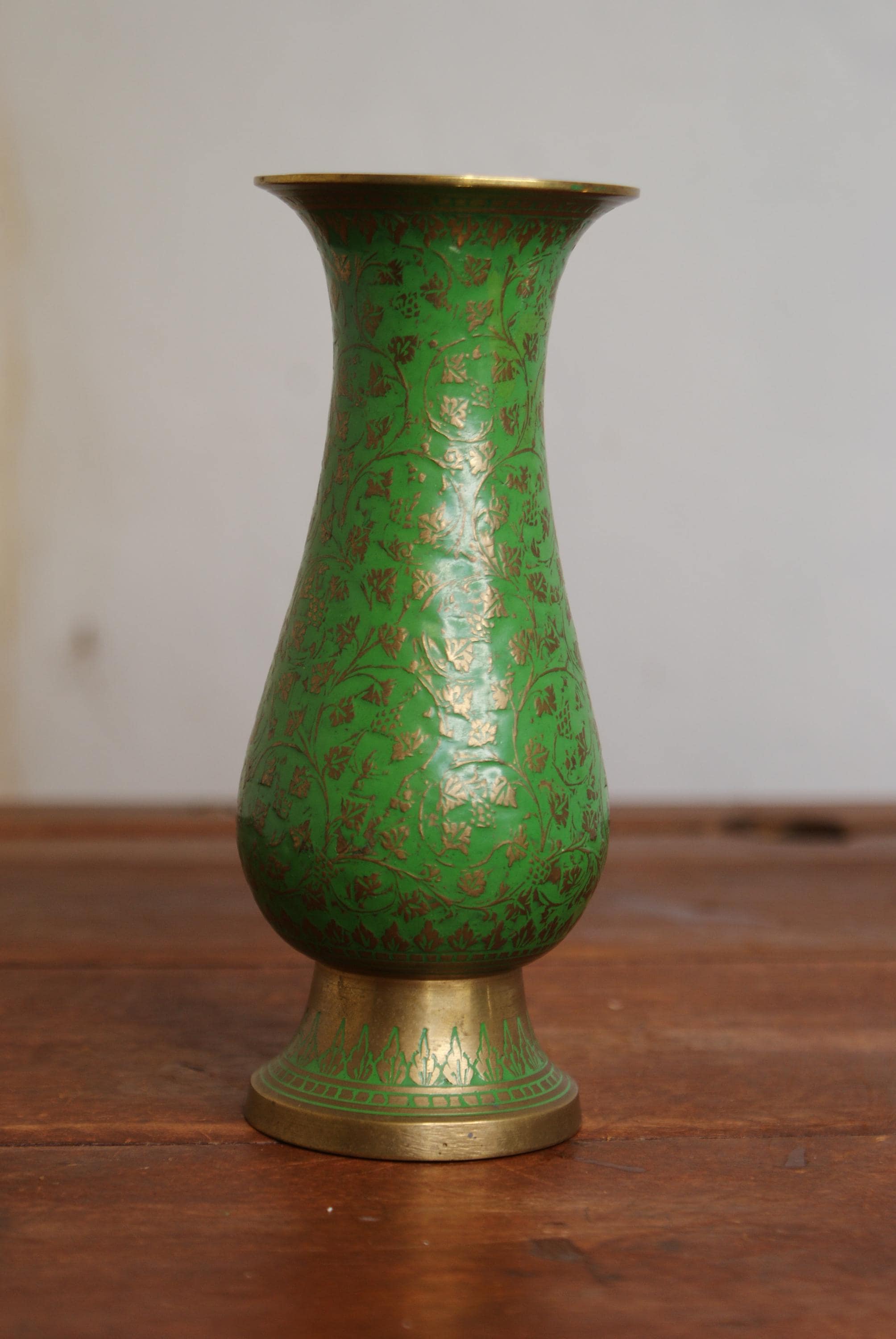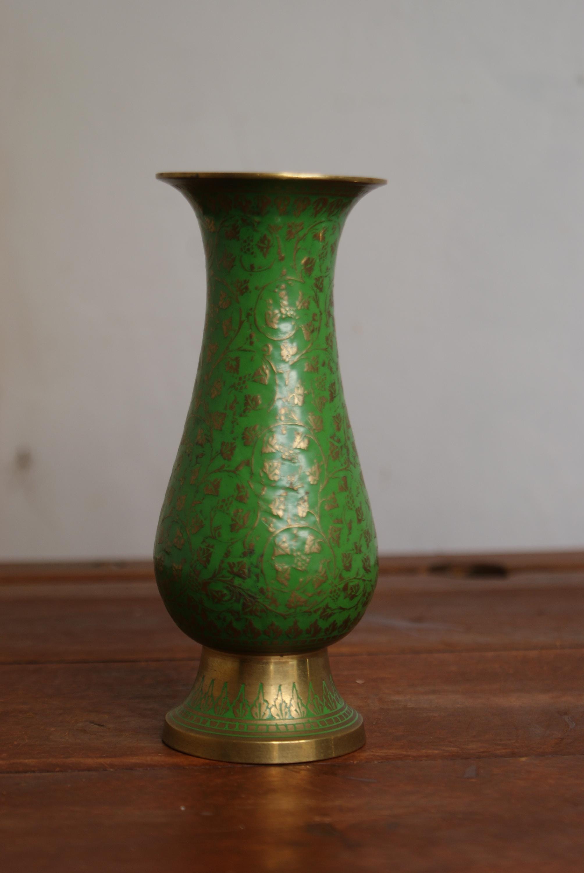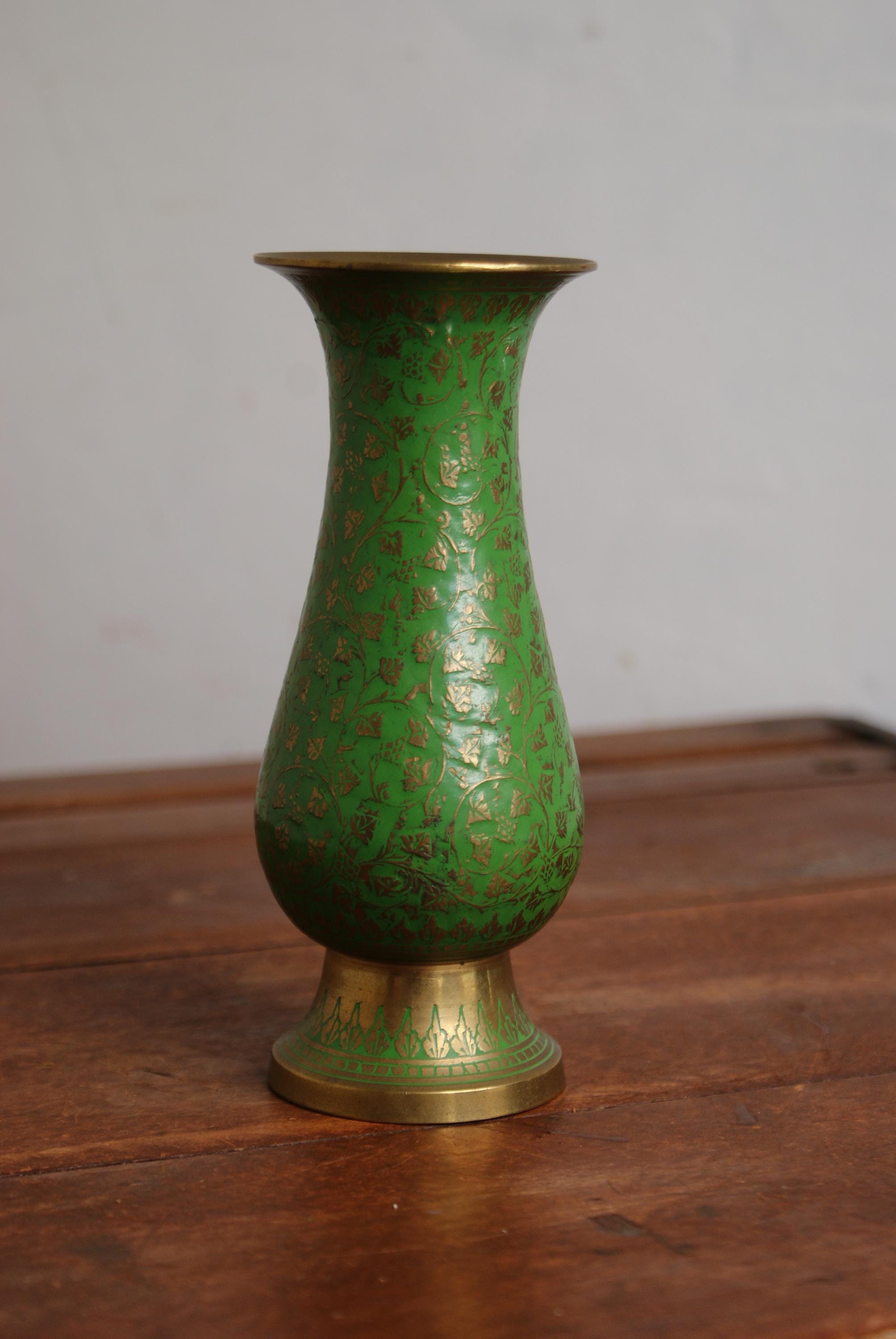 Lovely elegant Indian brass and enamel vase, a lovely floral design to the outer these types of vases were originally designed to hold dried flowers.