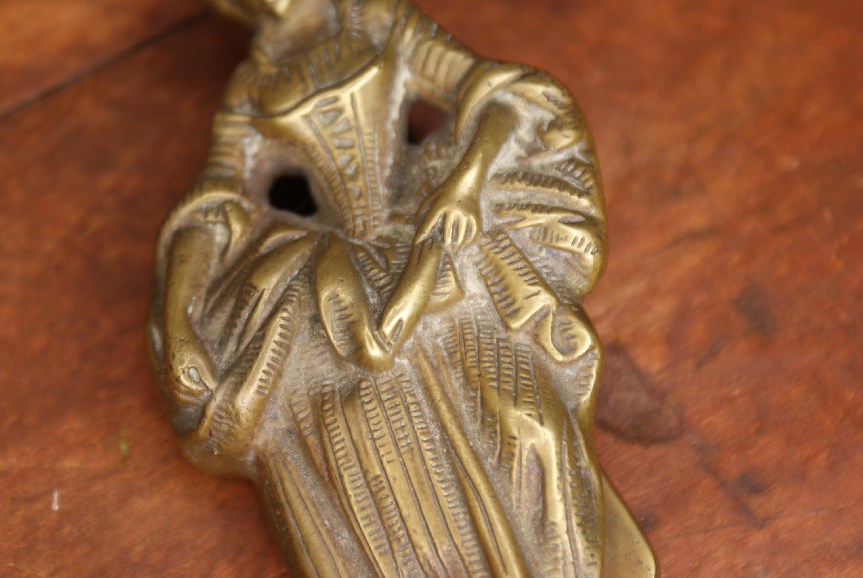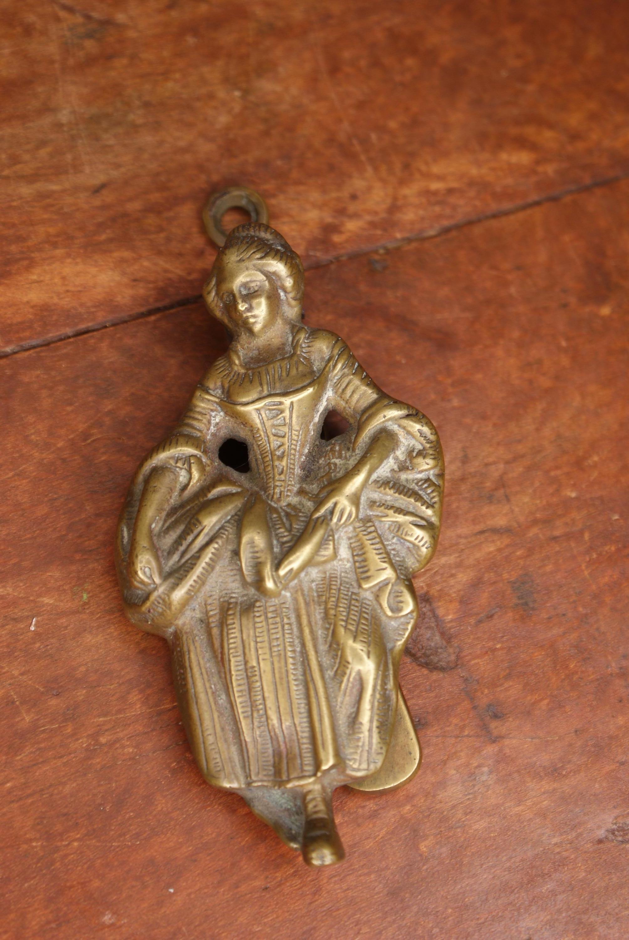 A fantastic antique brass door knocker depicting Lorna Doone a character from the 19th Century novel of the same name. In excellent condition and a fantastic piece of door décor for vintage and antique lovers.