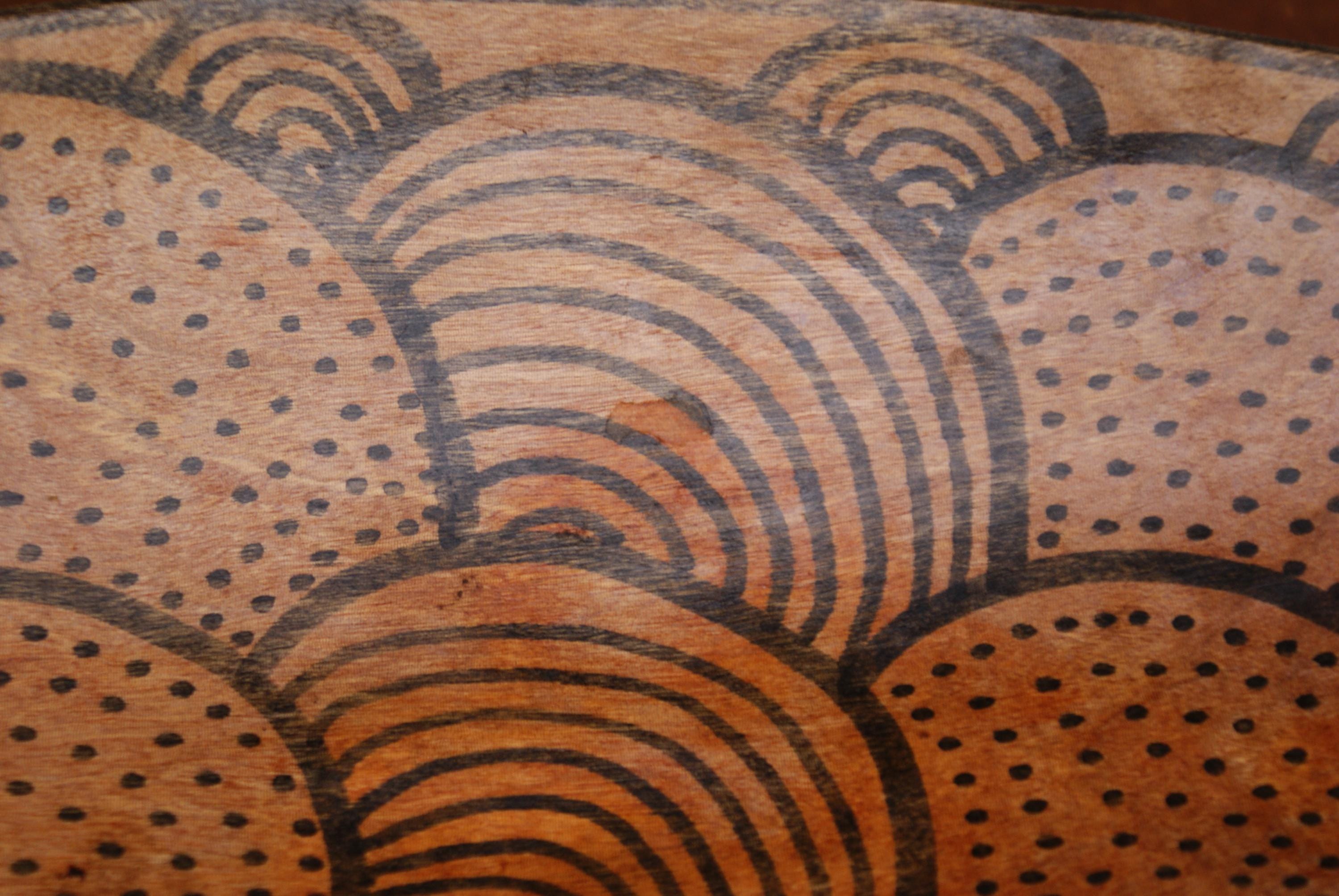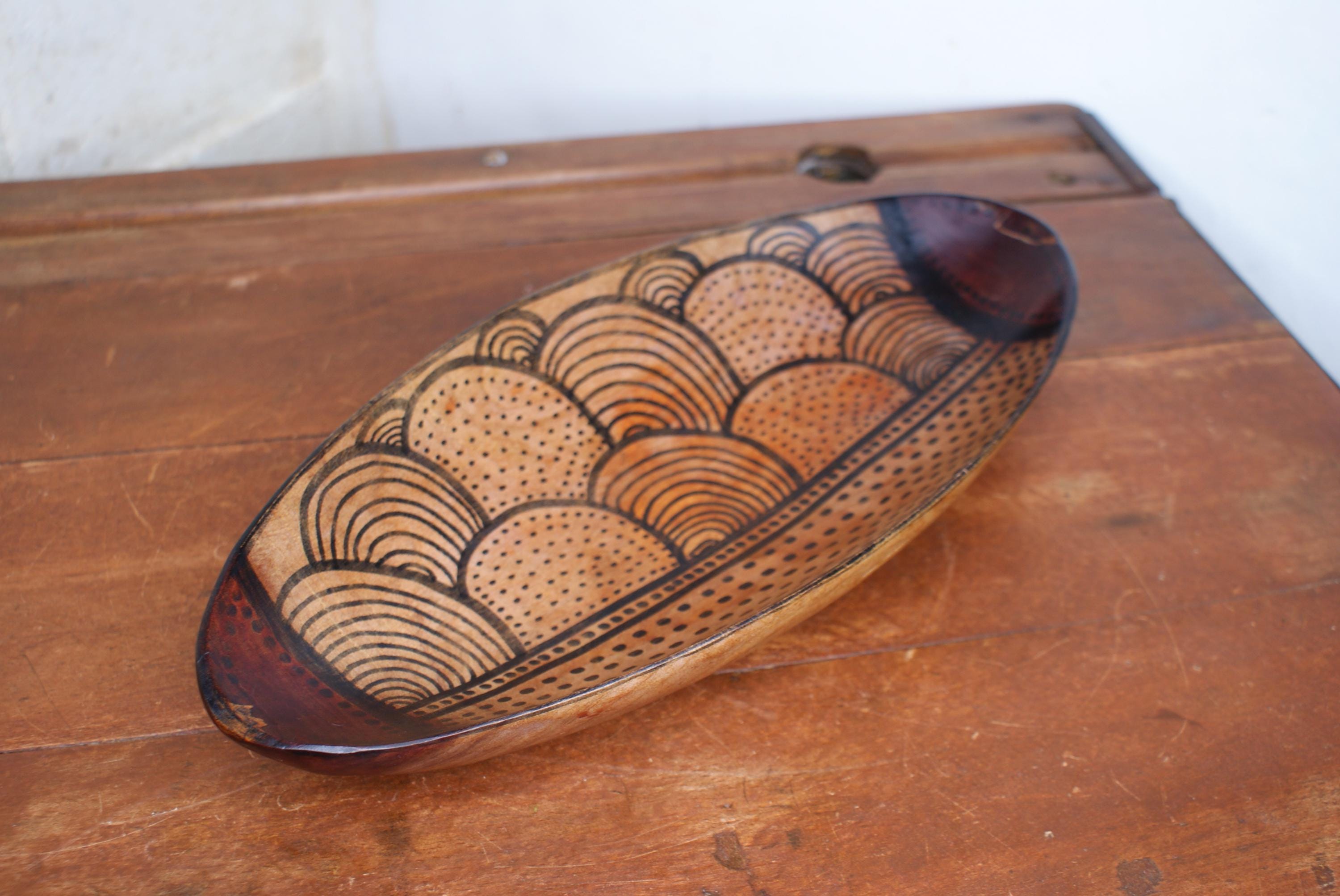 Lovely small hand painted African bowl, hand carved from a single piece of hardwood and decorated with traditional tribal art.