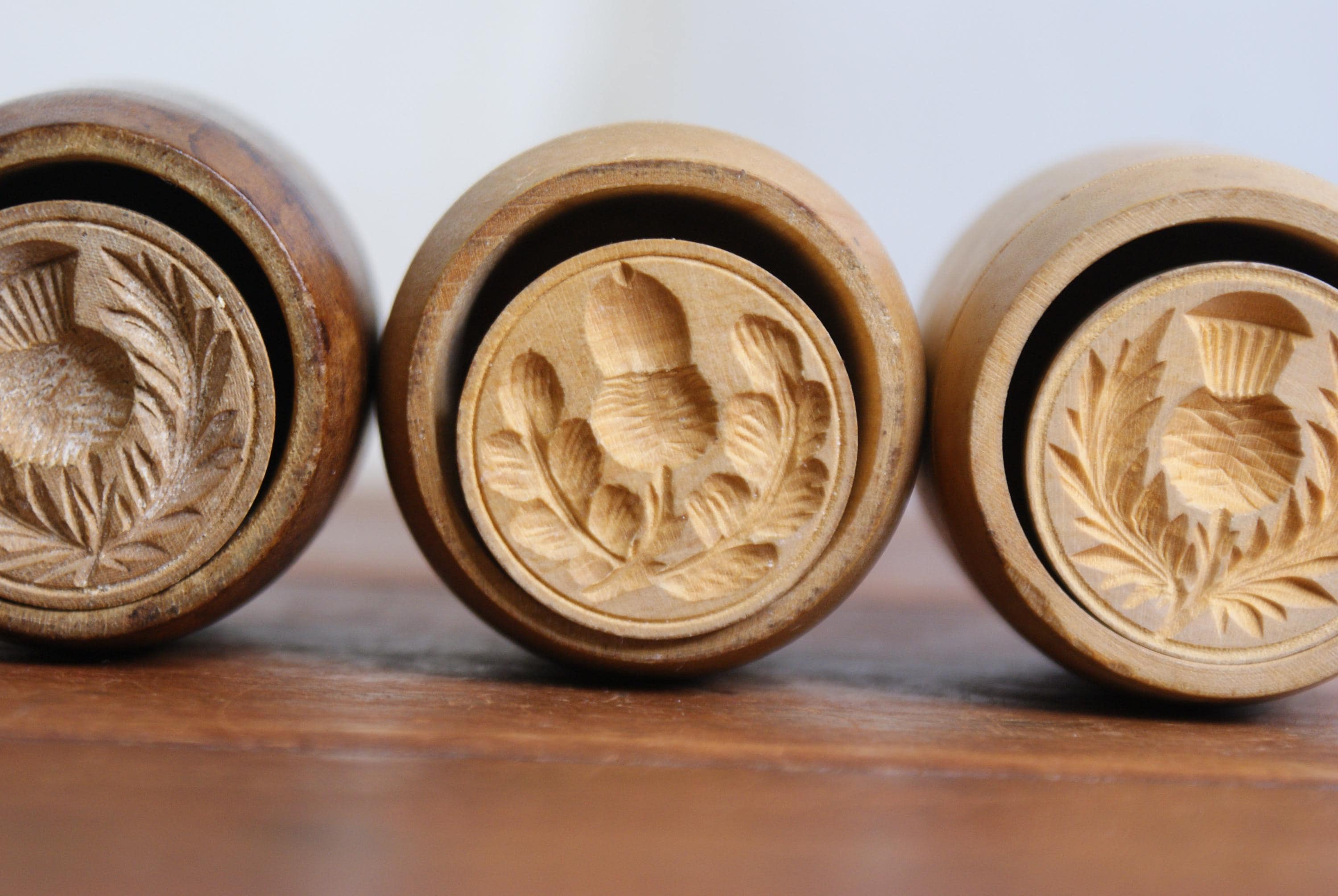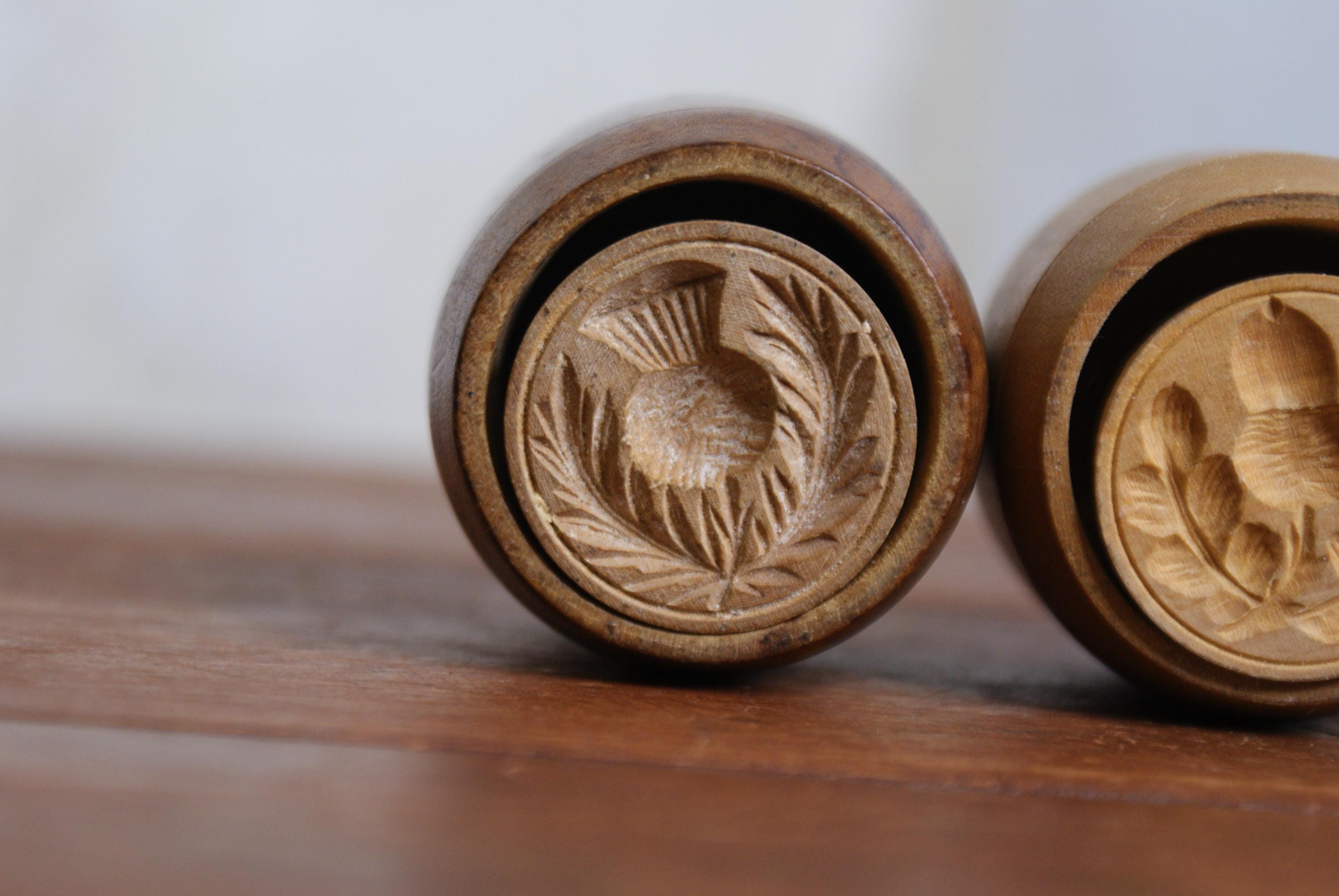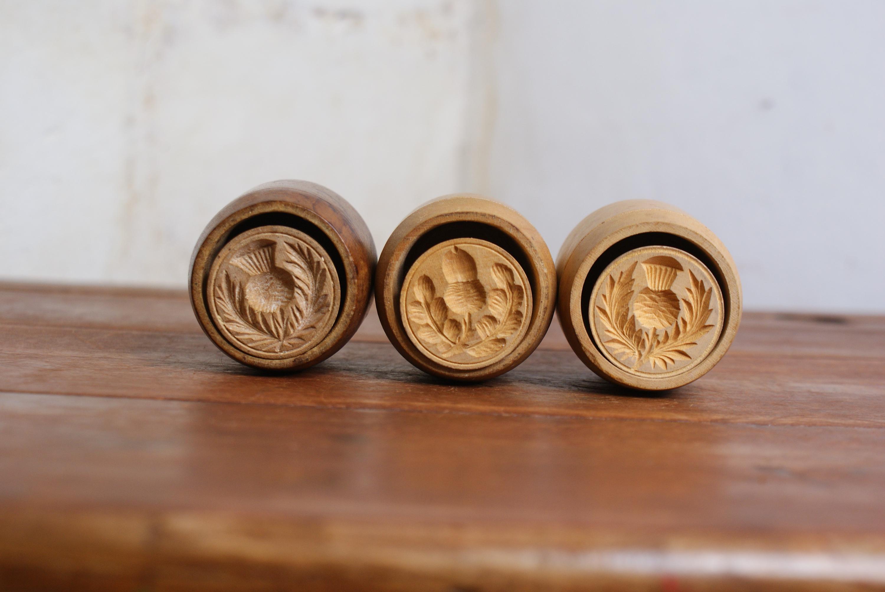 Fantastic looking butter moulds or presses in excellent condition and each with its own intricate design. these were often found in homes, creameries or dairies. Price is for one mould/press with an option to chose the design as shown. I have more of these available in a range of sizes from 10 - 3 cm diameter on separate listings.