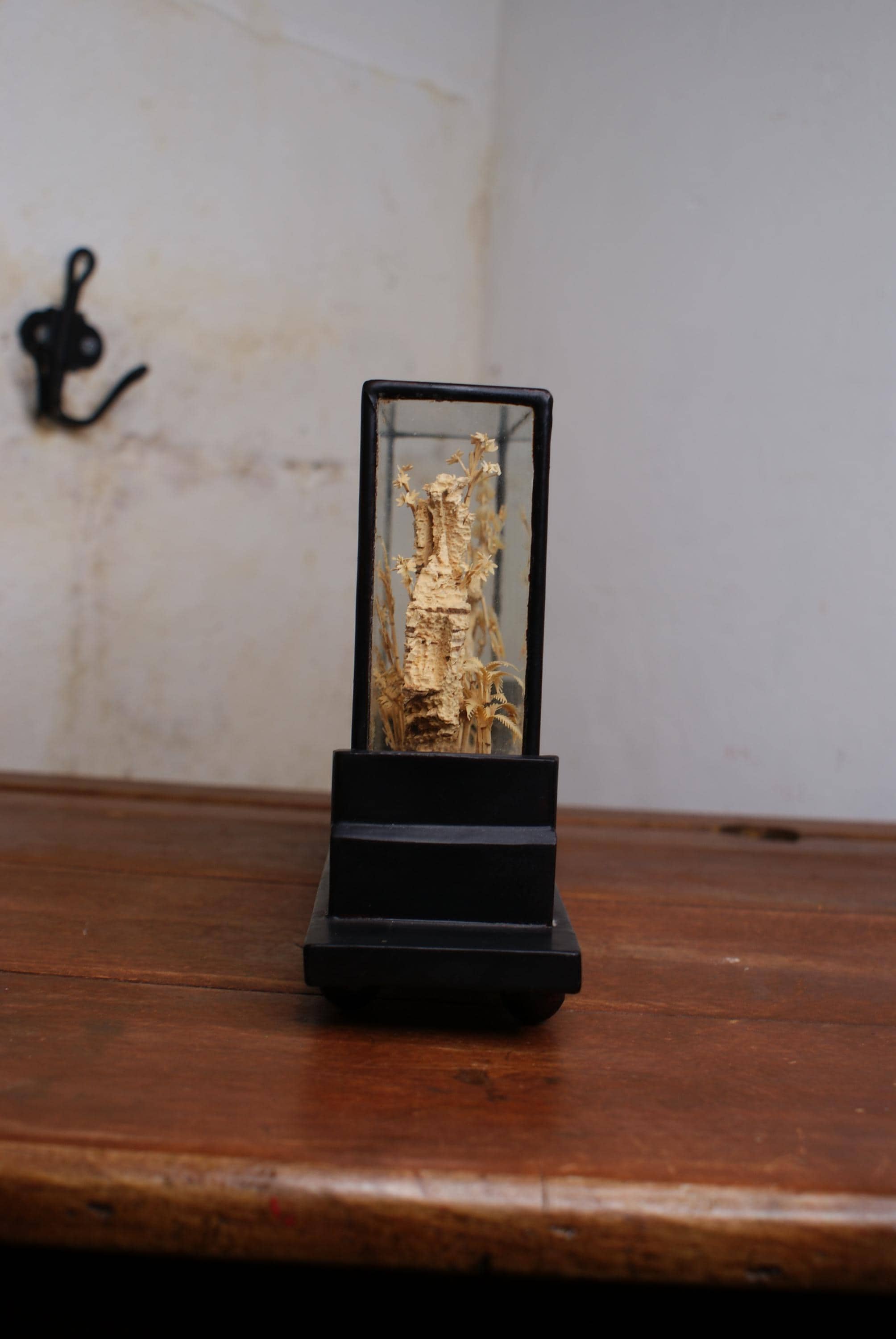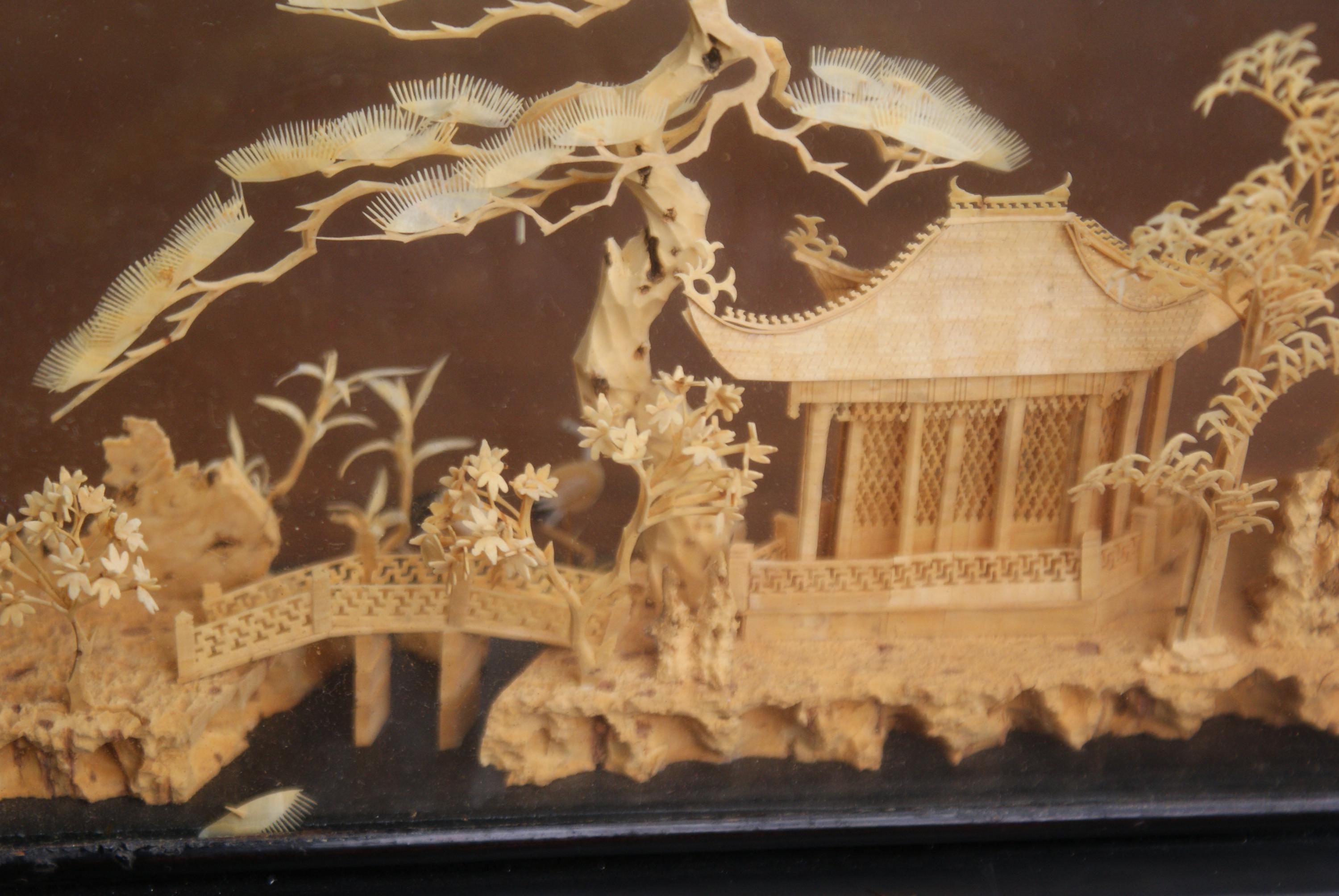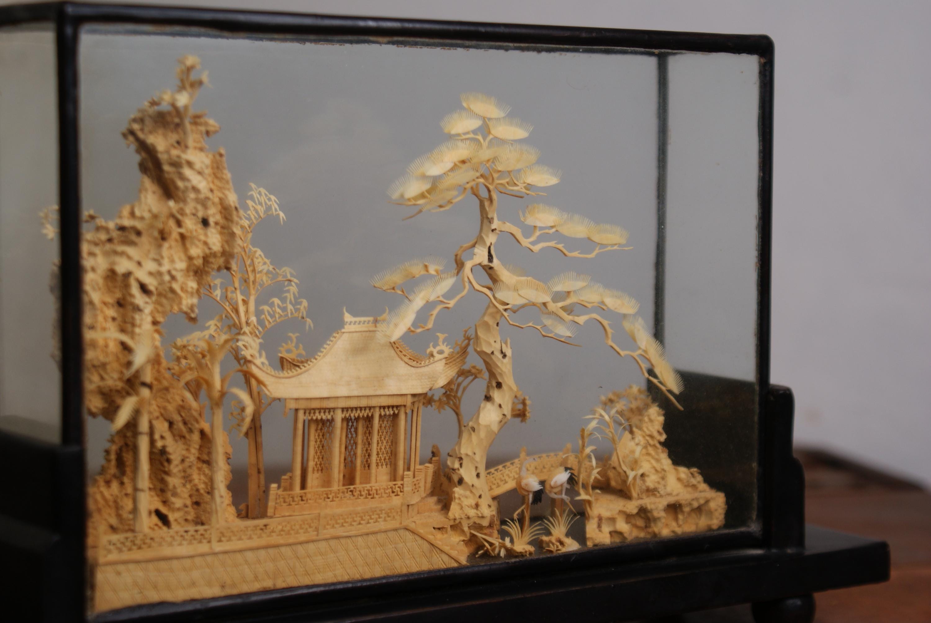 A superb cork diorama, hand carved with intricate details this is a fantastic looking piece of expert craftsmanship. The base is lacquered wood.