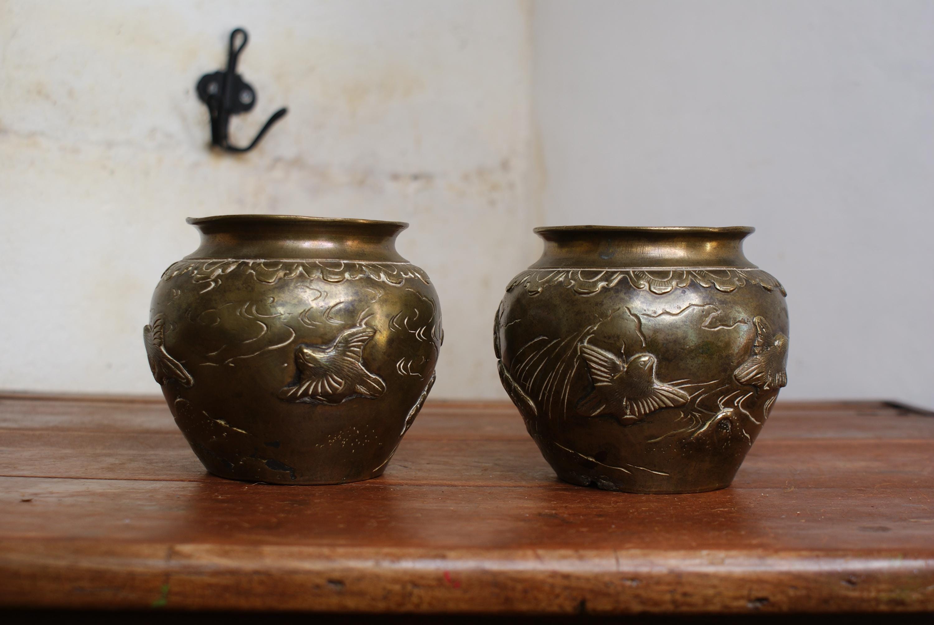 A Pair of 19th Century Japanese Meiji Period Bronze Vases